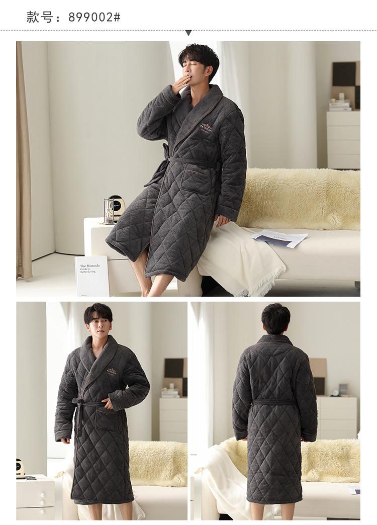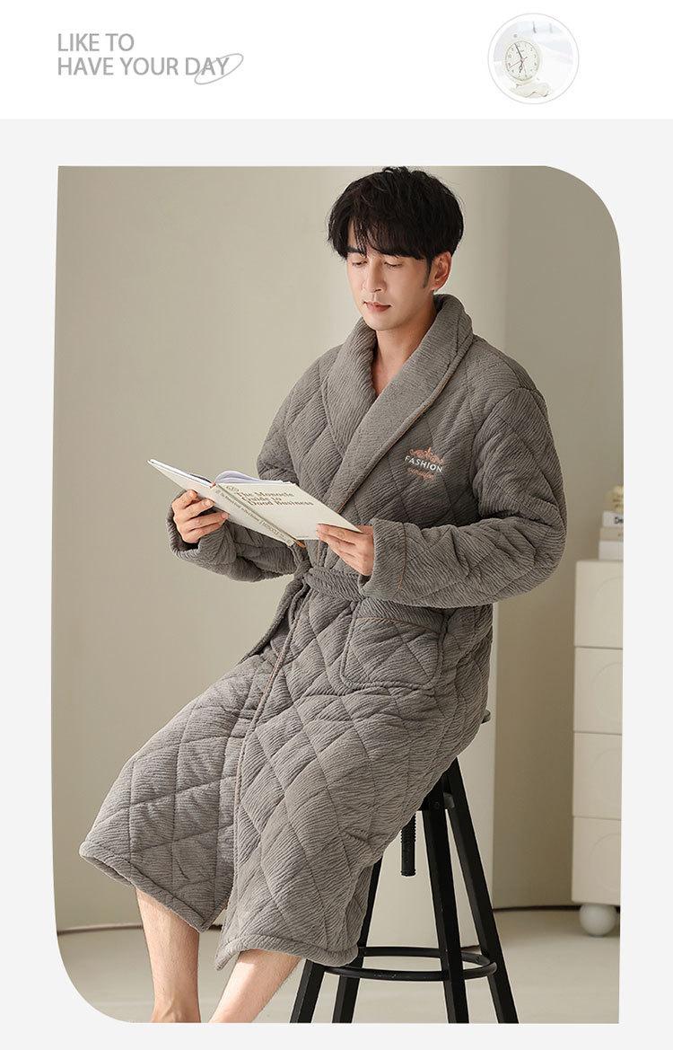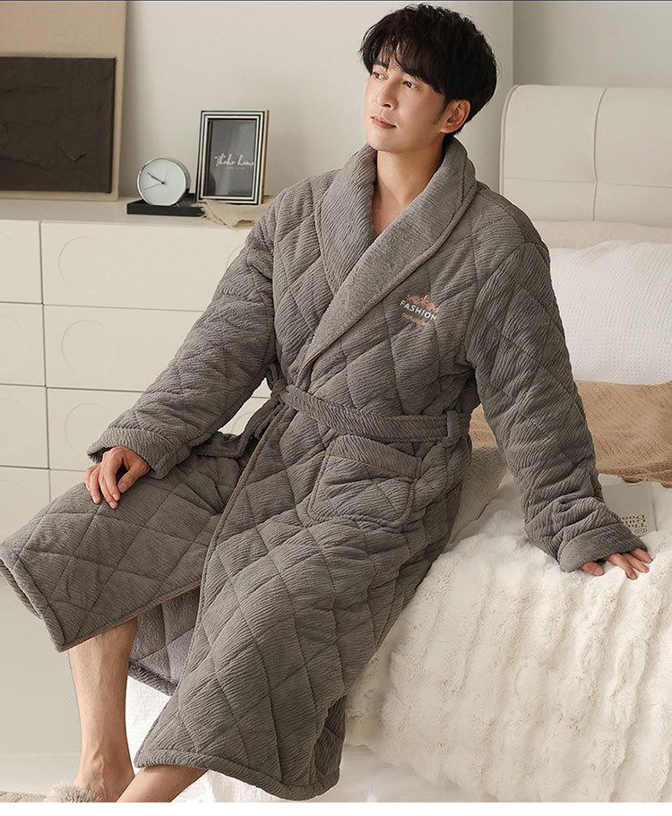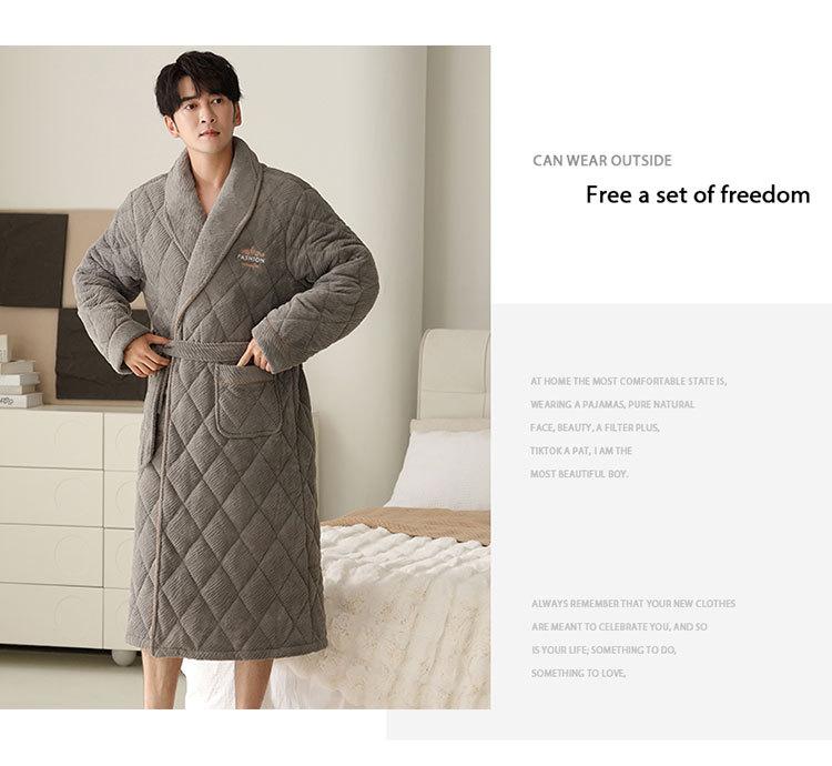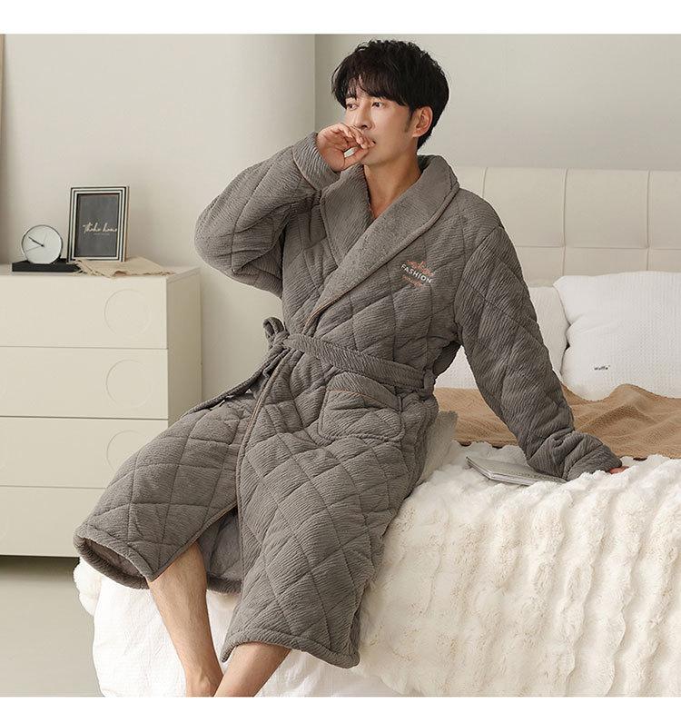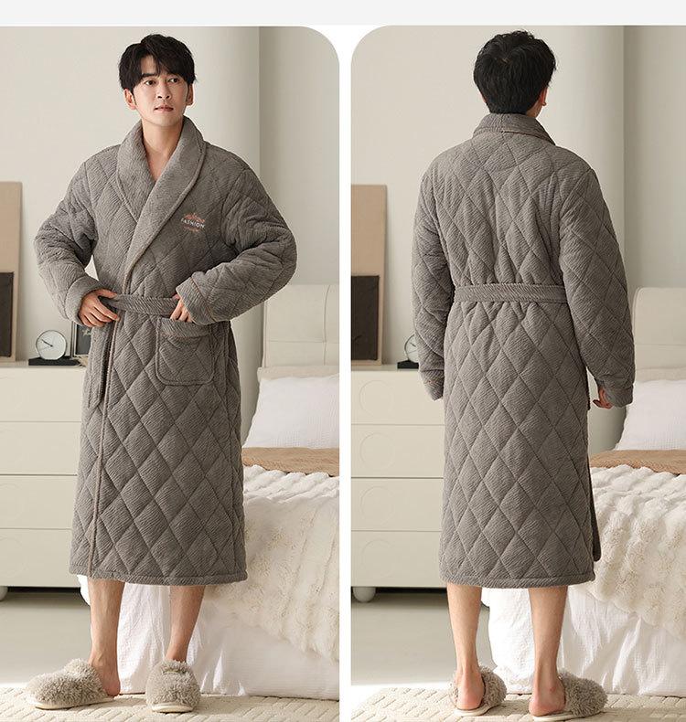 Camisón para hombre de invierno, grueso de tres capas, forro polar de coral acolchado, pijama cálido grueso, ropa para el hogar, bata de baño de invierno para hombre