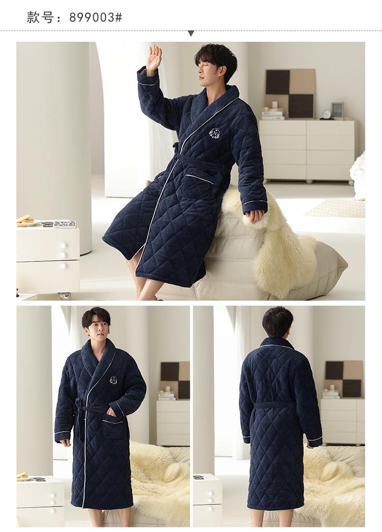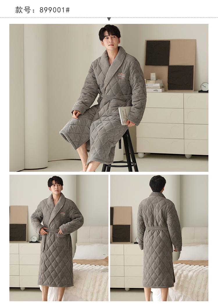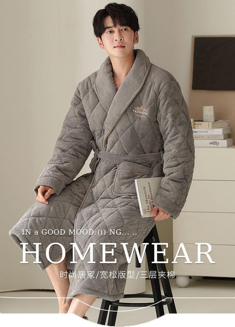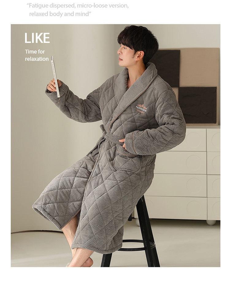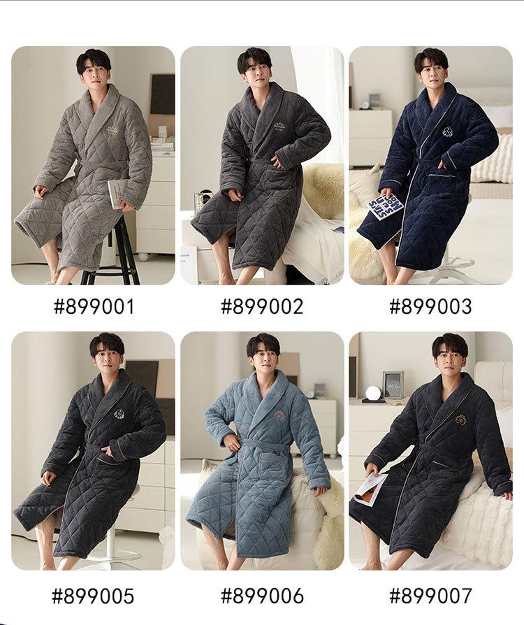 Camisón para hombre de invierno, grueso de tres capas, forro polar de coral acolchado, pijama cálido grueso, ropa para el hogar, bata de baño de invierno para hombre