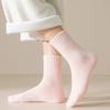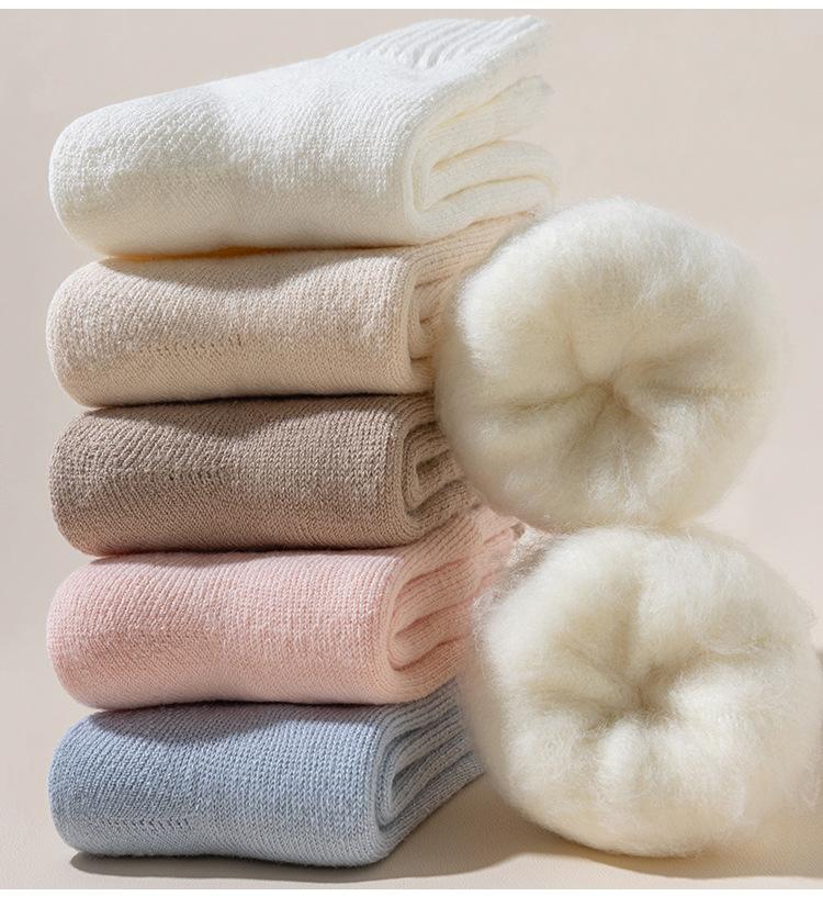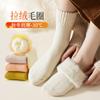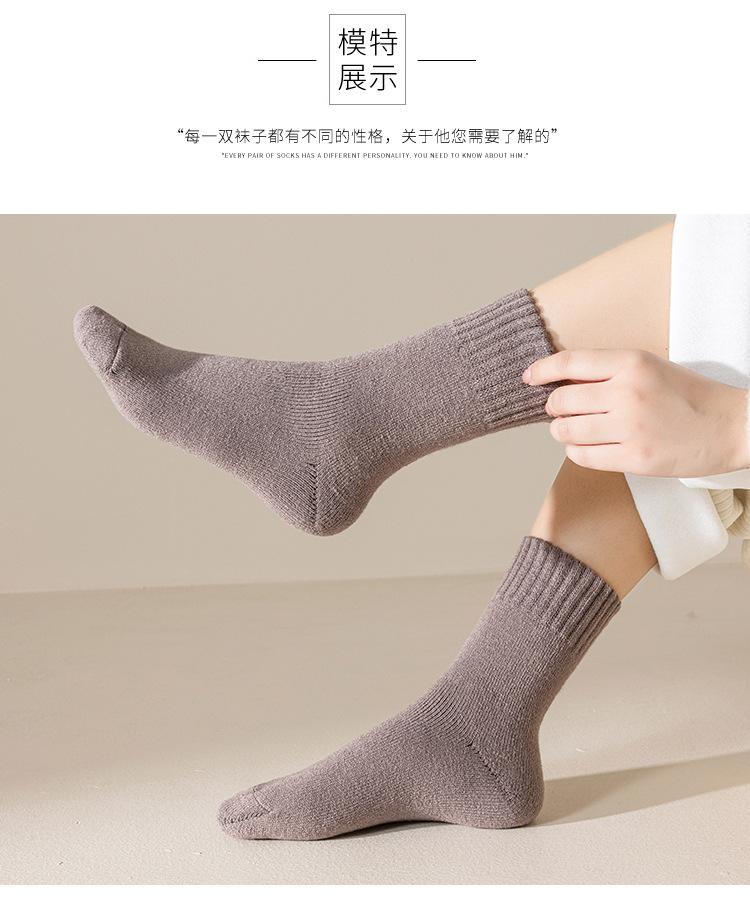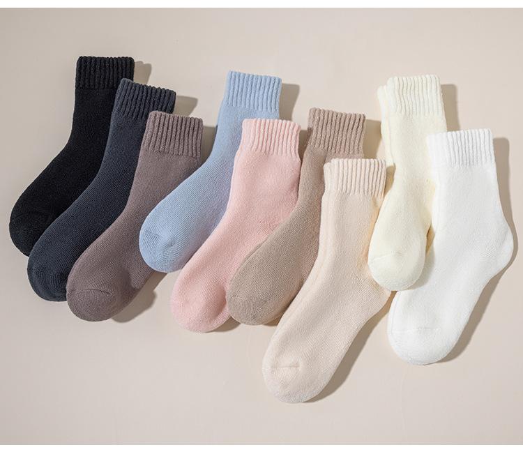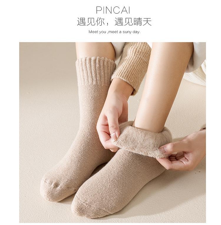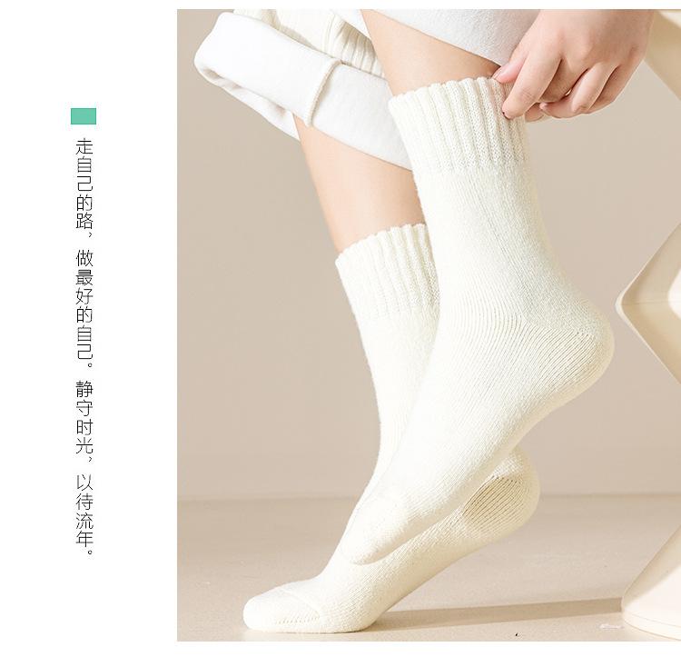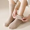 Calcetines de cepillo para mujer de otoño e invierno con forro polar, gruesos y cálidos, de tubo medio, calcetines de suelo de color ceroso, calcetines lunares, calcetines de cepillo de color sólido