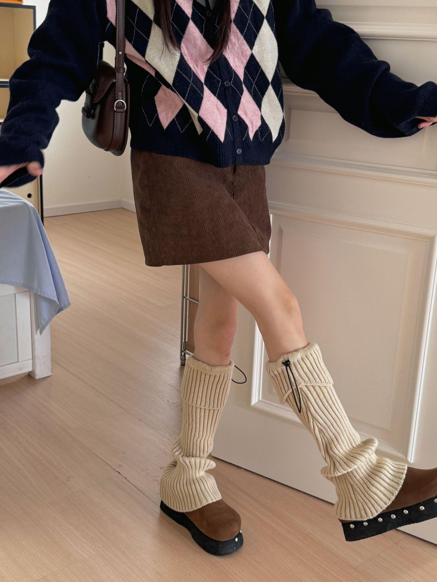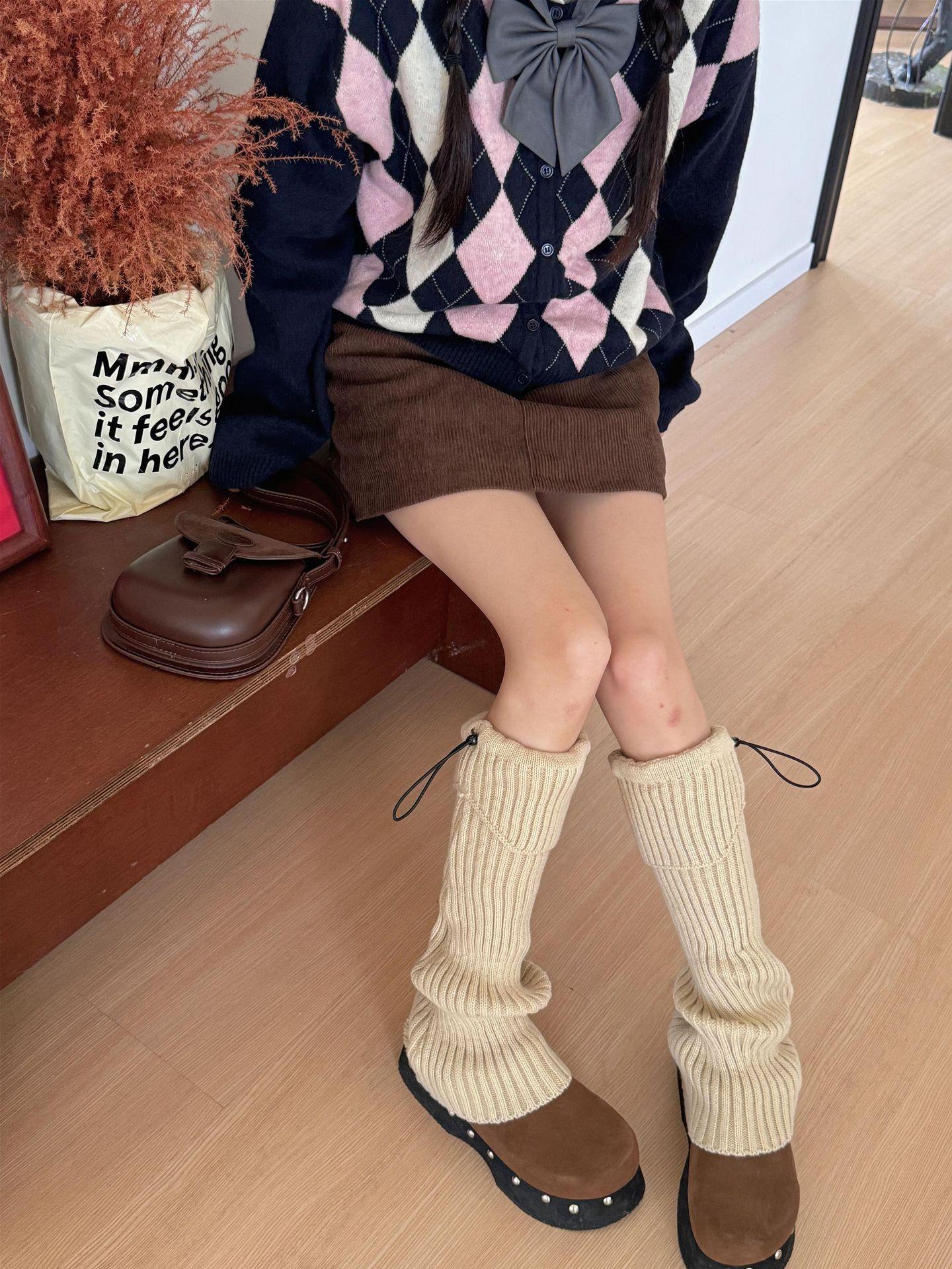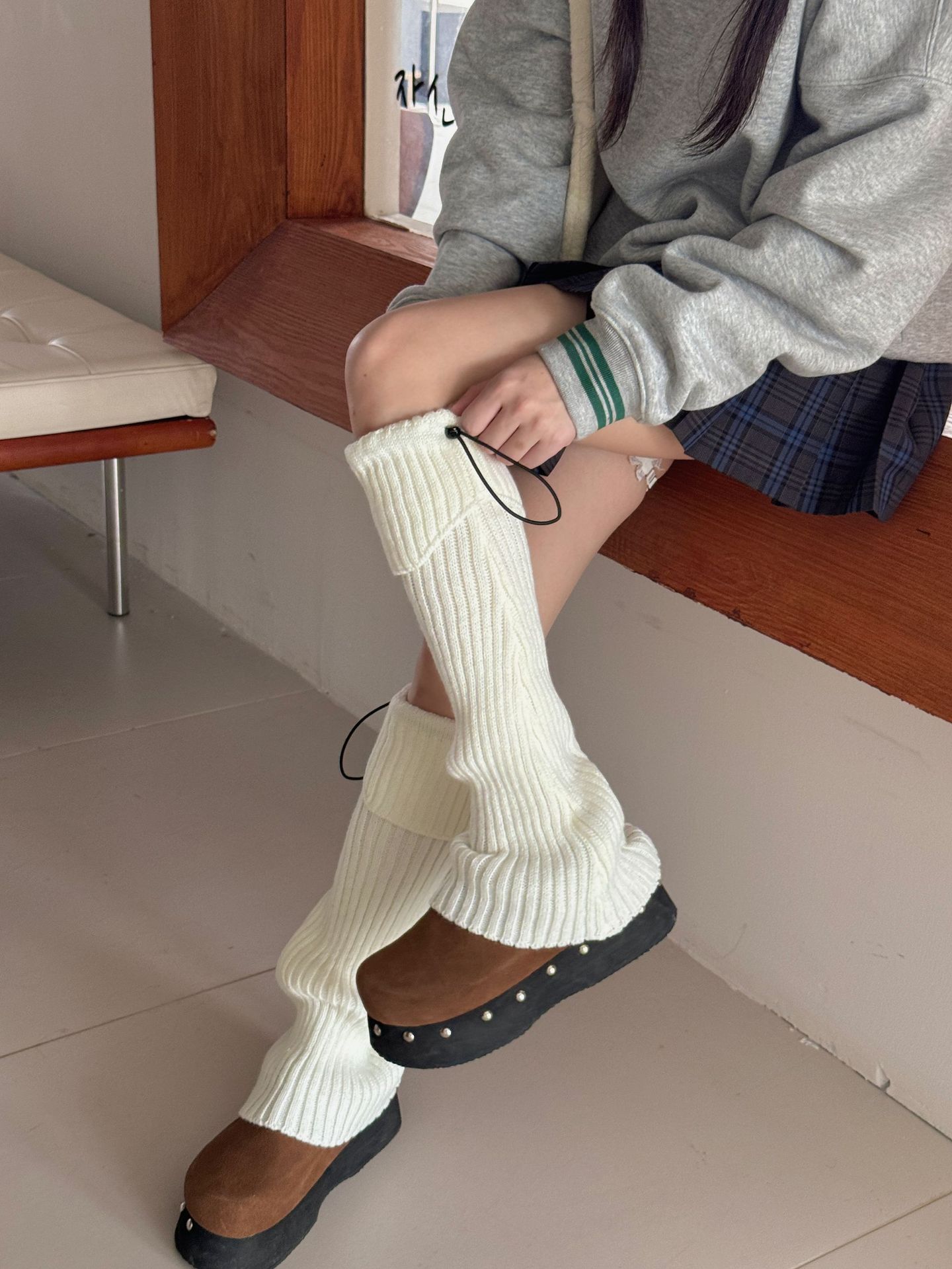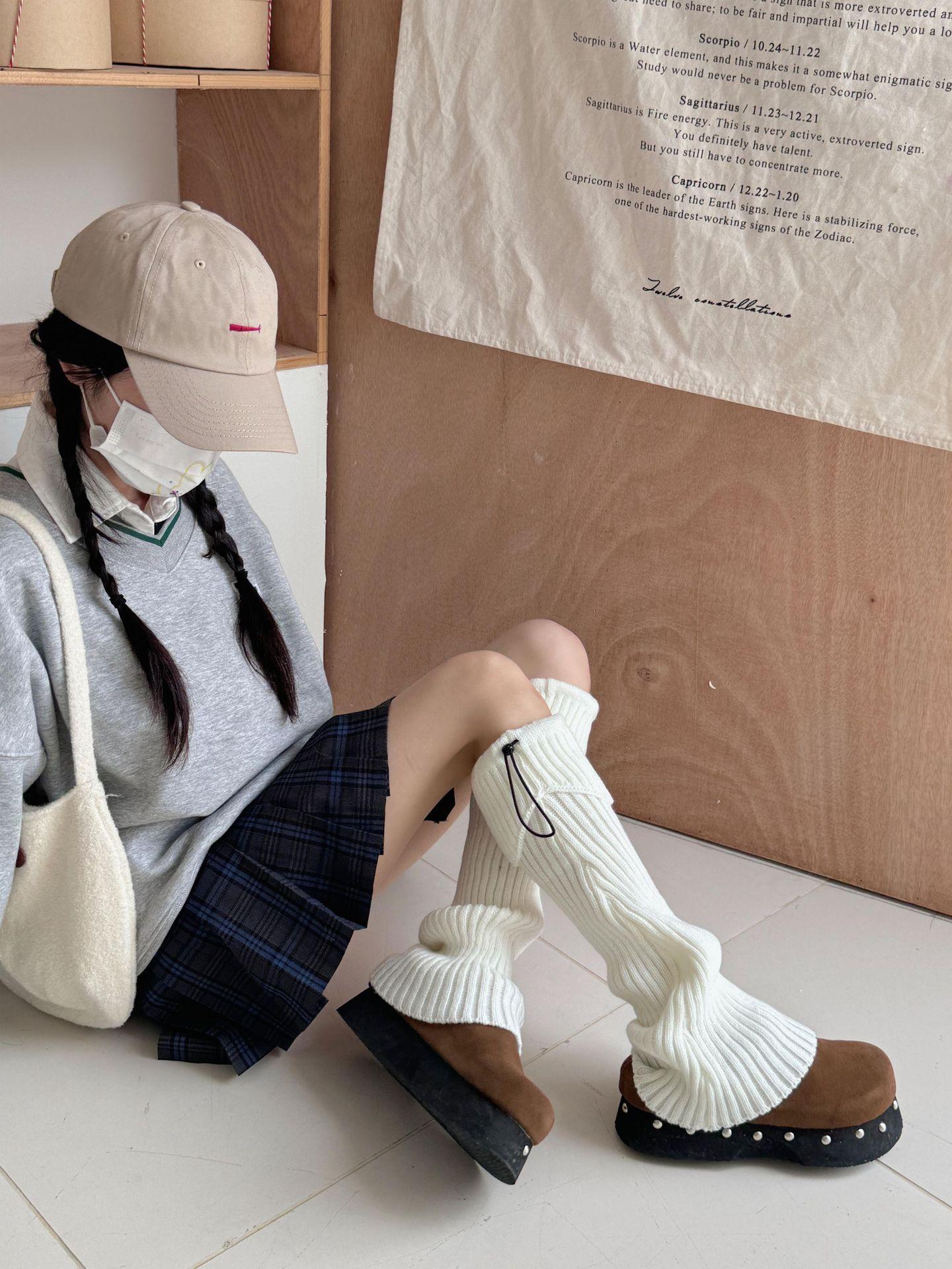 Calcetines apilados de punto cálidos con cubierta de pierna de cuerno blanco para otoño e invierno de 2024