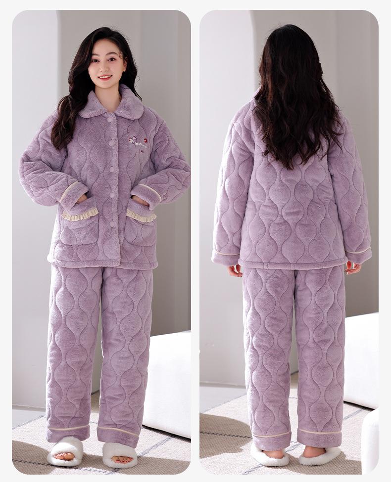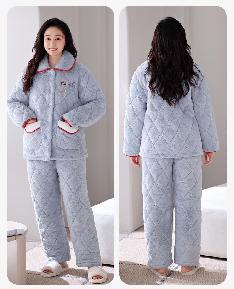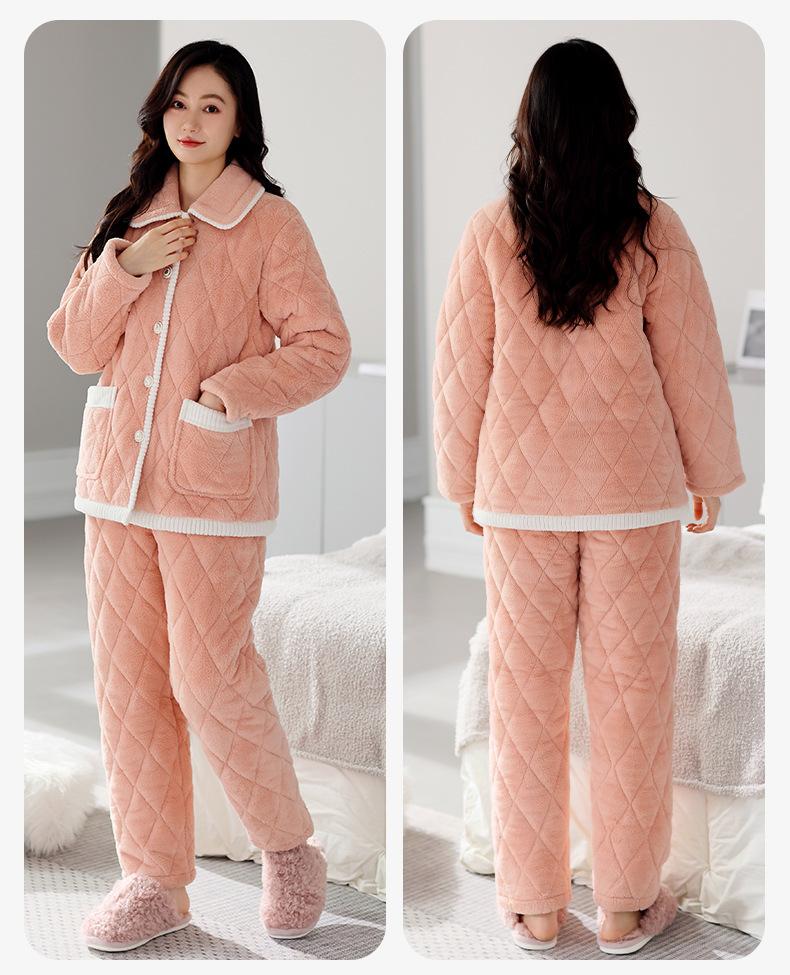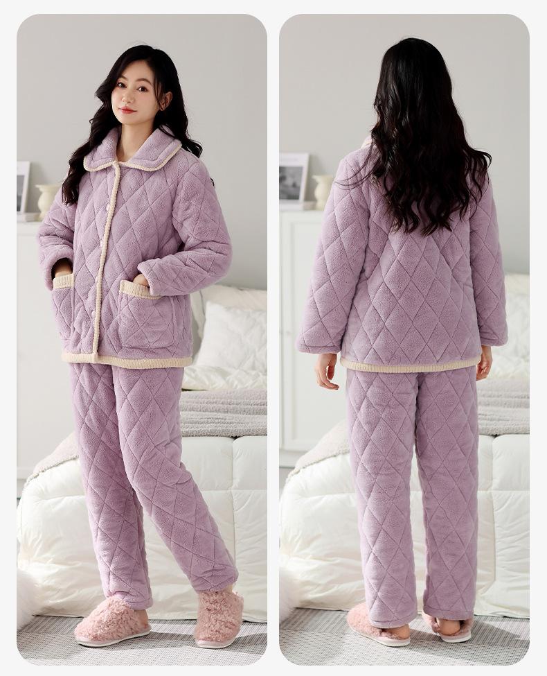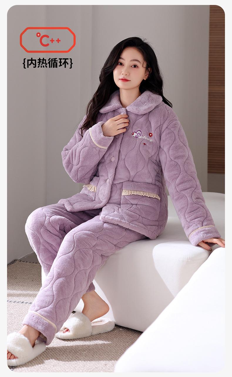 Pijamas acolchados de franela para mujer, ropa de invierno de tres capas con forro polar, gruesos y cálidos, para el hogar de la madre en invierno.