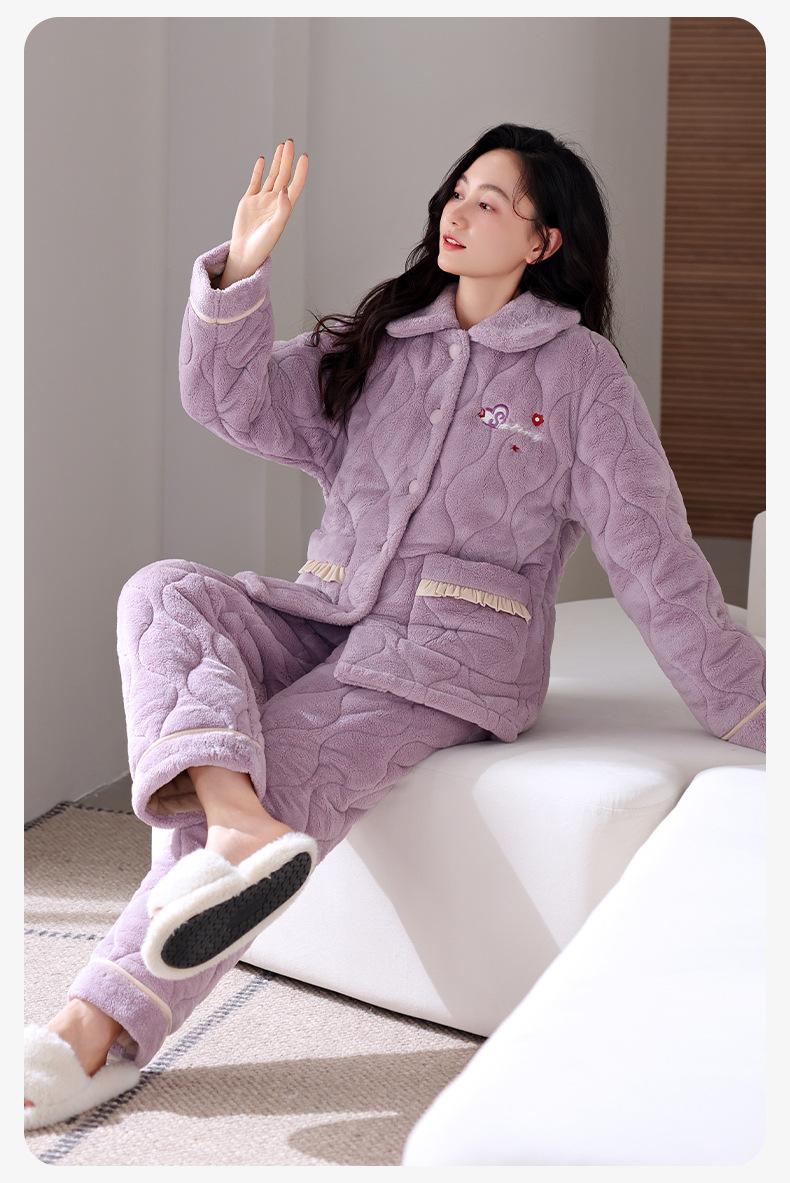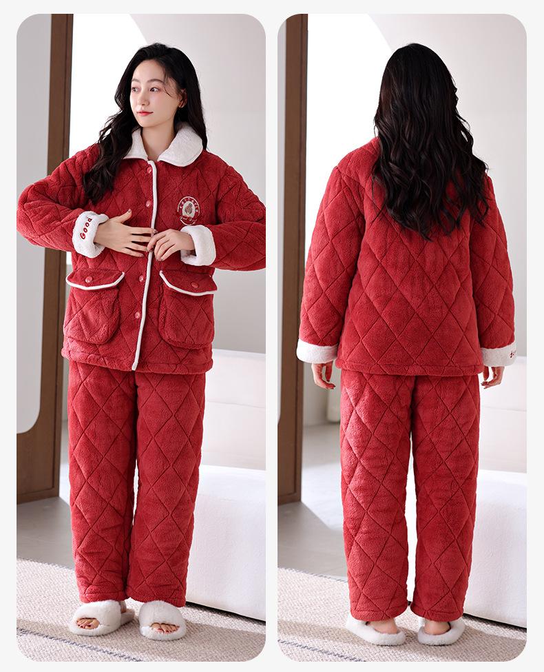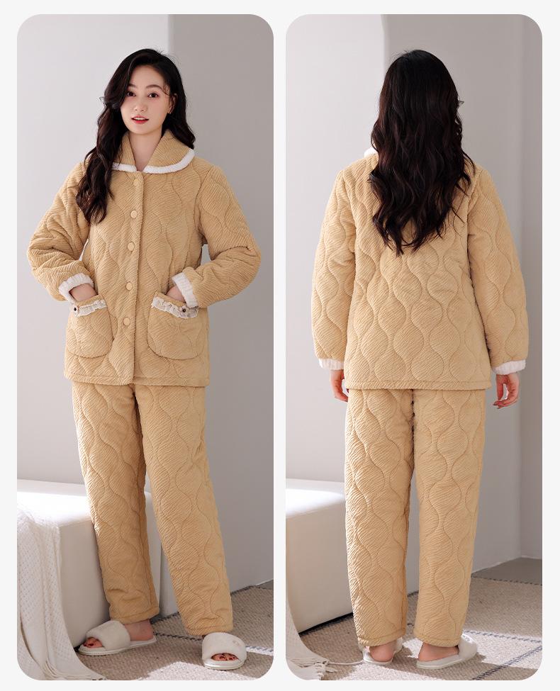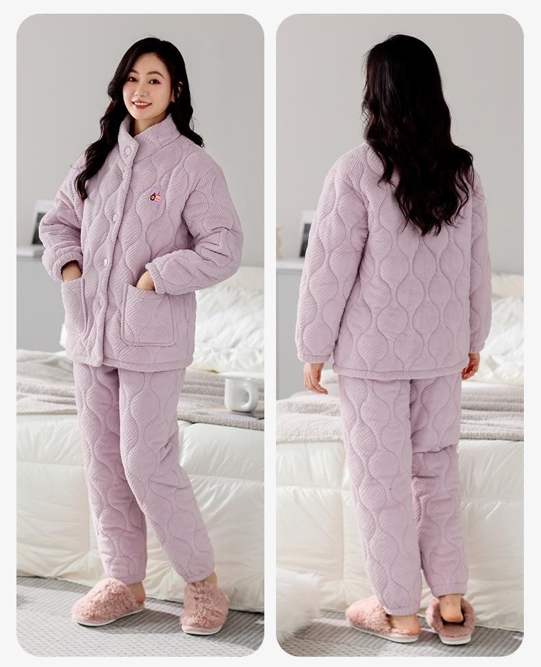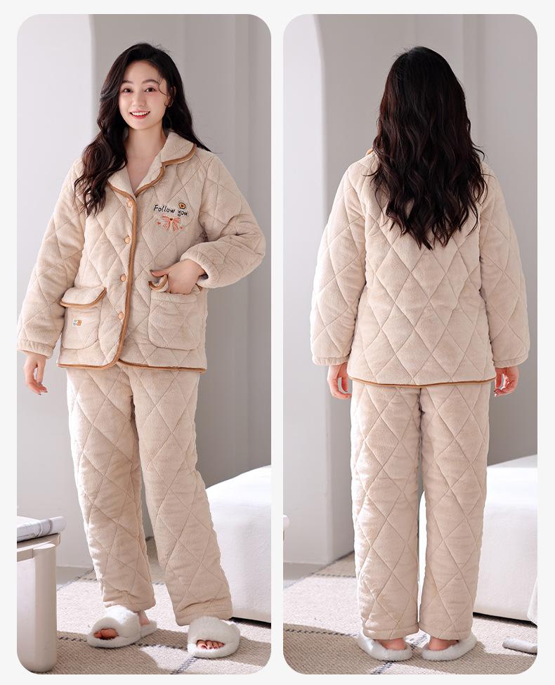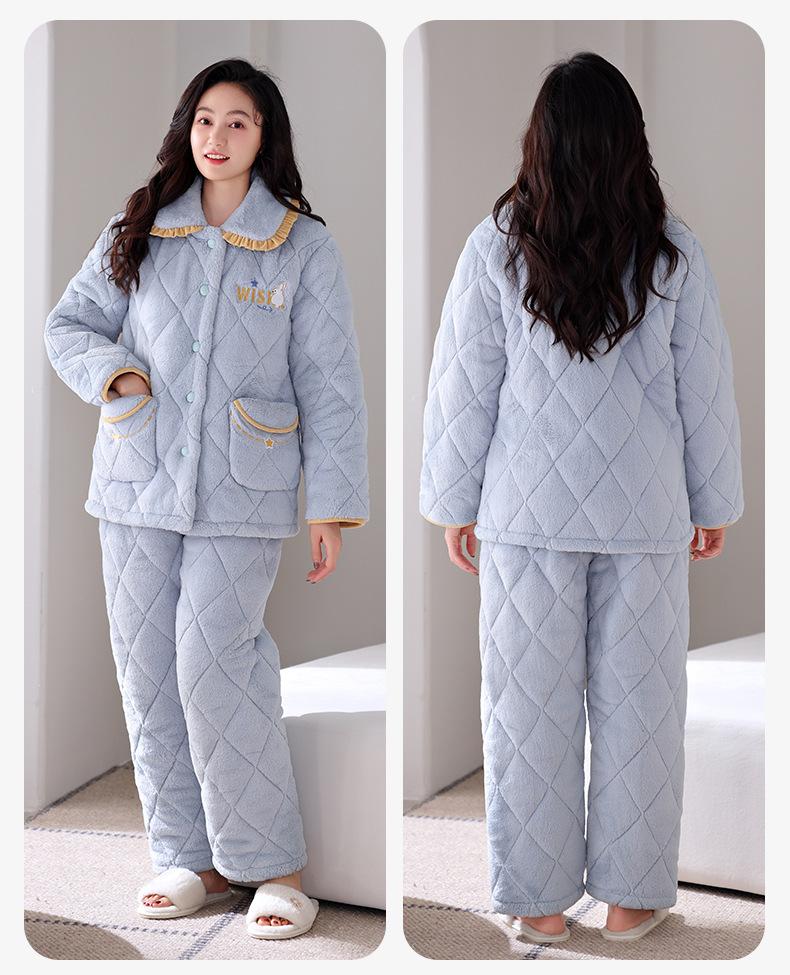 Pijamas acolchados de franela para mujer, ropa de invierno de tres capas con forro polar, gruesos y cálidos, para el hogar de la madre en invierno.