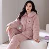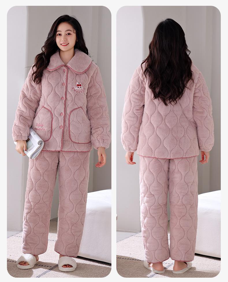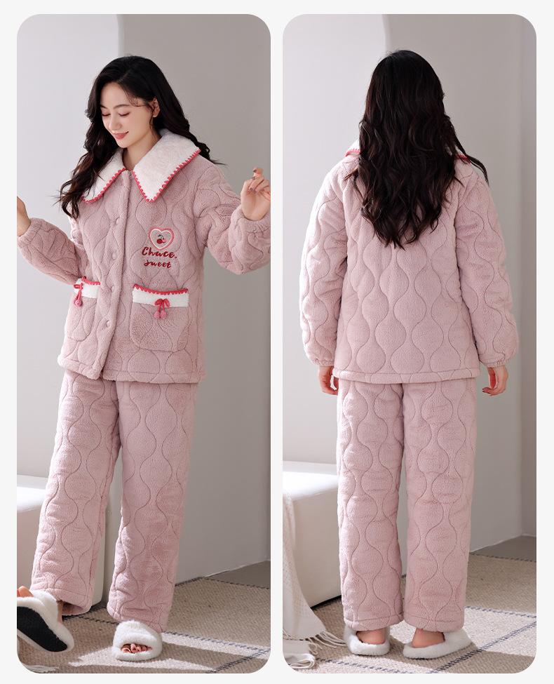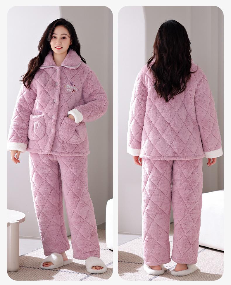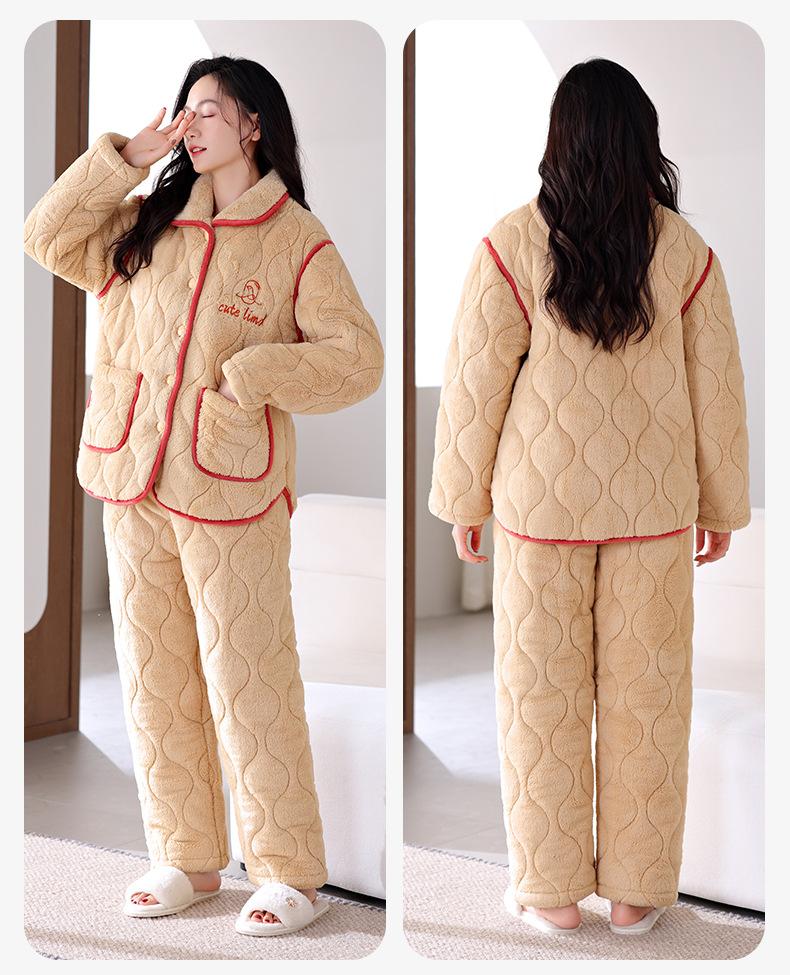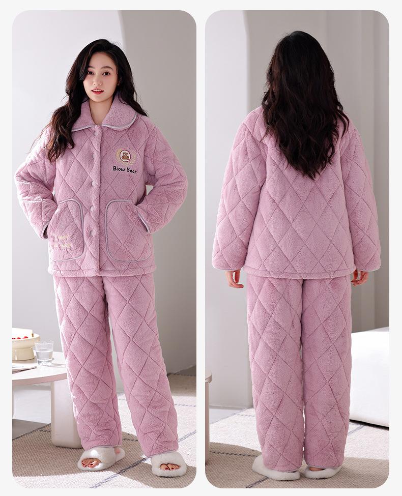 Pijamas acolchados de franela para mujer, ropa de invierno de tres capas con forro polar, gruesos y cálidos, para el hogar de la madre en invierno.