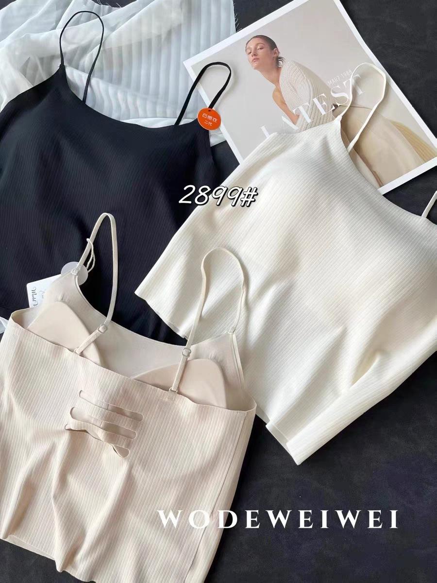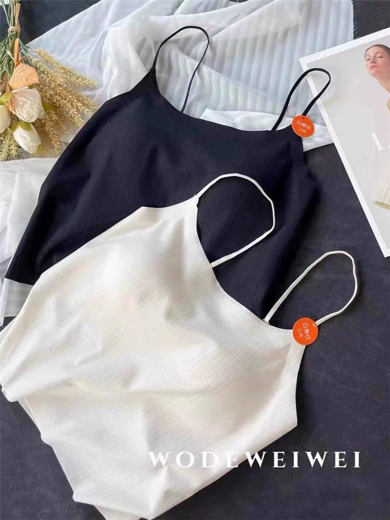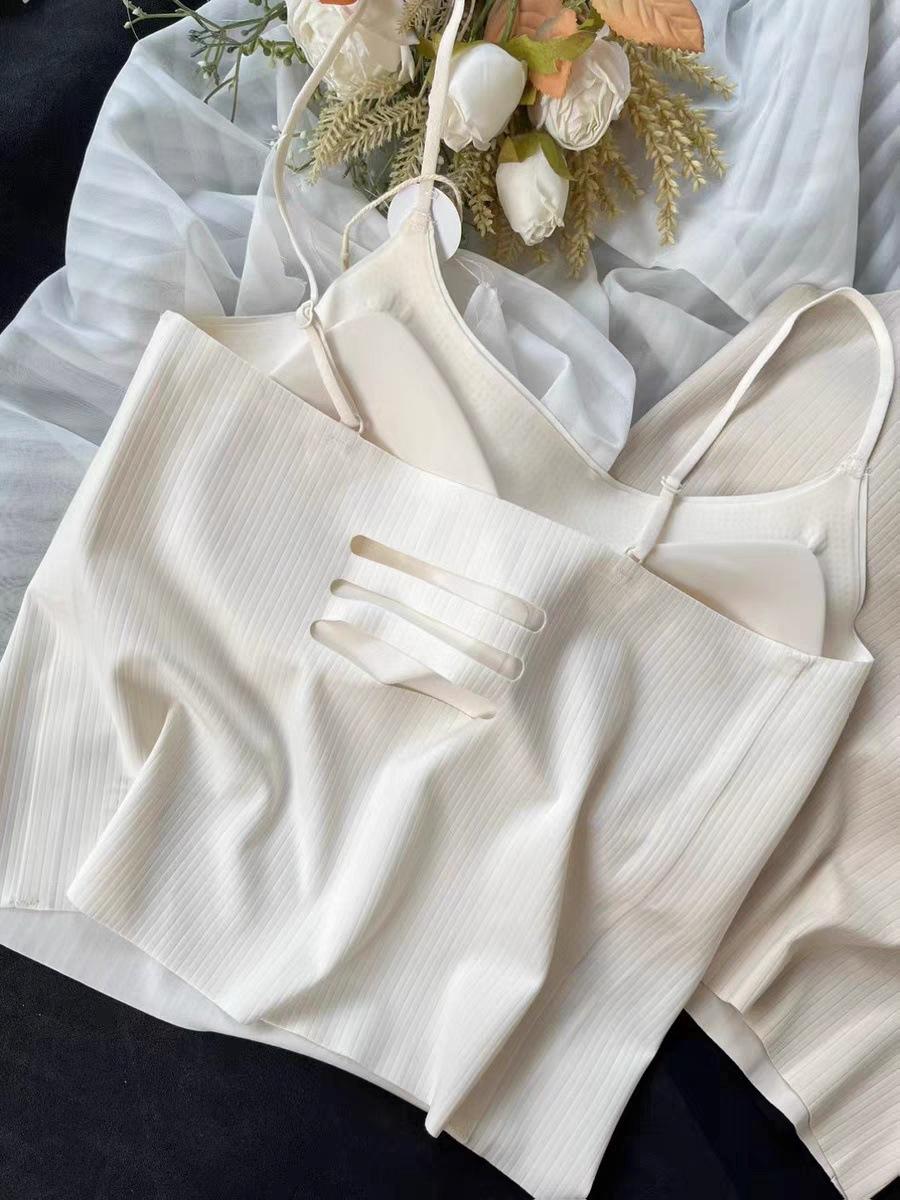 Nuevo Estilo Hilo Fino Camisola Pequeña Chaleco de Mujer con Almohadilla en el Pecho Copa Fija Una Pieza Ajustado Adelgazante Chaleco Combinable