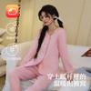Pijama de Algodón Aire de Otoño e Invierno de Alta Calidad de Fábrica para Mujer, Cálido Traje Exterior Acolchado de Tres Capas de Manga Larga