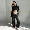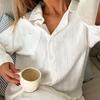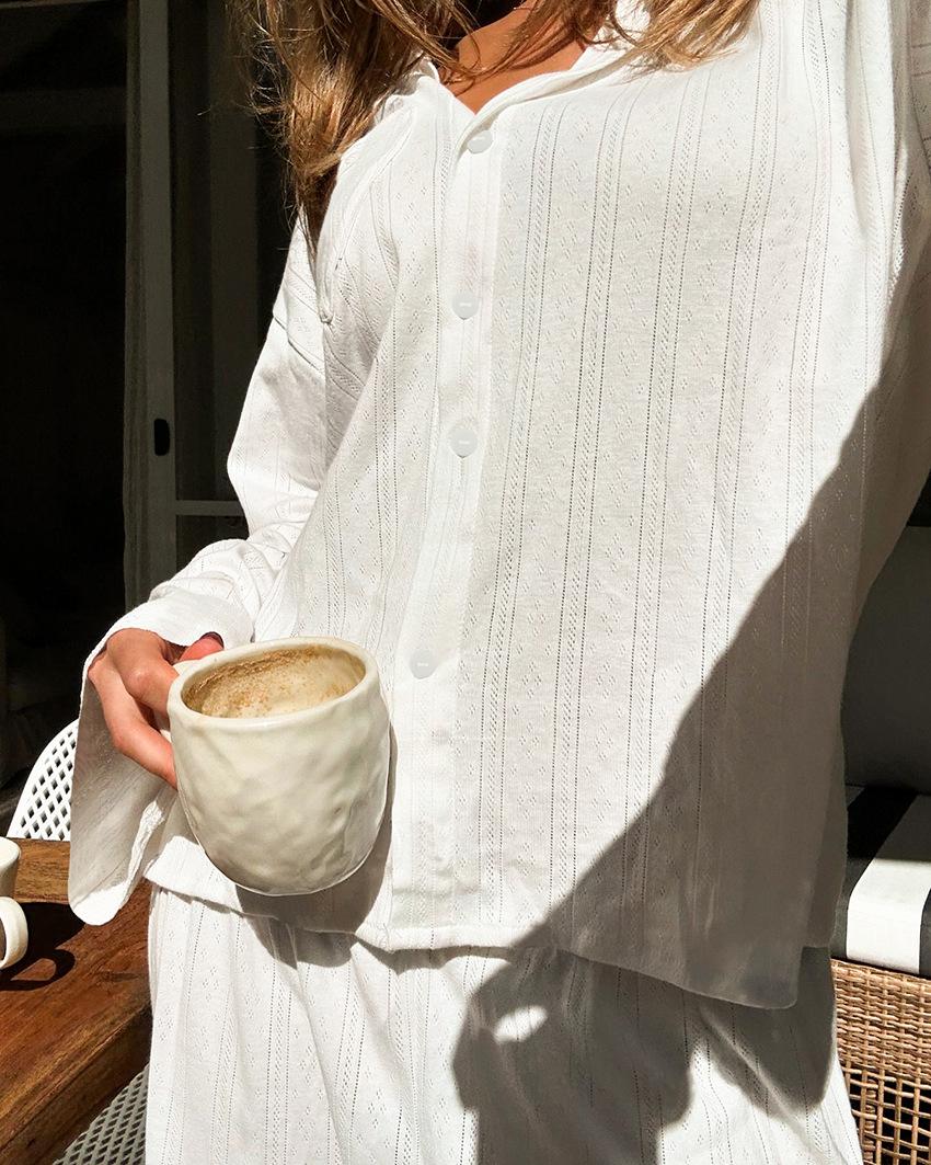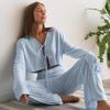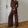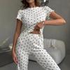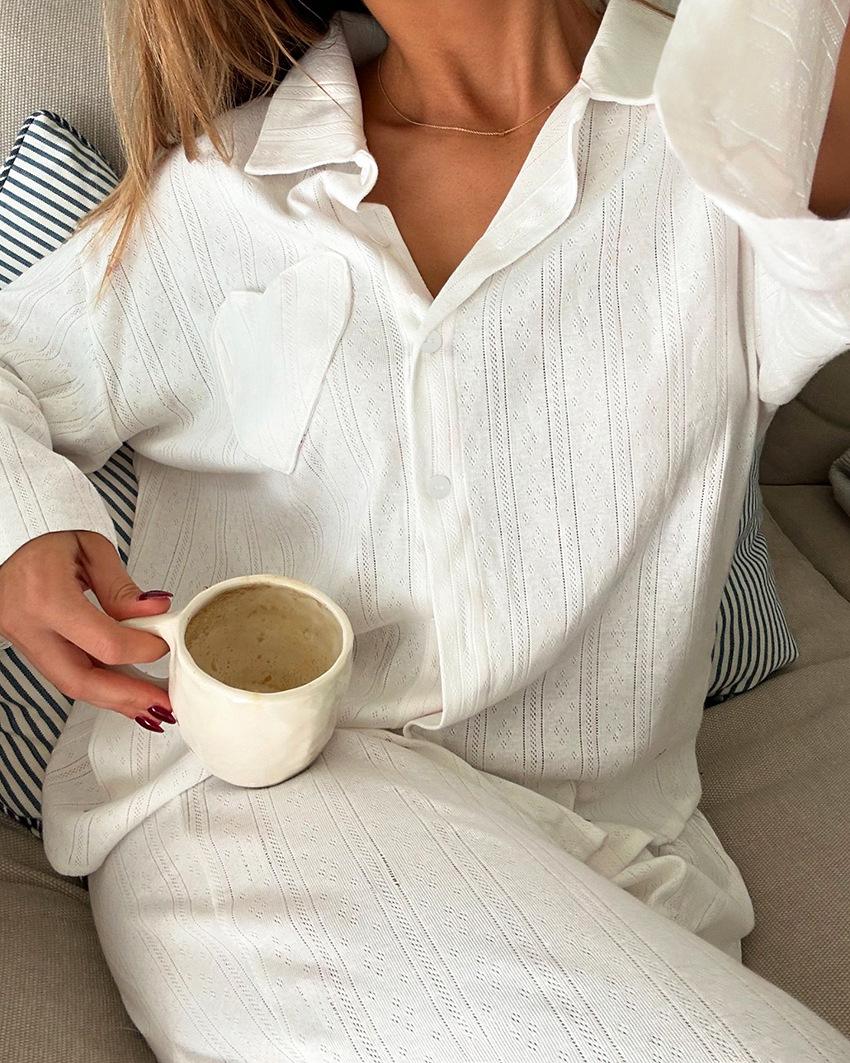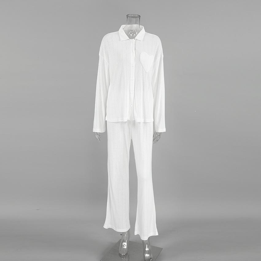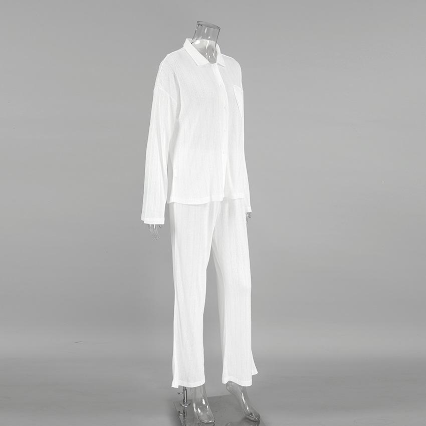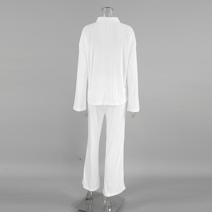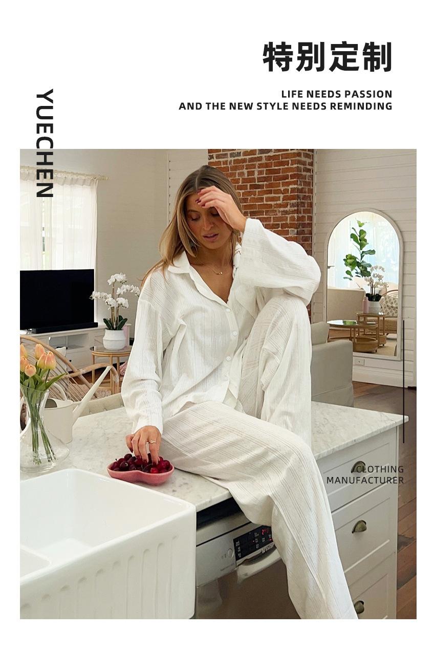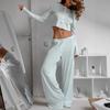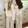 2025 Verano Europeo y Americano Nuevo Suelto y Cómodo Punto Jacquard Pantalones de Manga Larga Pijama Conjunto de Dos Piezas Ropa de Casa Transfronteriza