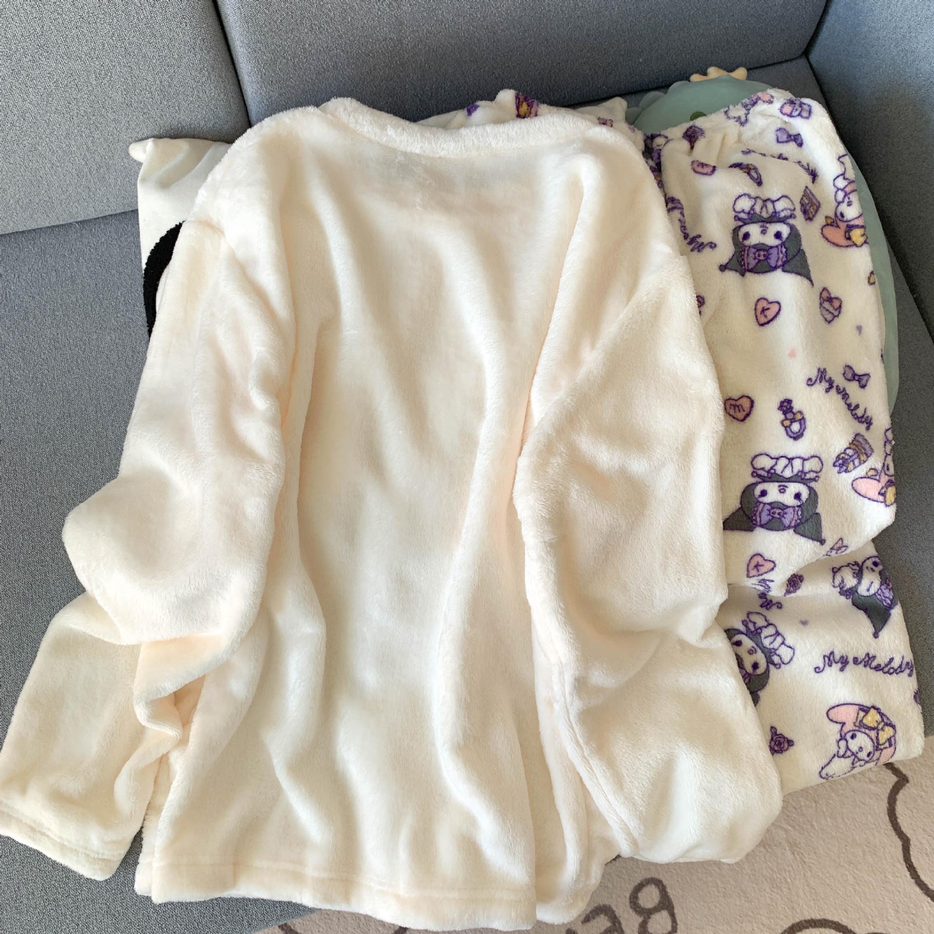 Pijama para Mujer Otoño e Invierno Forro Polar de Coral Manga Larga Traje de Dibujos Animados Invierno Franela con Forro Polar Grueso Cálido Ropa para el Hogar