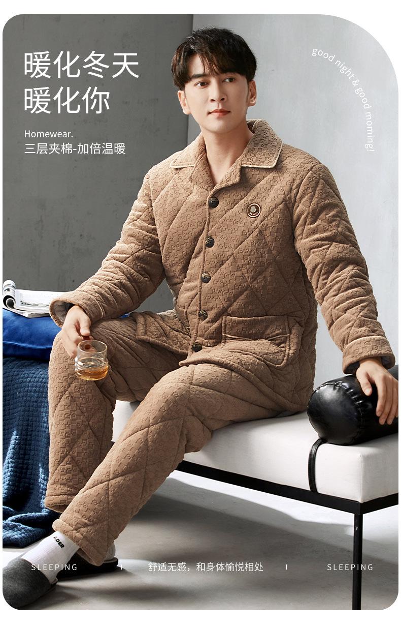 Pijama para hombre de invierno directo de fábrica nuevo en stock acolchado cálido y cómodo color sólido simple ropa para el hogar se puede usar afuera