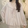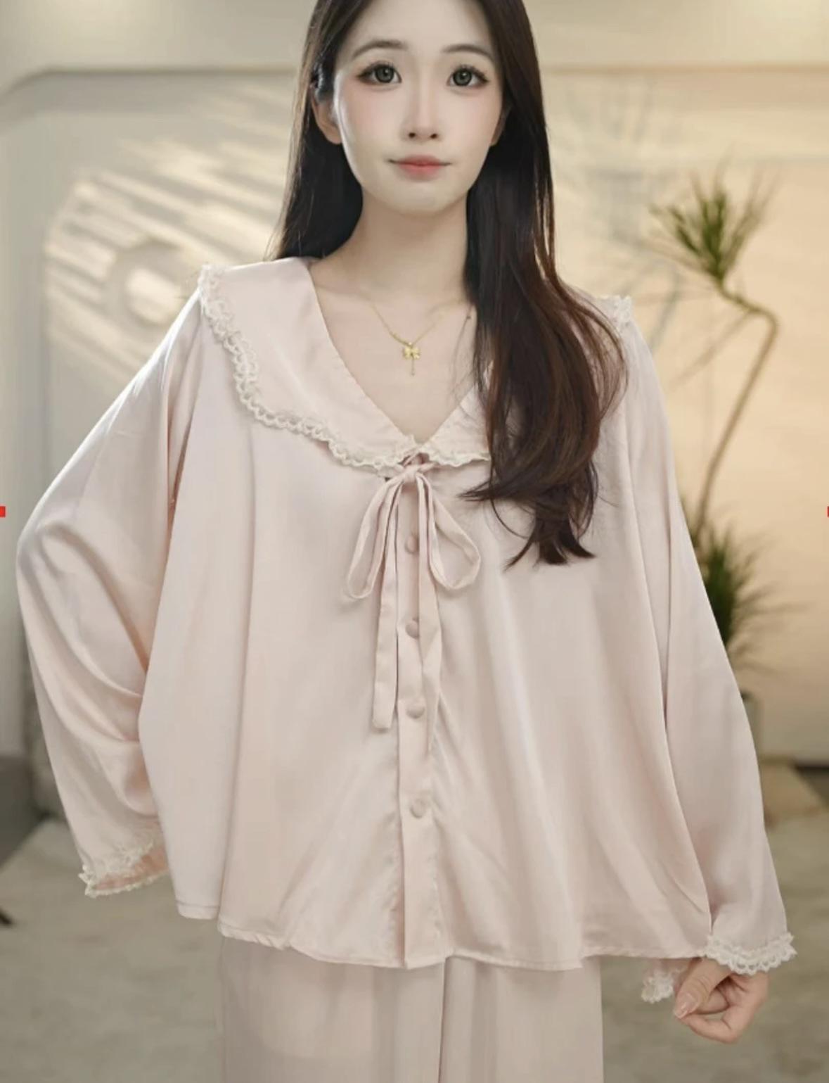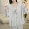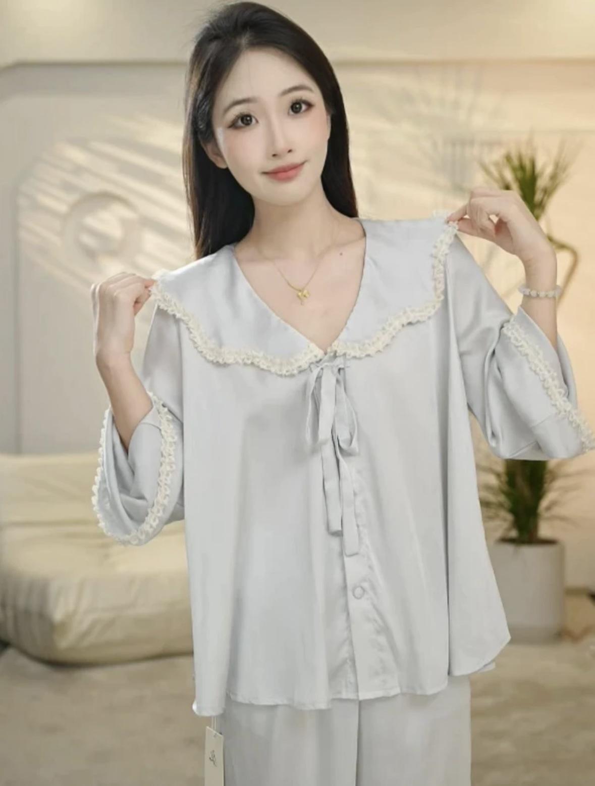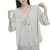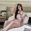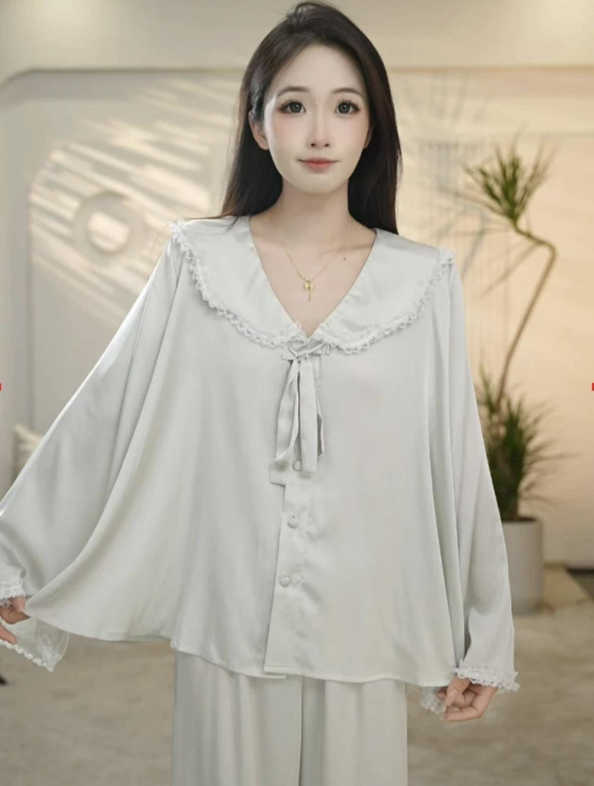 [Azul Glaciar] Pijama de Seda de Hielo para Mujer Primavera y Verano Nuevo Traje para el Hogar de Manga Larga Lujo Ligero Uso de Alta Gama