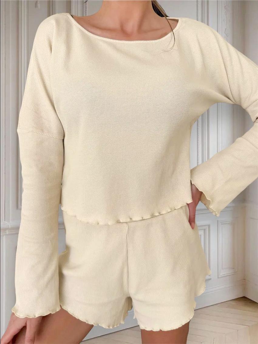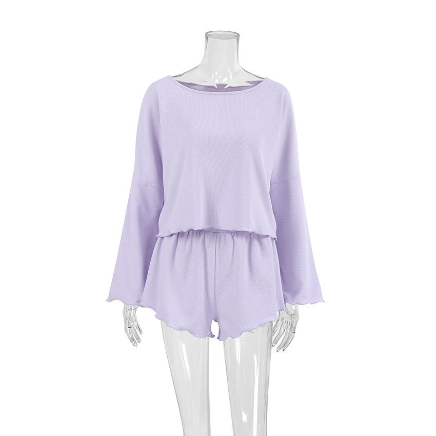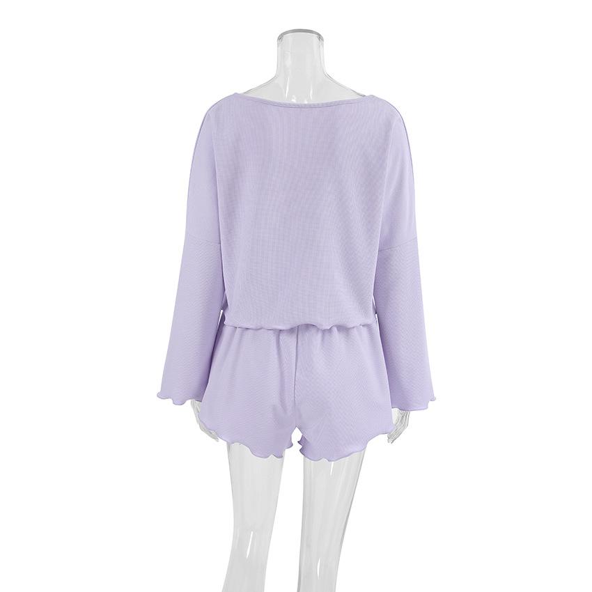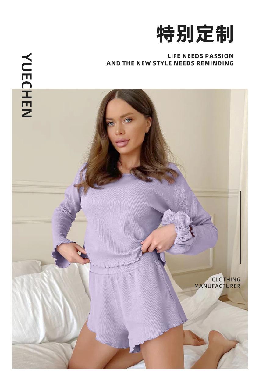 Pijamas de manga larga transfronterizos nuevos de 2024, pantalones cortos de gofre de verano e invierno para mujer, ropa de hogar suave de moda al por mayor