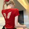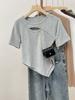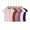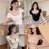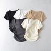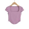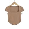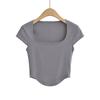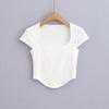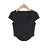 Camiseta de manga corta con cuello cuadrado bajo, sexy, estilo Spice Girl, estilo europeo y americano, irregular, corta, ajustada y adelgazante.