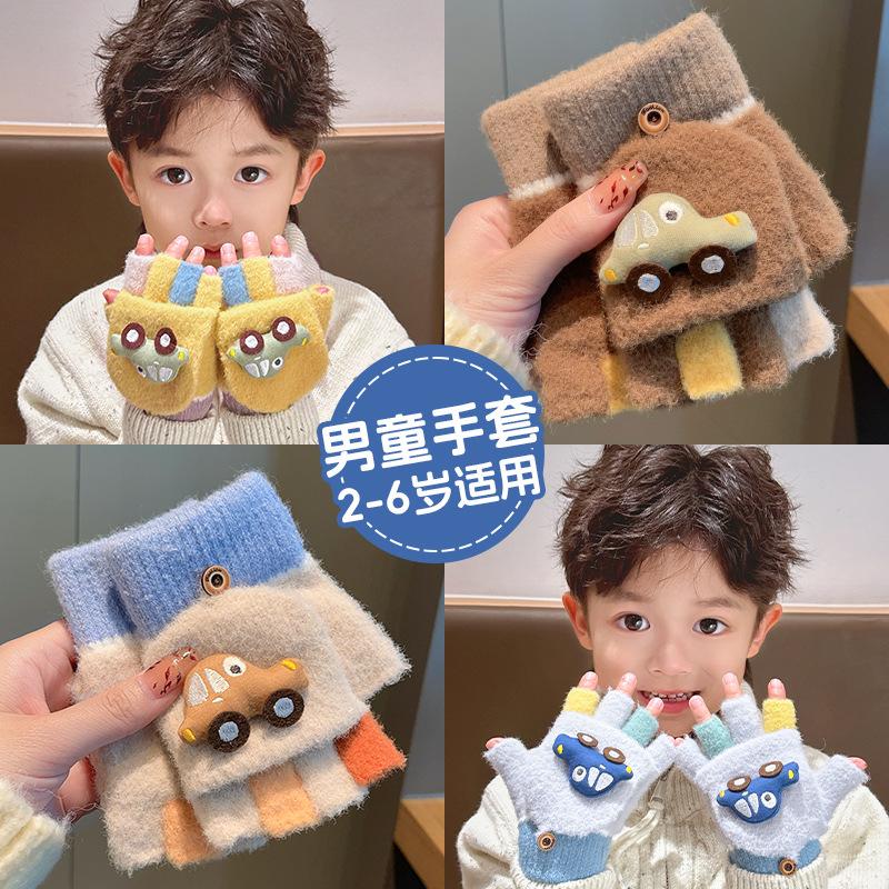 Guantes de invierno para niños, cálidos, nuevos, para niños y niñas, bonitos guantes de medio dedo a prueba de frío para bebés.