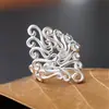 Deseo Anillo de Flores de Venta Caliente Comercio Exterior Anillo de Patrón Retro para Mujer Europa y América Exagerado Popular Joyería Plateada al Por Mayor
