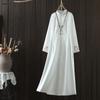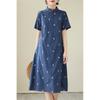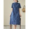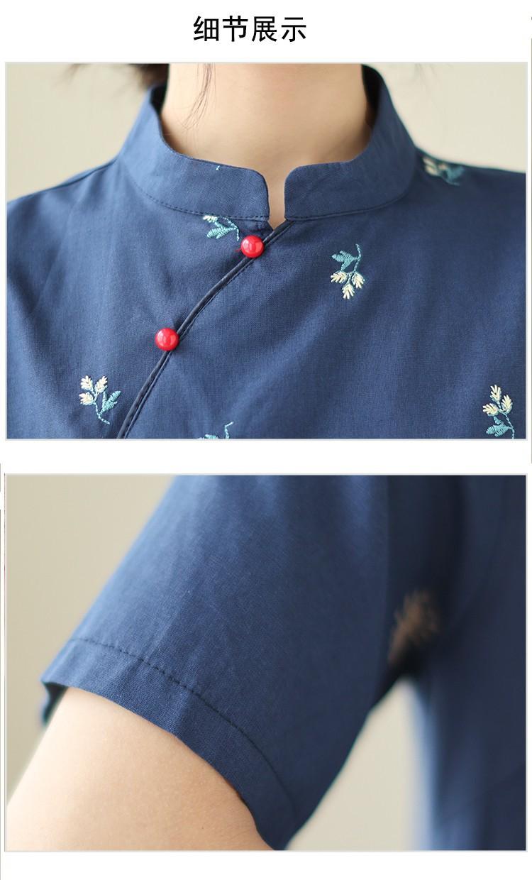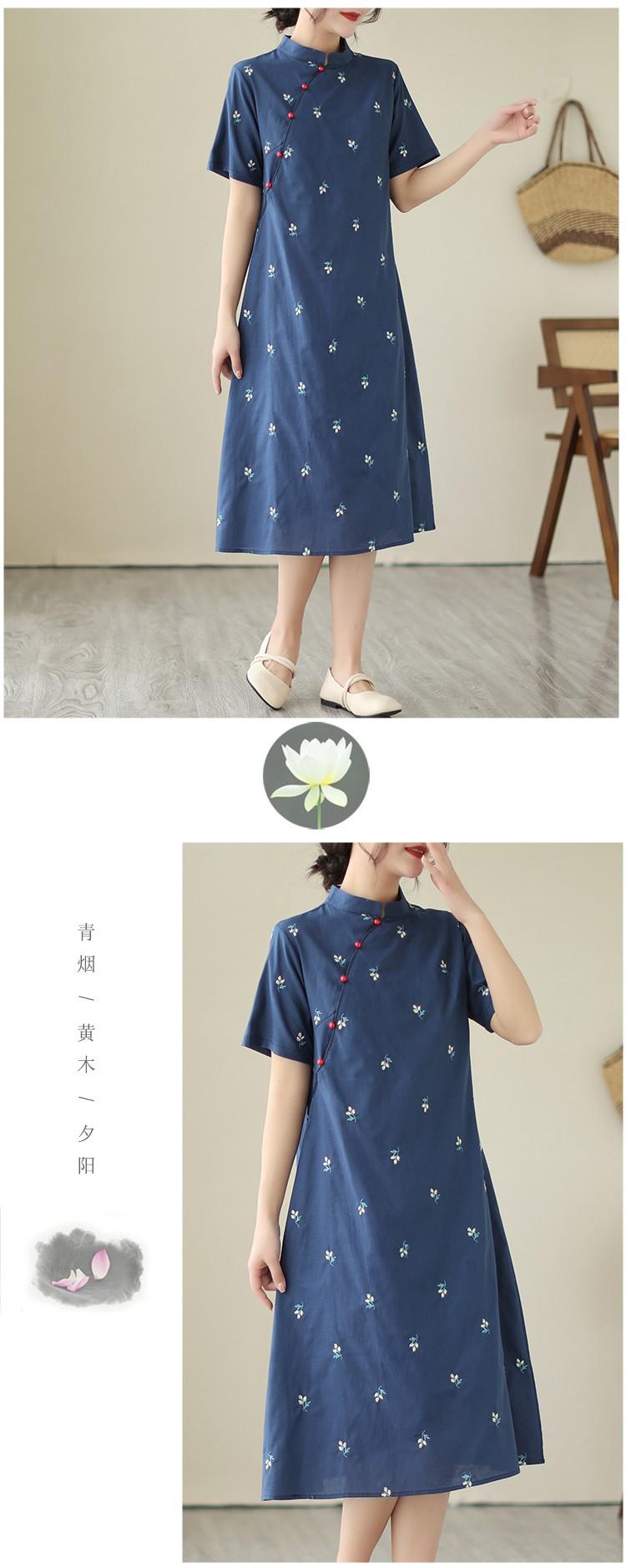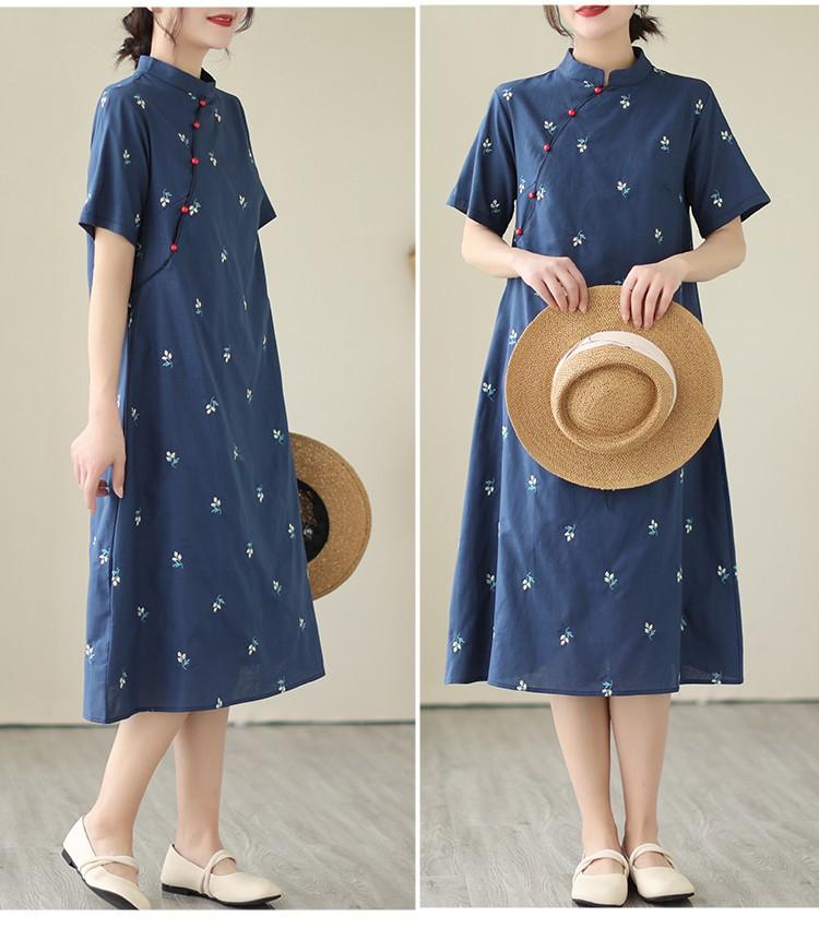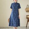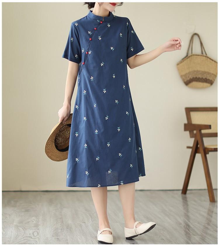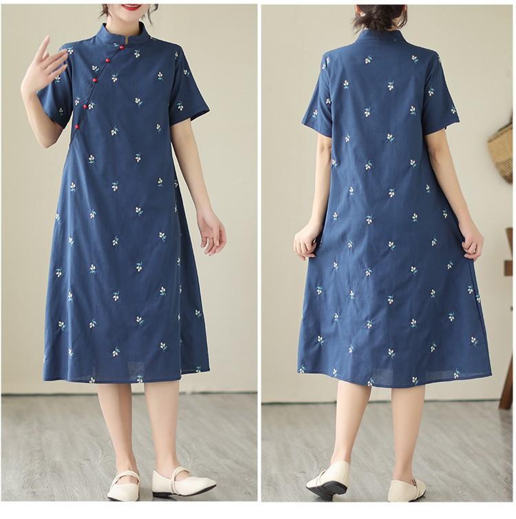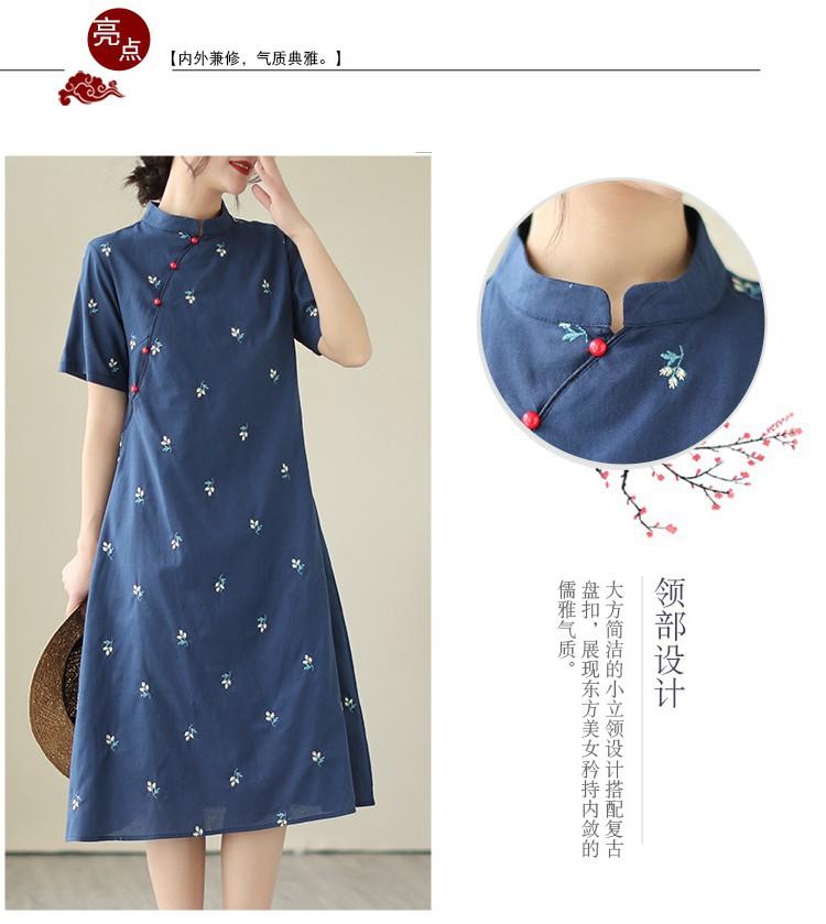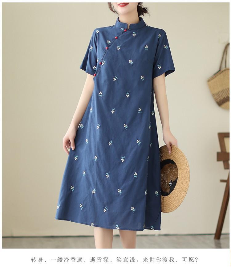 Vestido cheongsam clásico holgado de lino y algodón con cuello modificado, bordado, estilo chino, estilo retro, largo medio, 2023