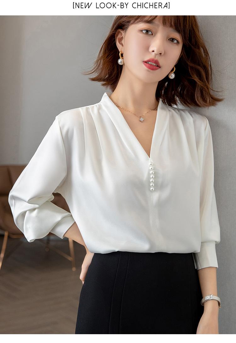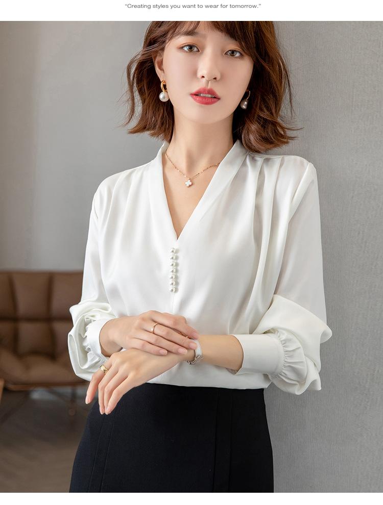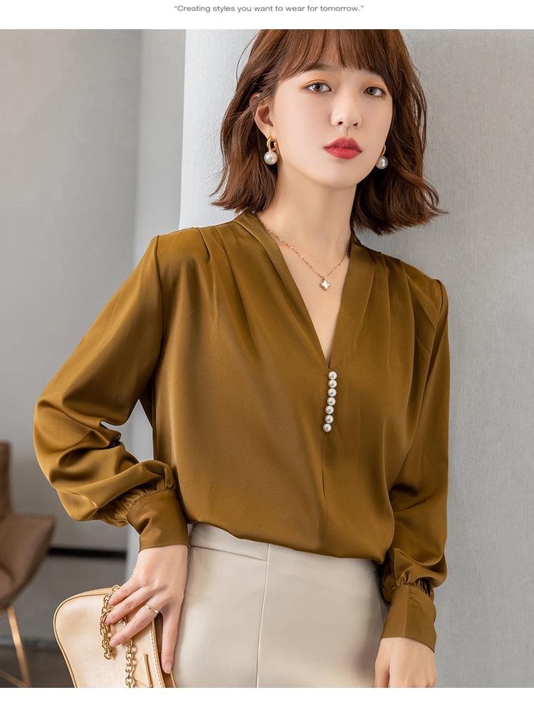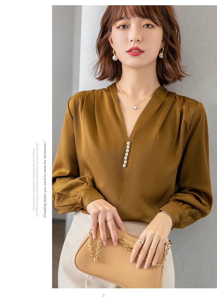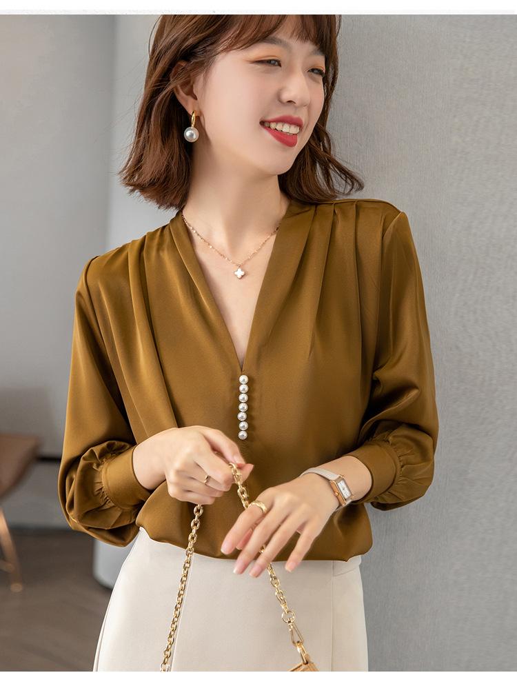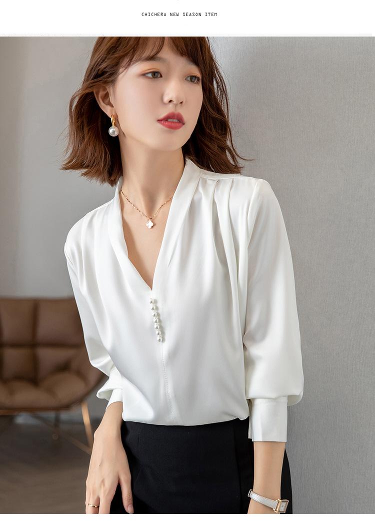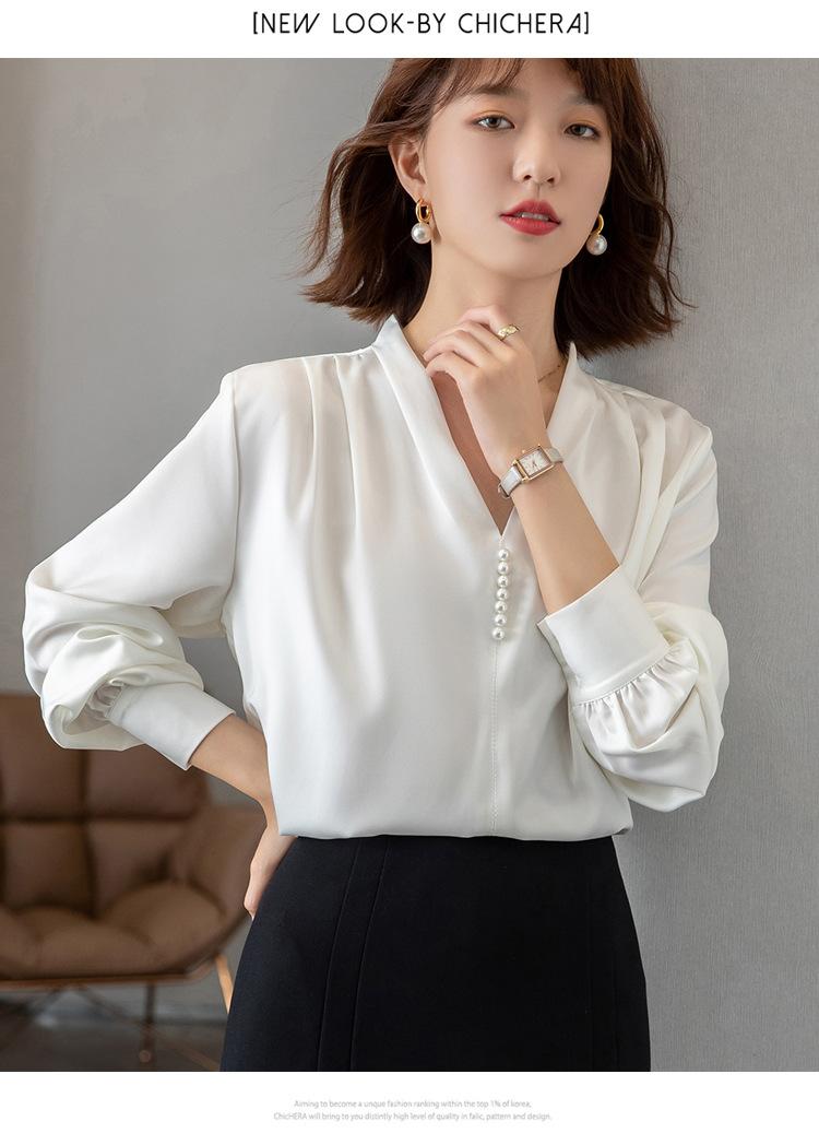 Camisa profesional de estilo coreano para mujer, estilo transfronterizo, nueva moda 2023, calidad, estilo coreano, con cuentas, retro, elegante, con cuello en V.