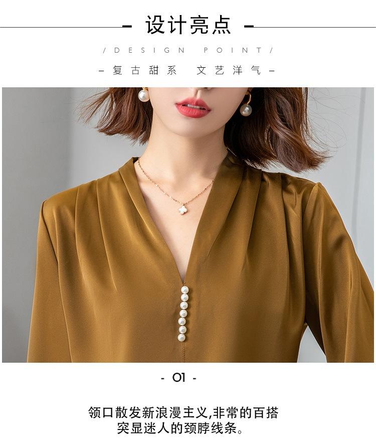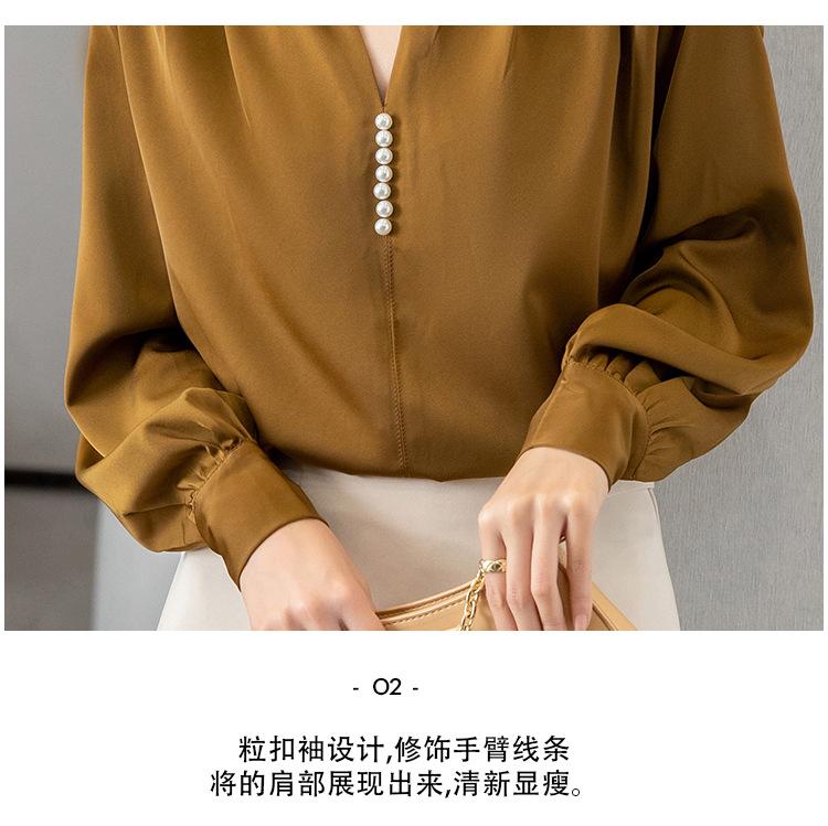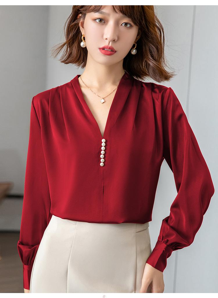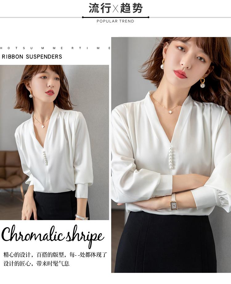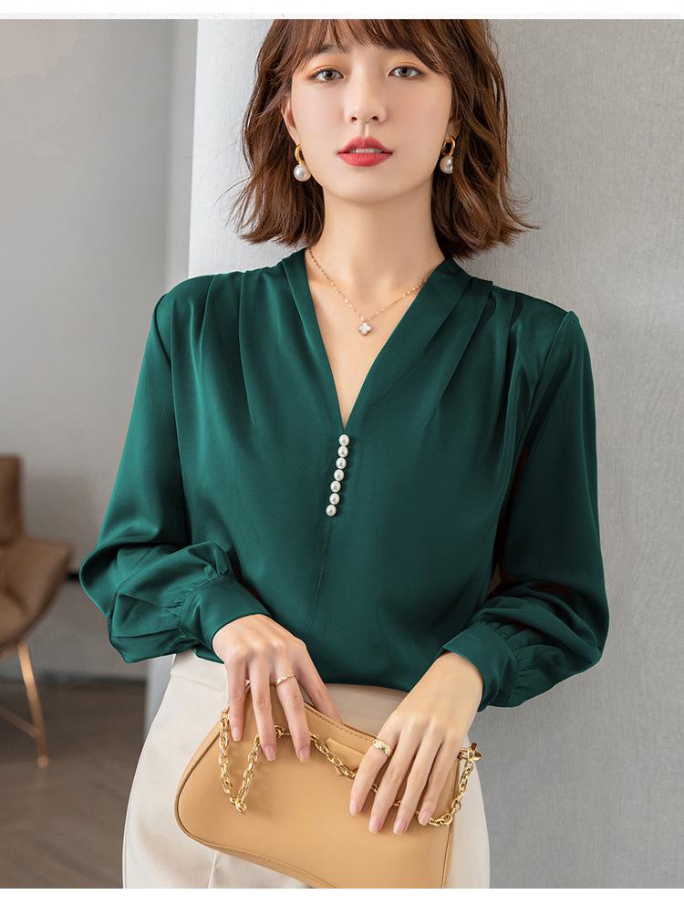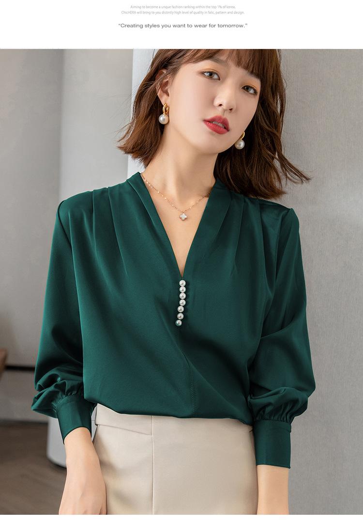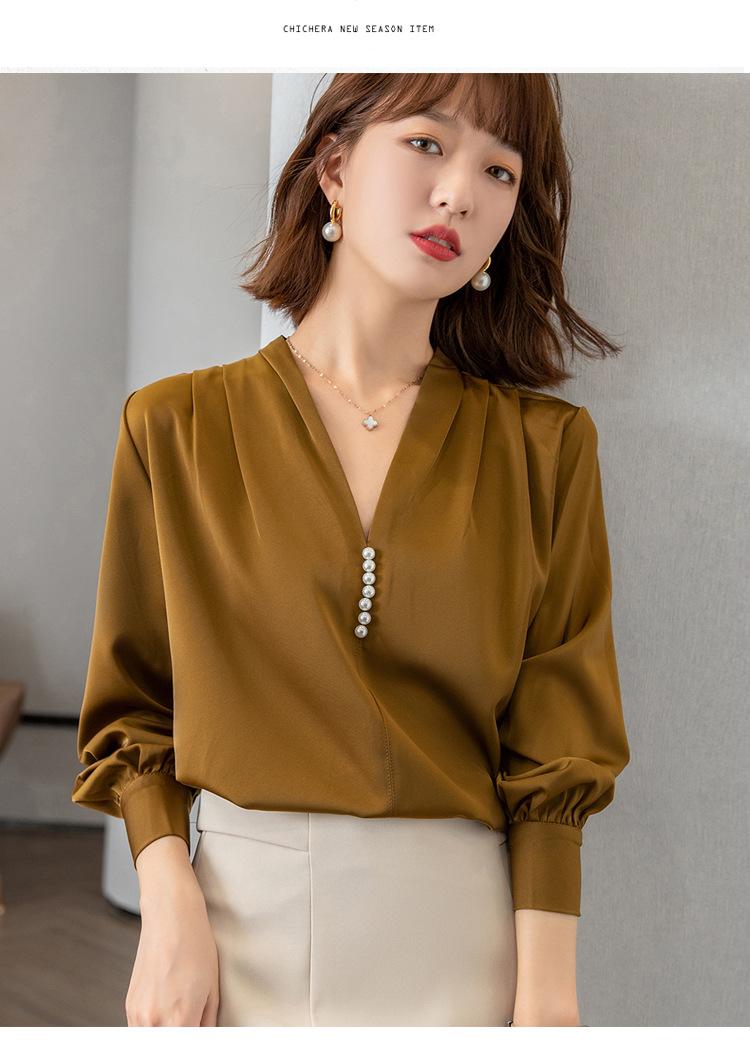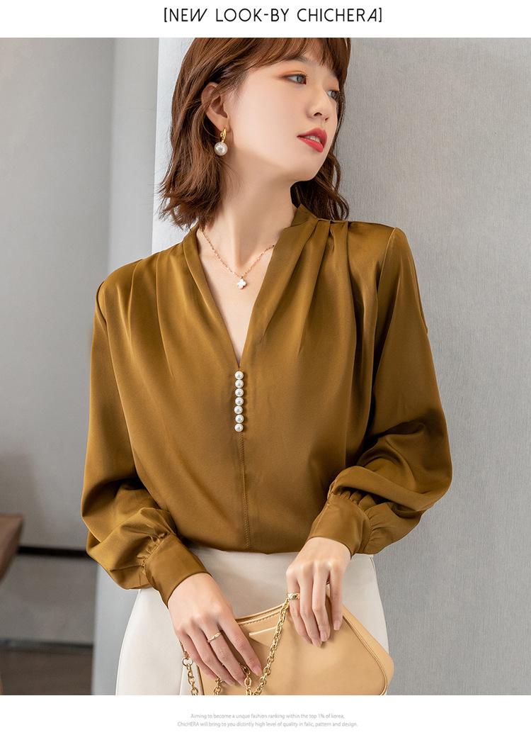 Camisa profesional de estilo coreano para mujer, estilo transfronterizo, nueva moda 2023, calidad, estilo coreano, con cuentas, retro, elegante, con cuello en V.