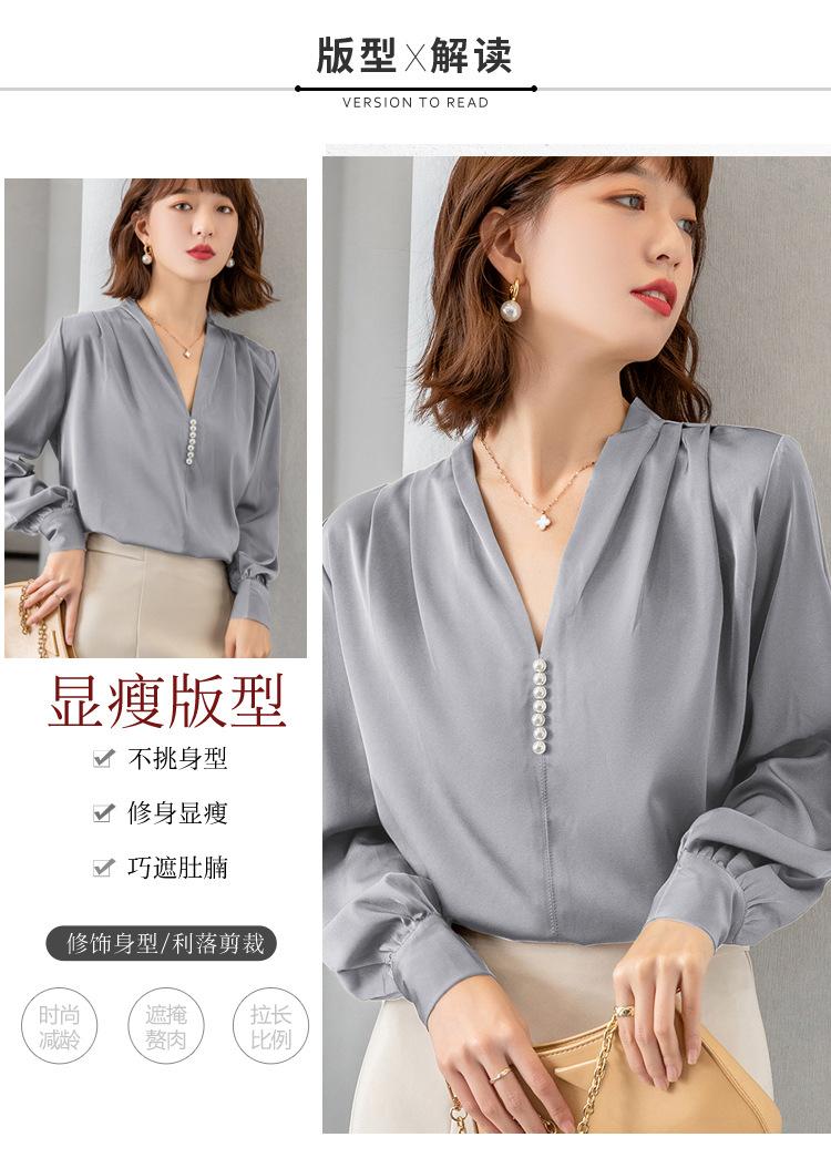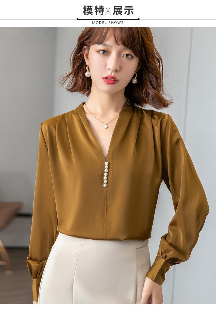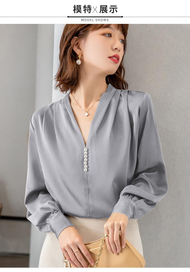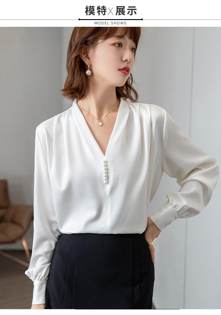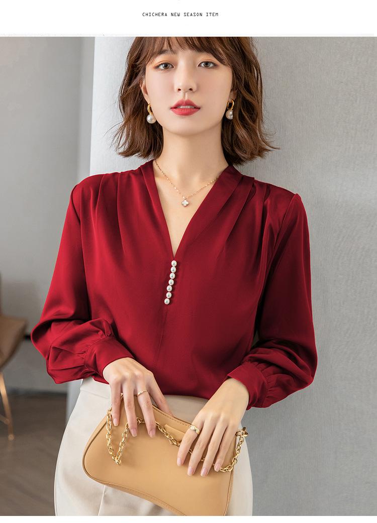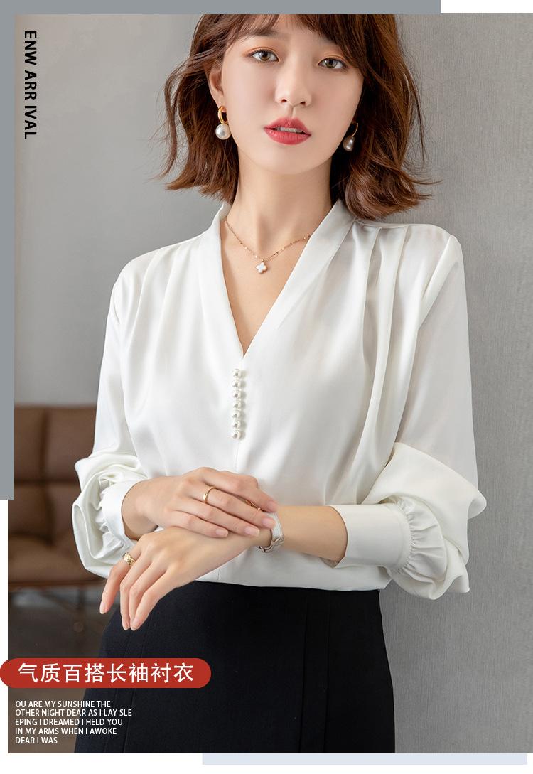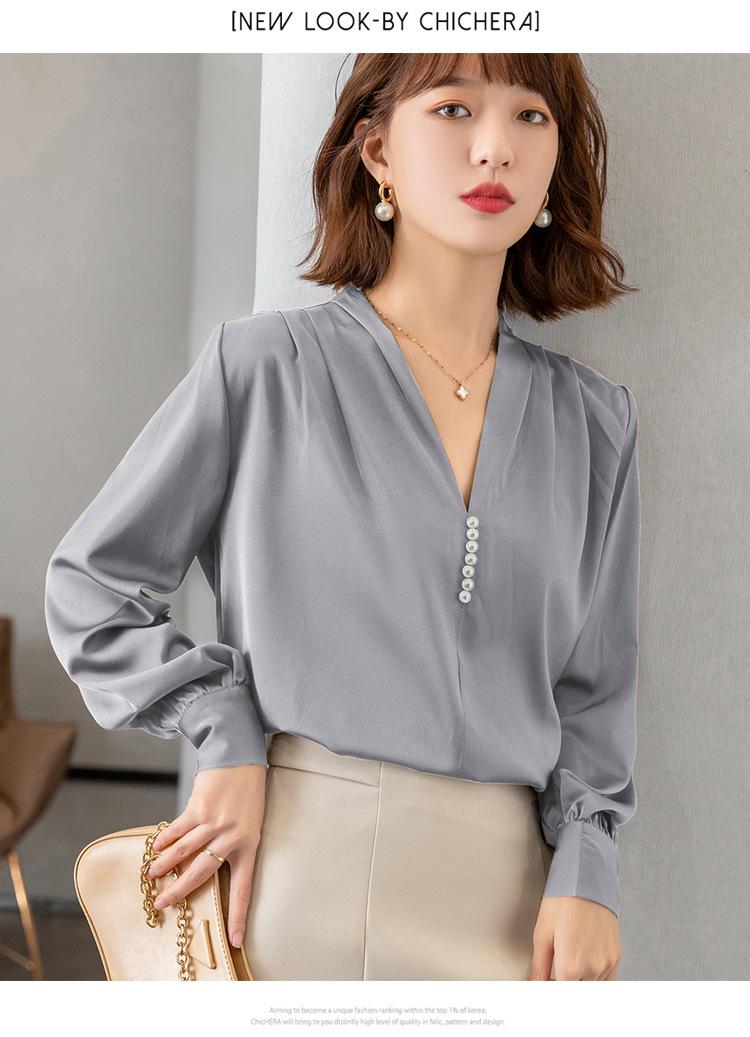 Camisa profesional de estilo coreano para mujer, estilo transfronterizo, nueva moda 2023, calidad, estilo coreano, con cuentas, retro, elegante, con cuello en V.