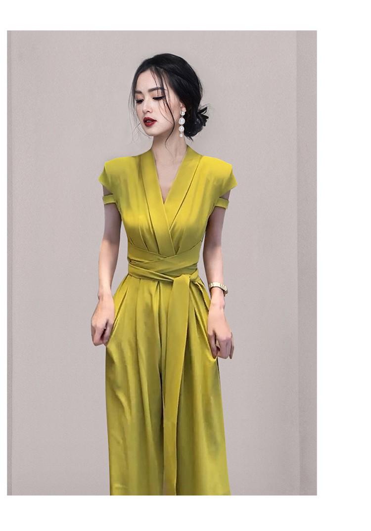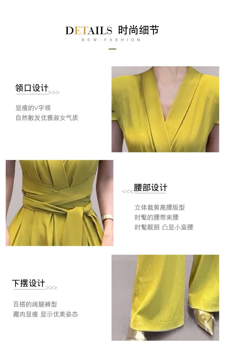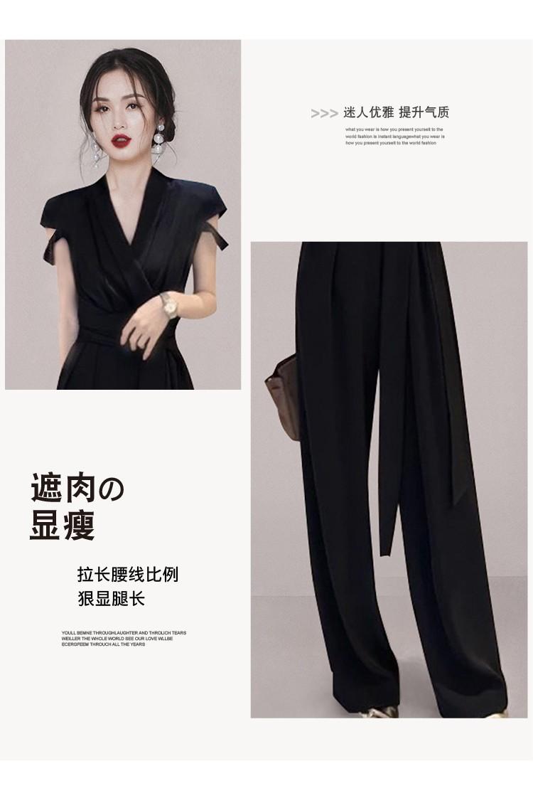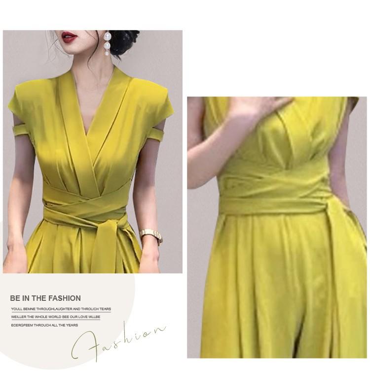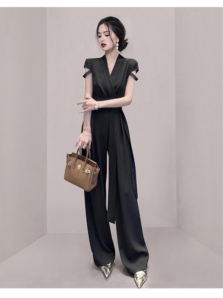 Celebridad Cuello en V Cintura Entallada, Capaz y Noble Pantalón de Pierna Ancha, Nuevo Estilo de Verano para Mujer Transfronterizo Monos de Pierna Ancha con Aspecto Adelgazante