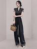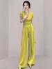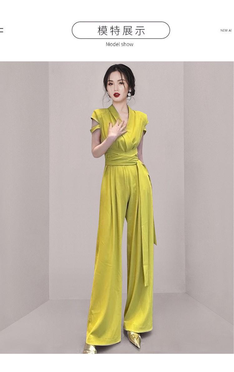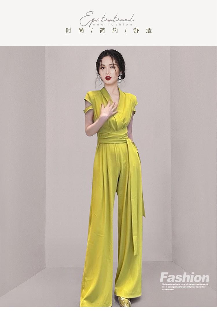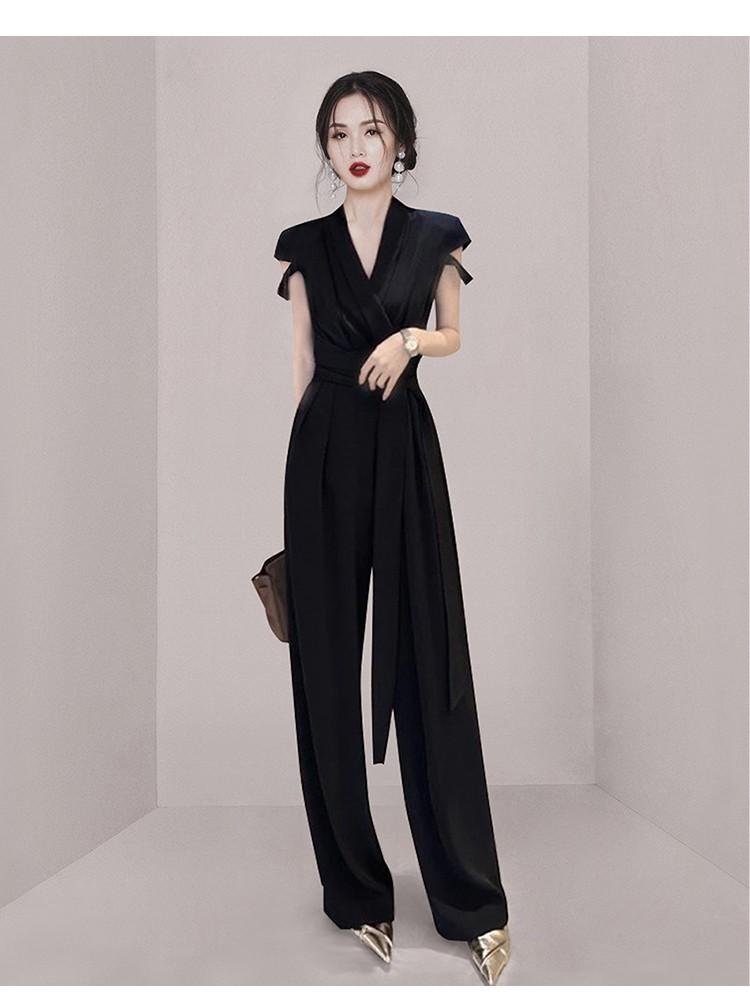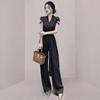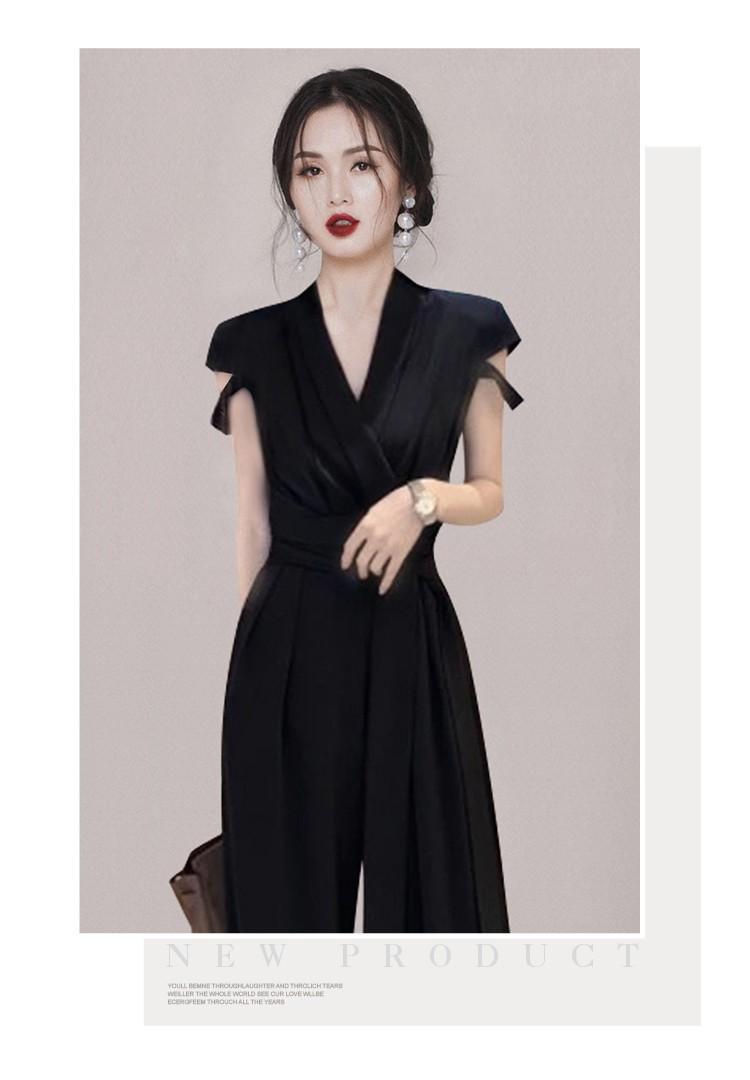 Celebridad Cuello en V Cintura Entallada, Capaz y Noble Pantalón de Pierna Ancha, Nuevo Estilo de Verano para Mujer Transfronterizo Monos de Pierna Ancha con Aspecto Adelgazante