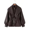 Suministro Transfronterizo Venta al por Mayor Ropa de Otoño Europea y Americana Estilo Europeo y Americano Solapa de Cuero PU Lavado Suelta Grande Chaqueta de Cuero Top de Mujer