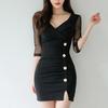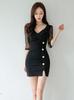 Vestido corto ajustado y sexy con escote en V y costuras de malla, nuevo estilo 2023, vestido elegante de moda para celebridades.