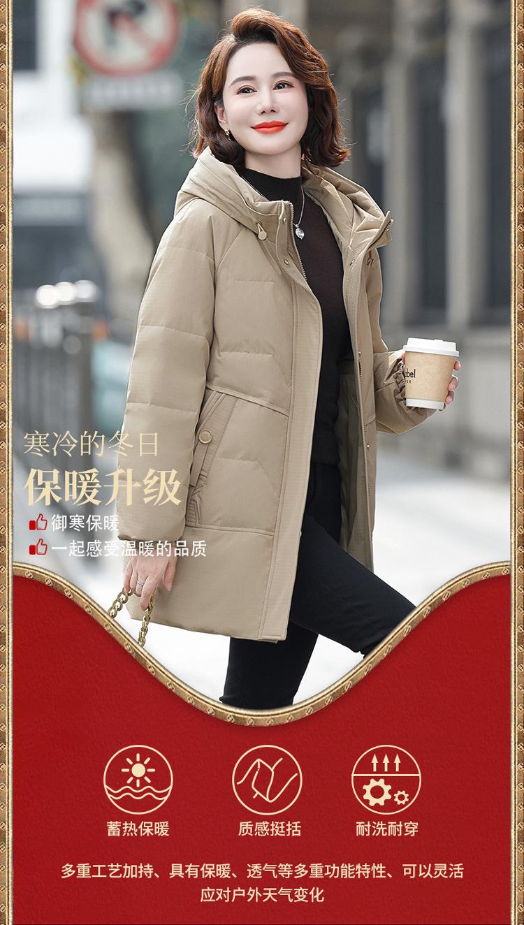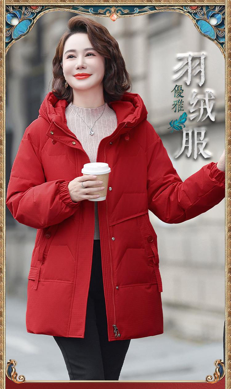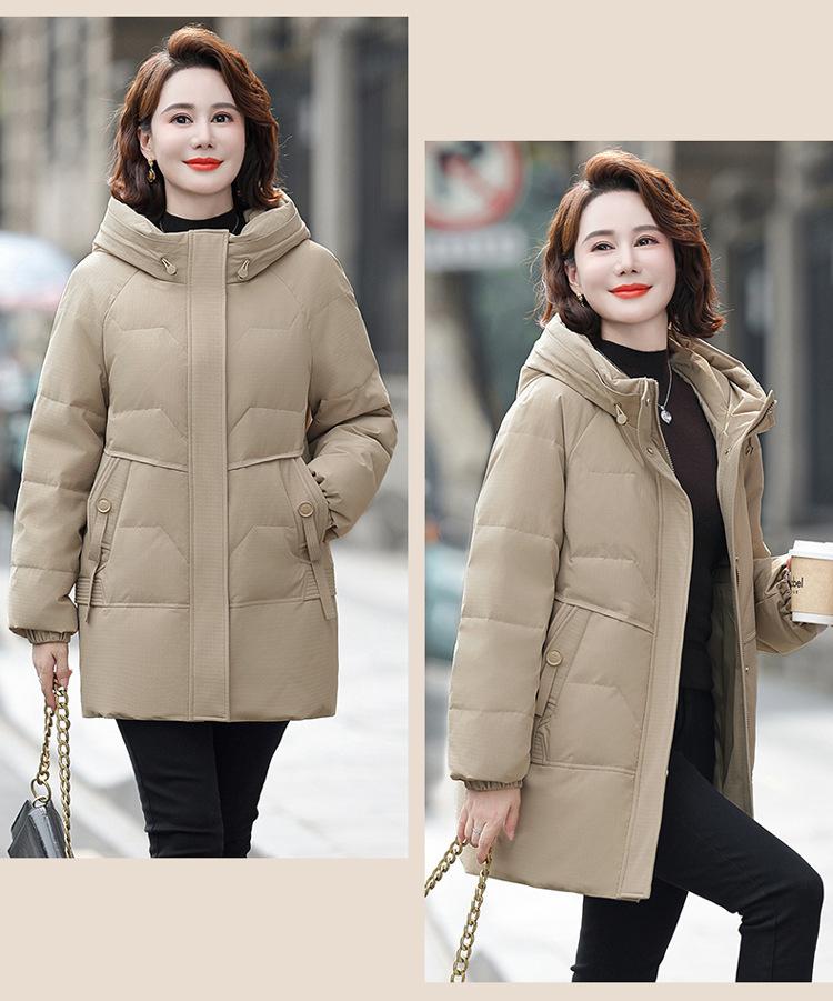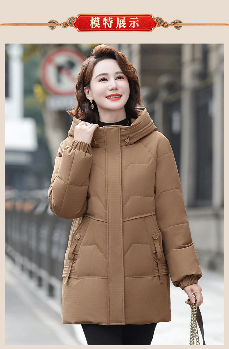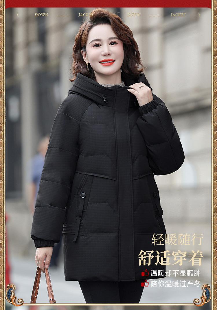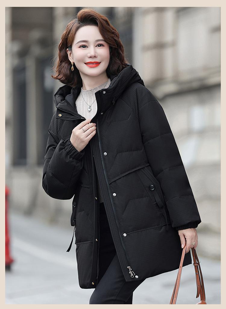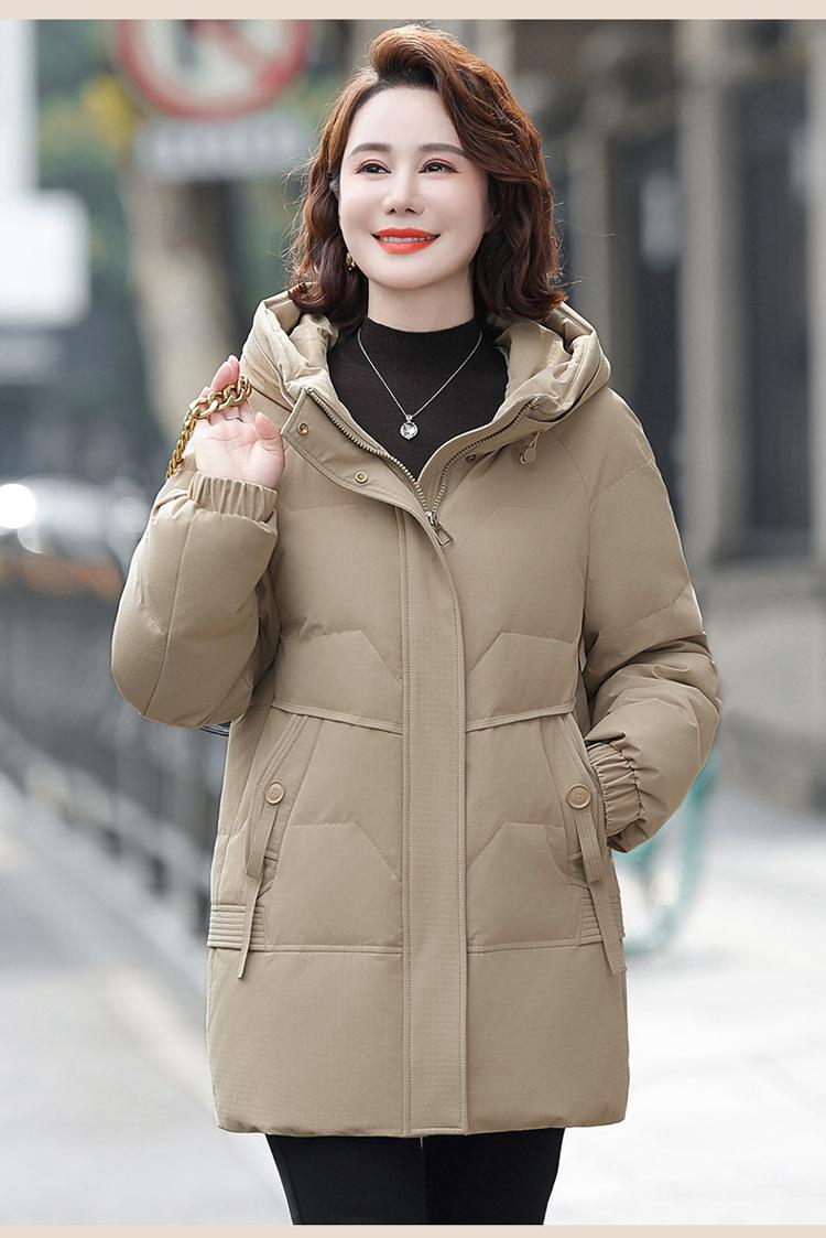 Abrigo de Moda Invierno 2024 Chaqueta de Plumón de Pato Blanco para Mujer Garantiza con Capucha Gruesa para Madres de Mediana Edad Cálida