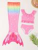 Traje de Baño Niñas Cola de Sirena Falda 3 Piezas Princesa Dividido Rendimiento Disfraz de Sirena