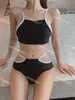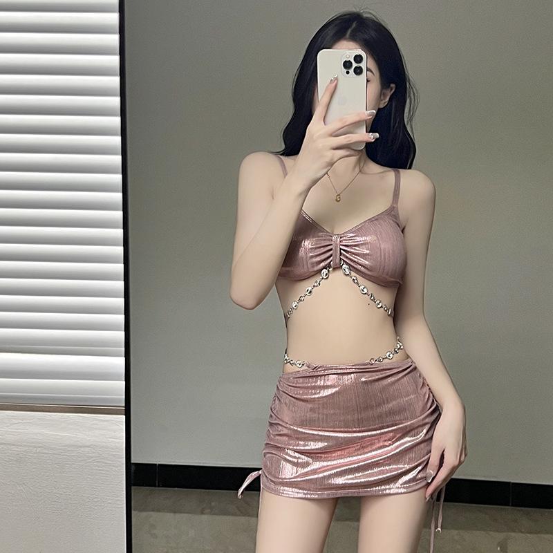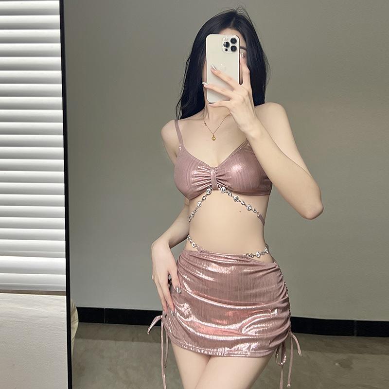 Temporada de aguas termales, nueva moda, Spice Girl, bikini dividido, cinturón fino para el hombro, cadena en la cintura, traje de baño sexy adelgazante de aguas termales