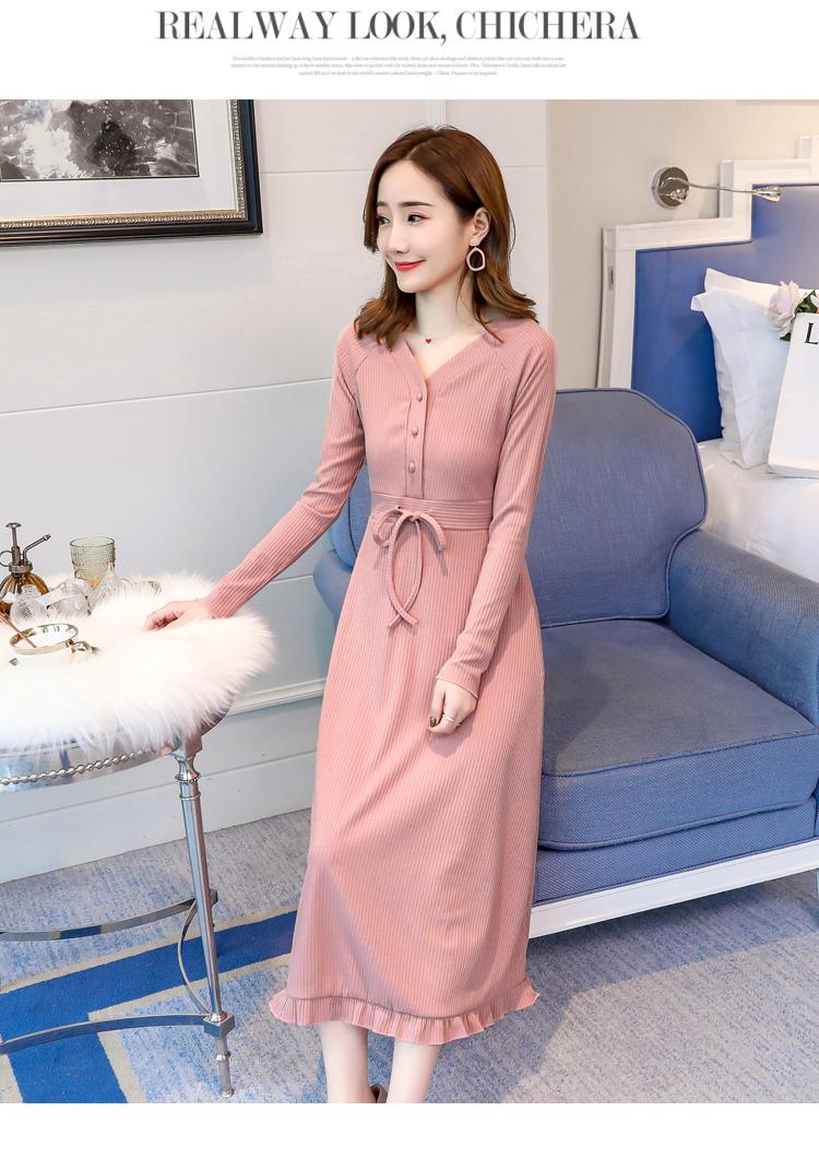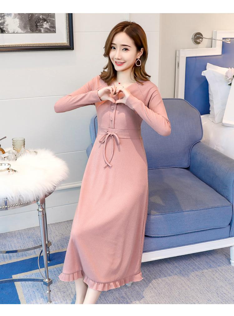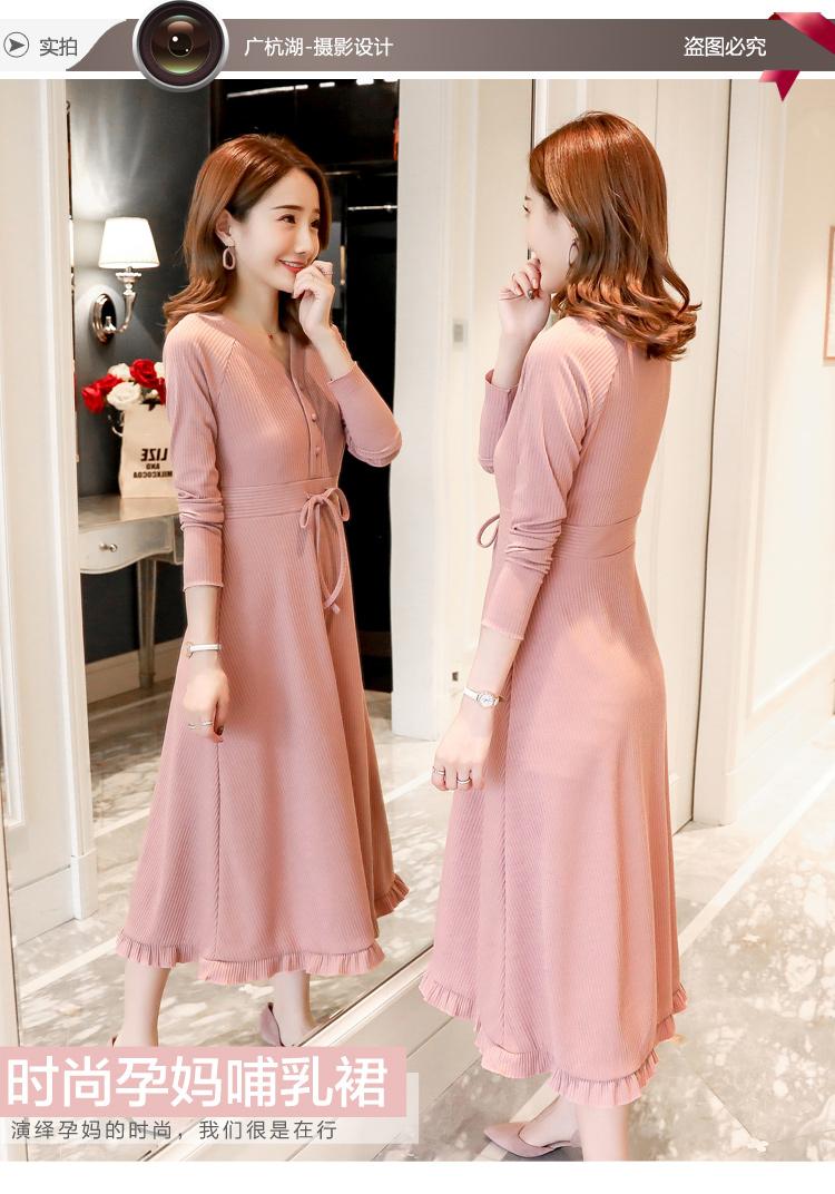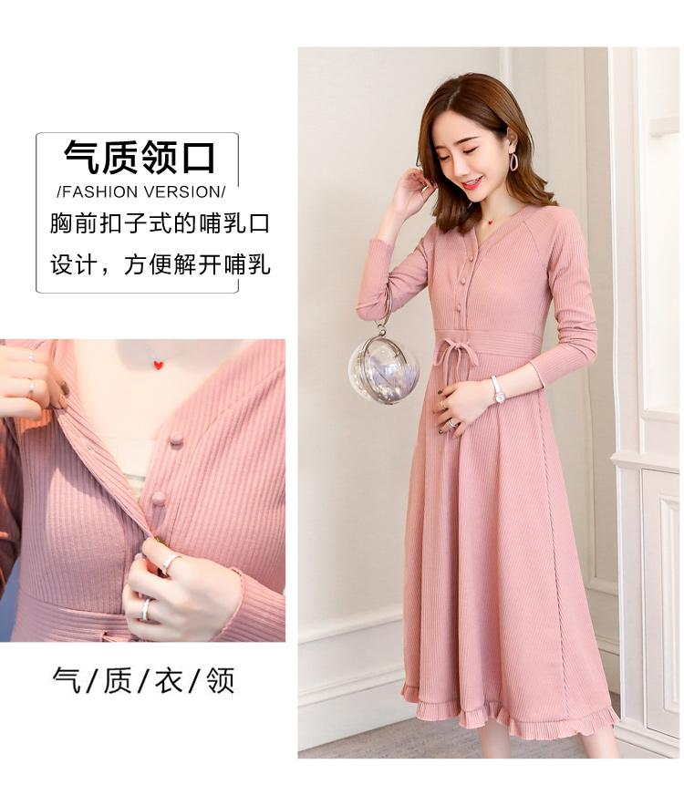 Maternidad 2022 Otoño e Invierno Nuevo Vestido de Lactancia de Punto de Manga Larga Coreano para Mujeres Embarazadas