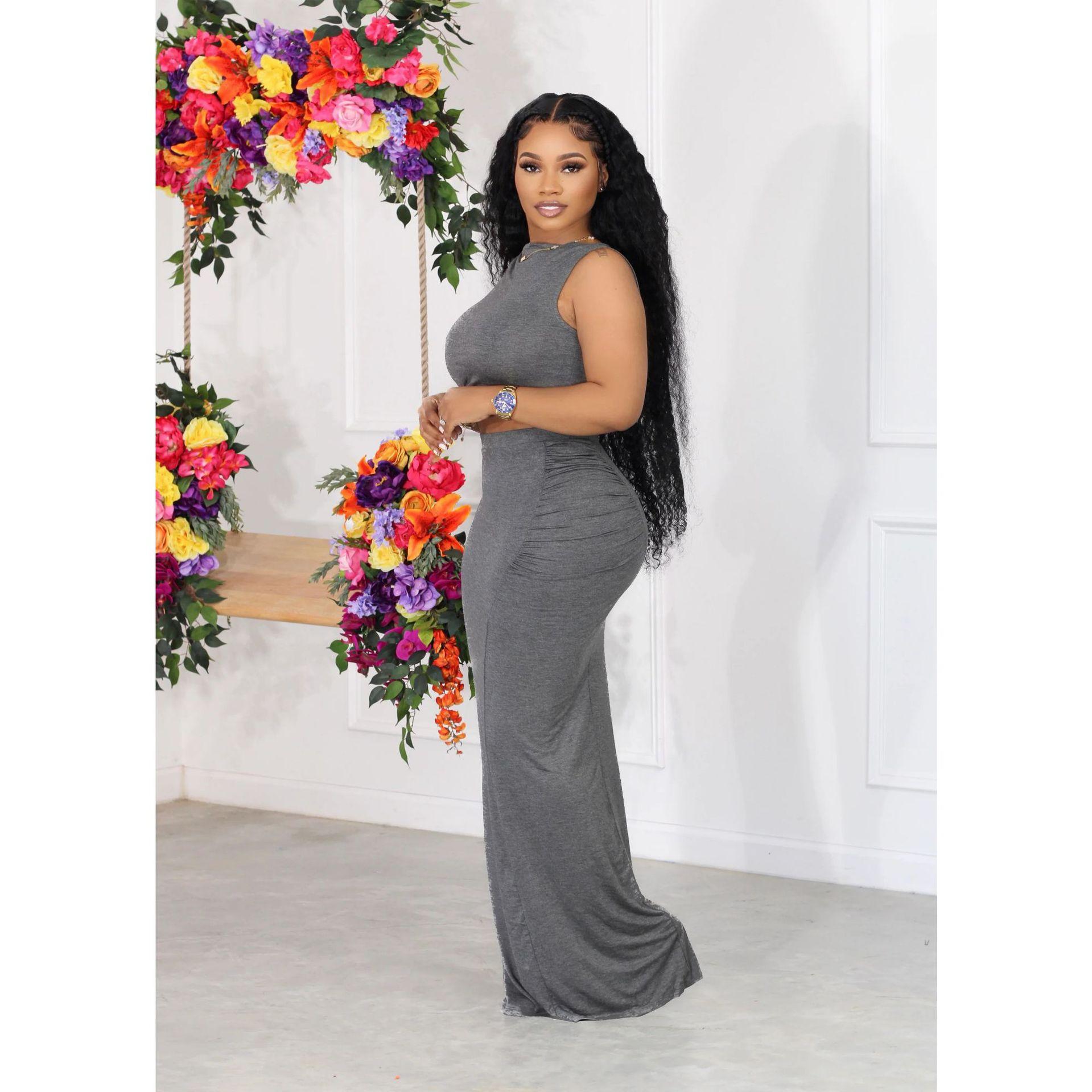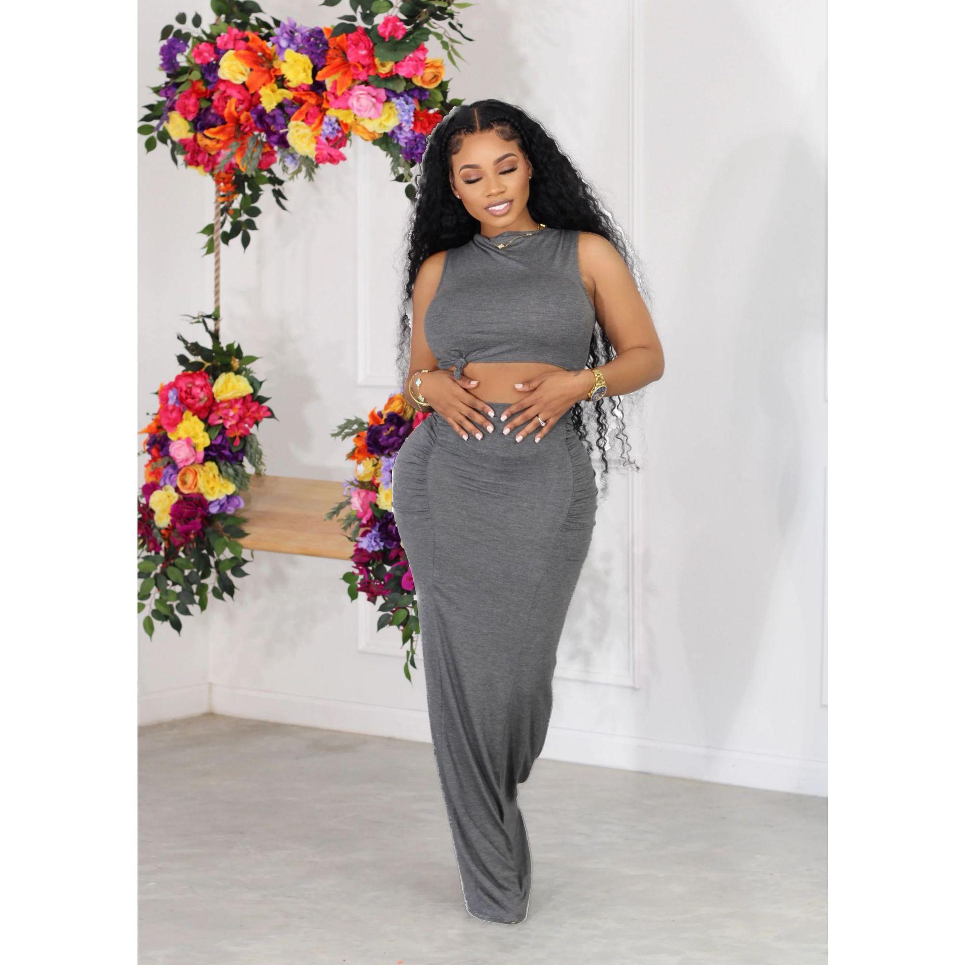 Falda larga de dos piezas sin mangas para mujer, estilo europeo y americano, estilo verano 2024