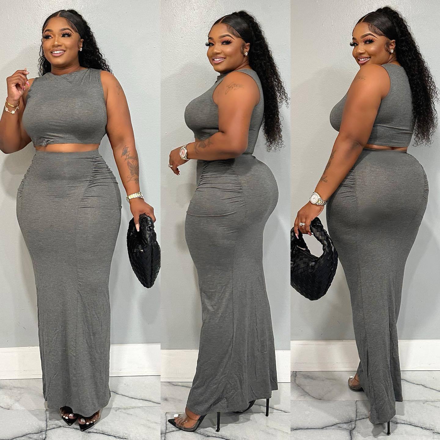 Gray top in stock, Gray skirt in stock
