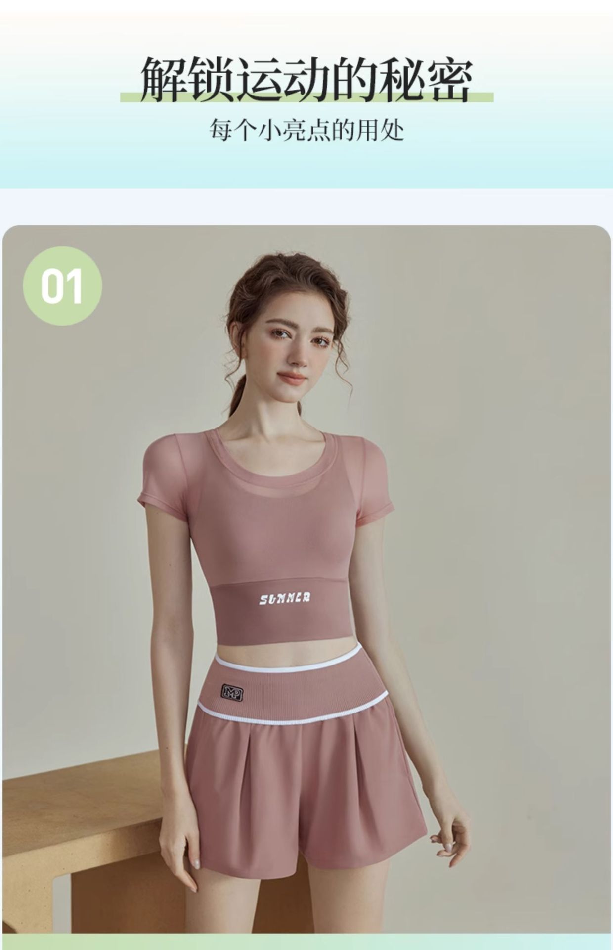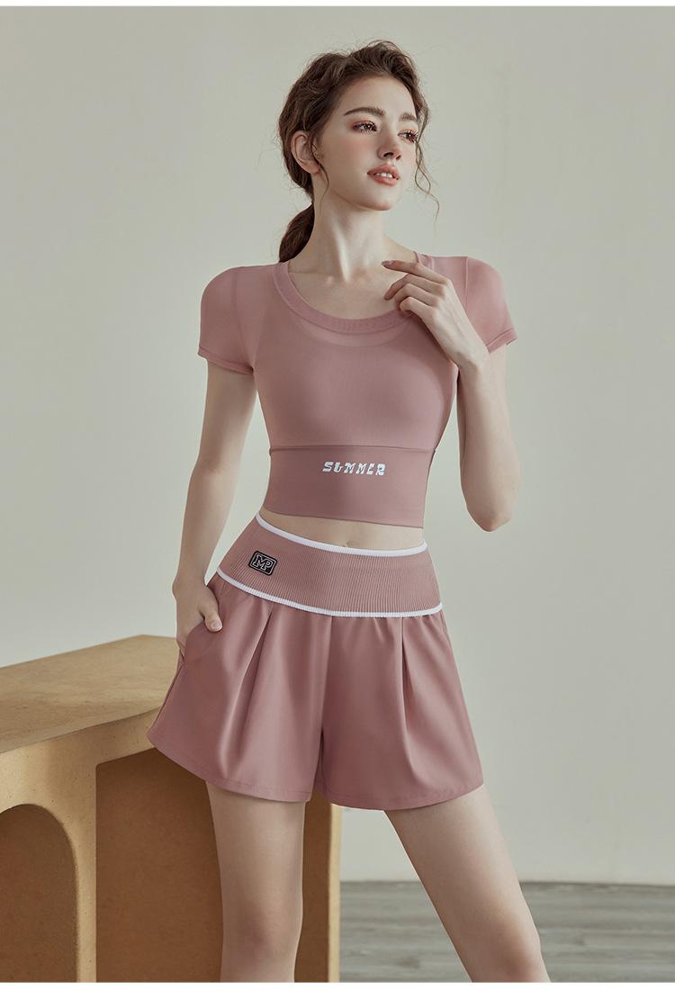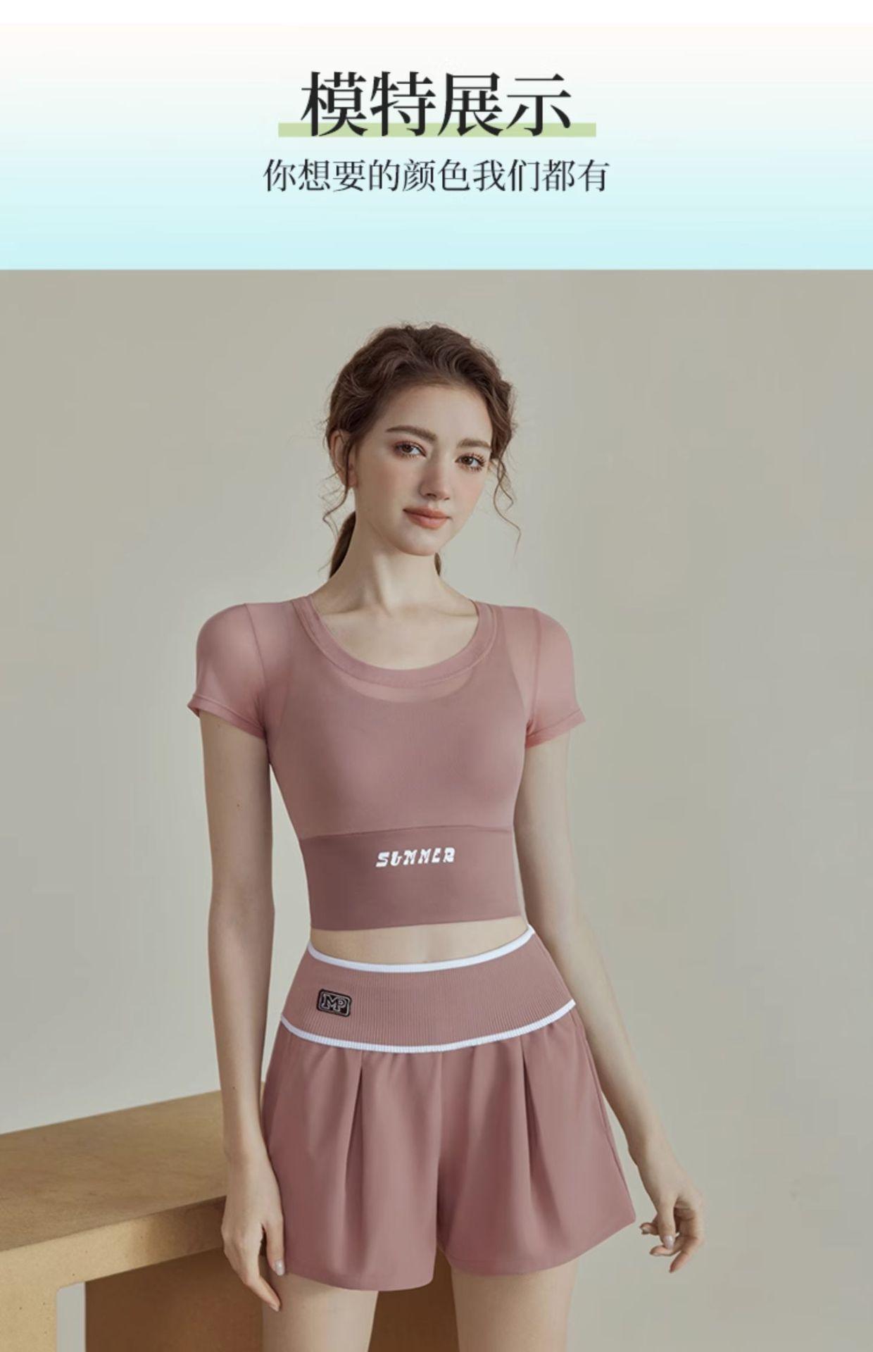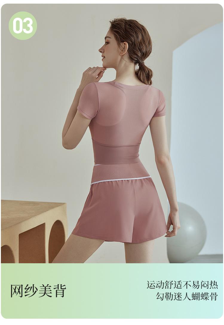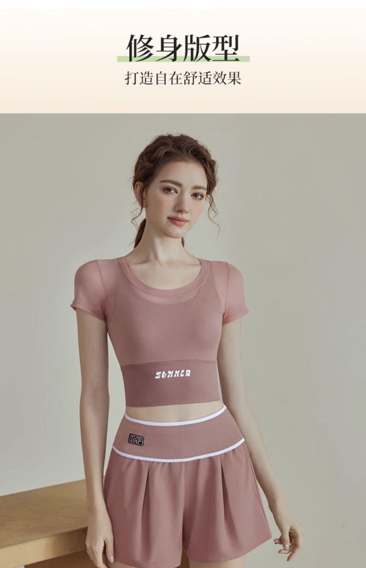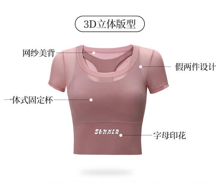 Ropa de Yoga para Mujer 2025 Verano Nuevo Tops Transpirables de Manga Corta Entrenamiento de Pilates Running Falso de Dos Piezas Ropa Deportiva Fitness