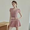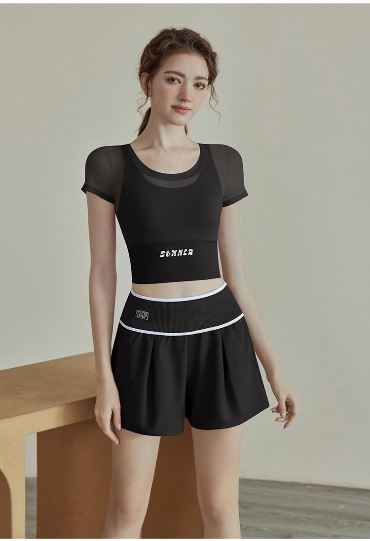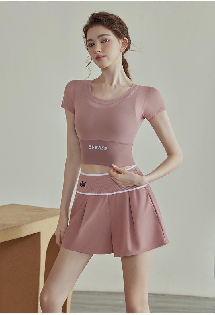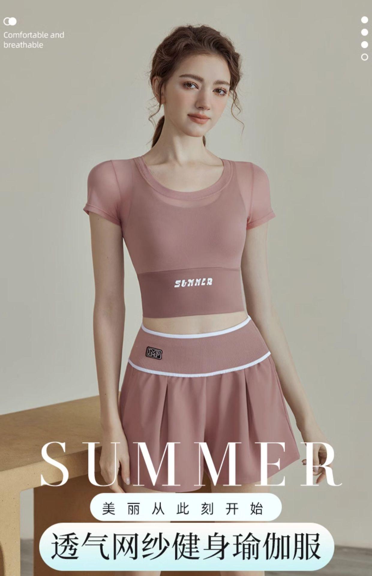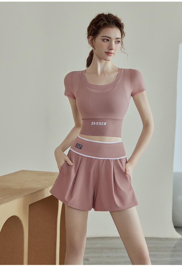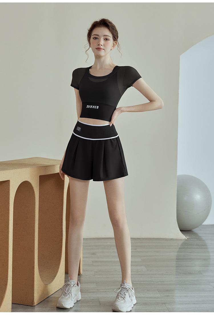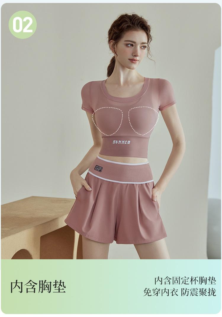 Ropa de Yoga para Mujer 2025 Verano Nuevo Tops Transpirables de Manga Corta Entrenamiento de Pilates Running Falso de Dos Piezas Ropa Deportiva Fitness