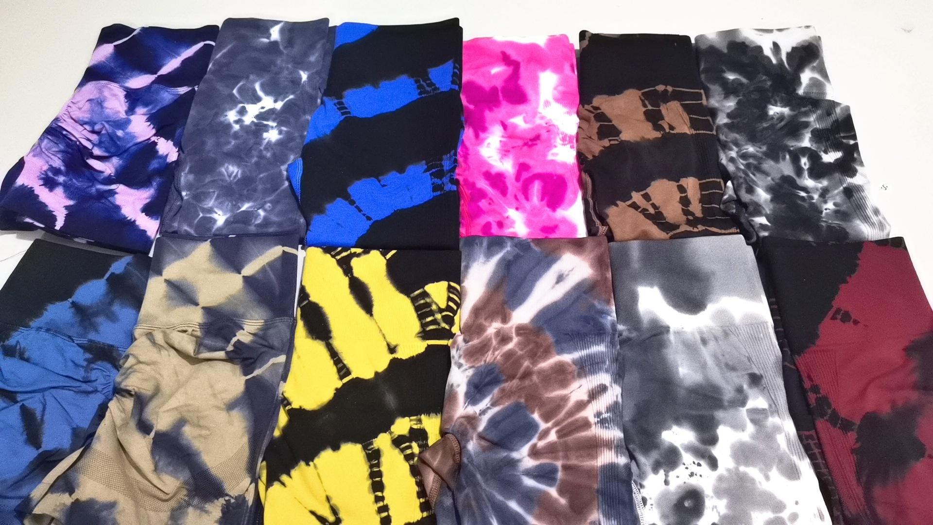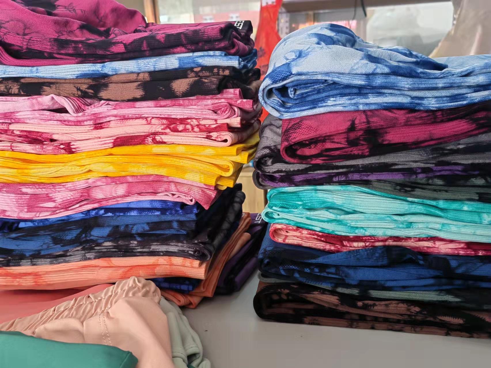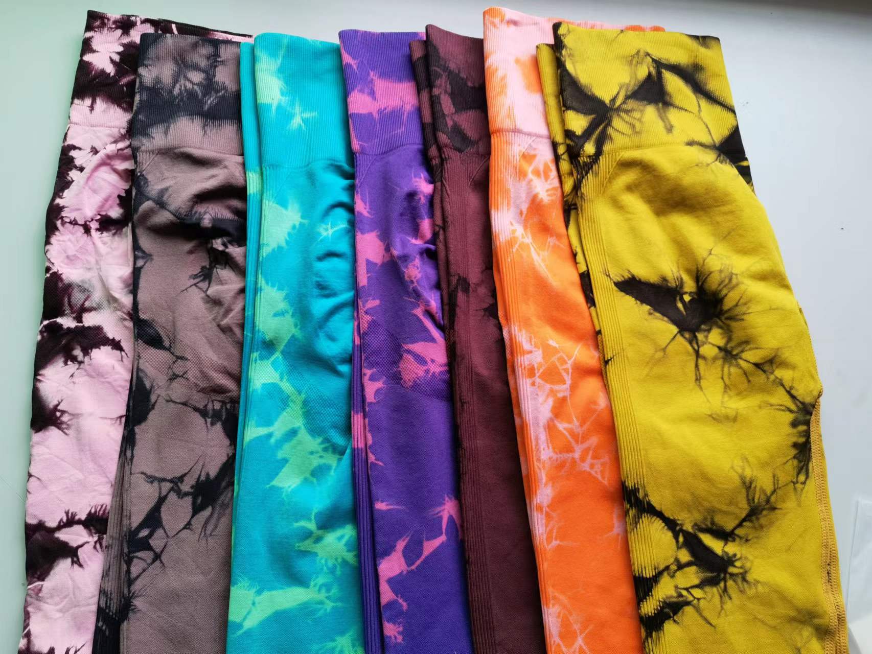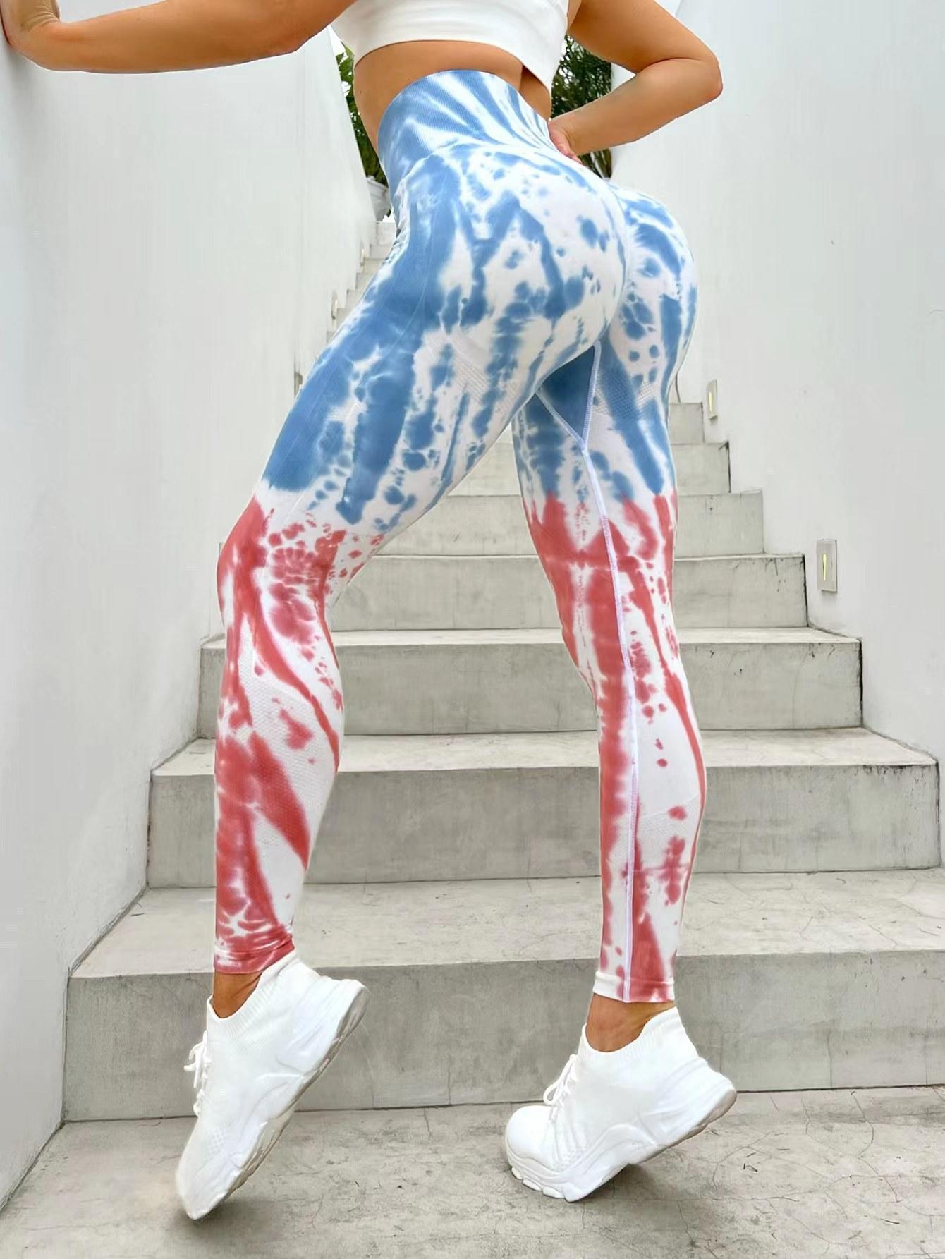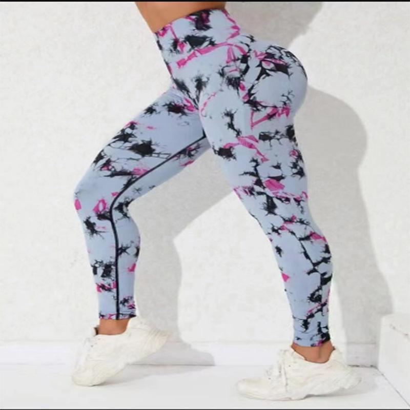 Pantalones de yoga fitness sin costuras transfronterizos europeos y americanos para mujer, pantalones deportivos tie-dye, pantalones flotantes, mallas elásticas realzadoras de cadera, nuevos