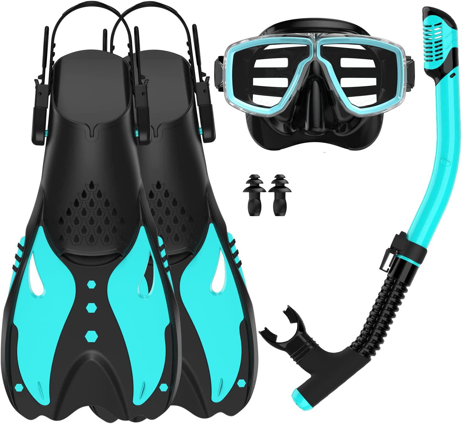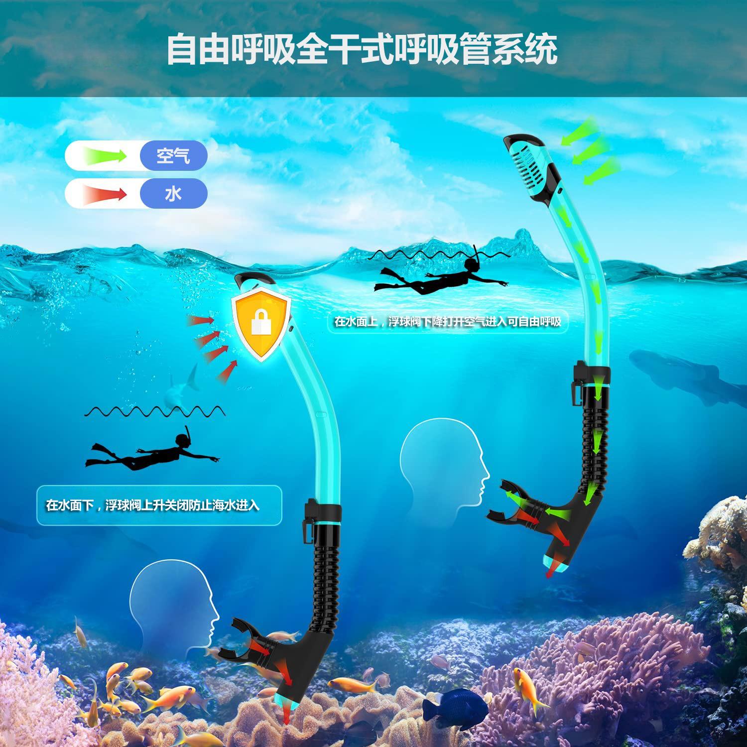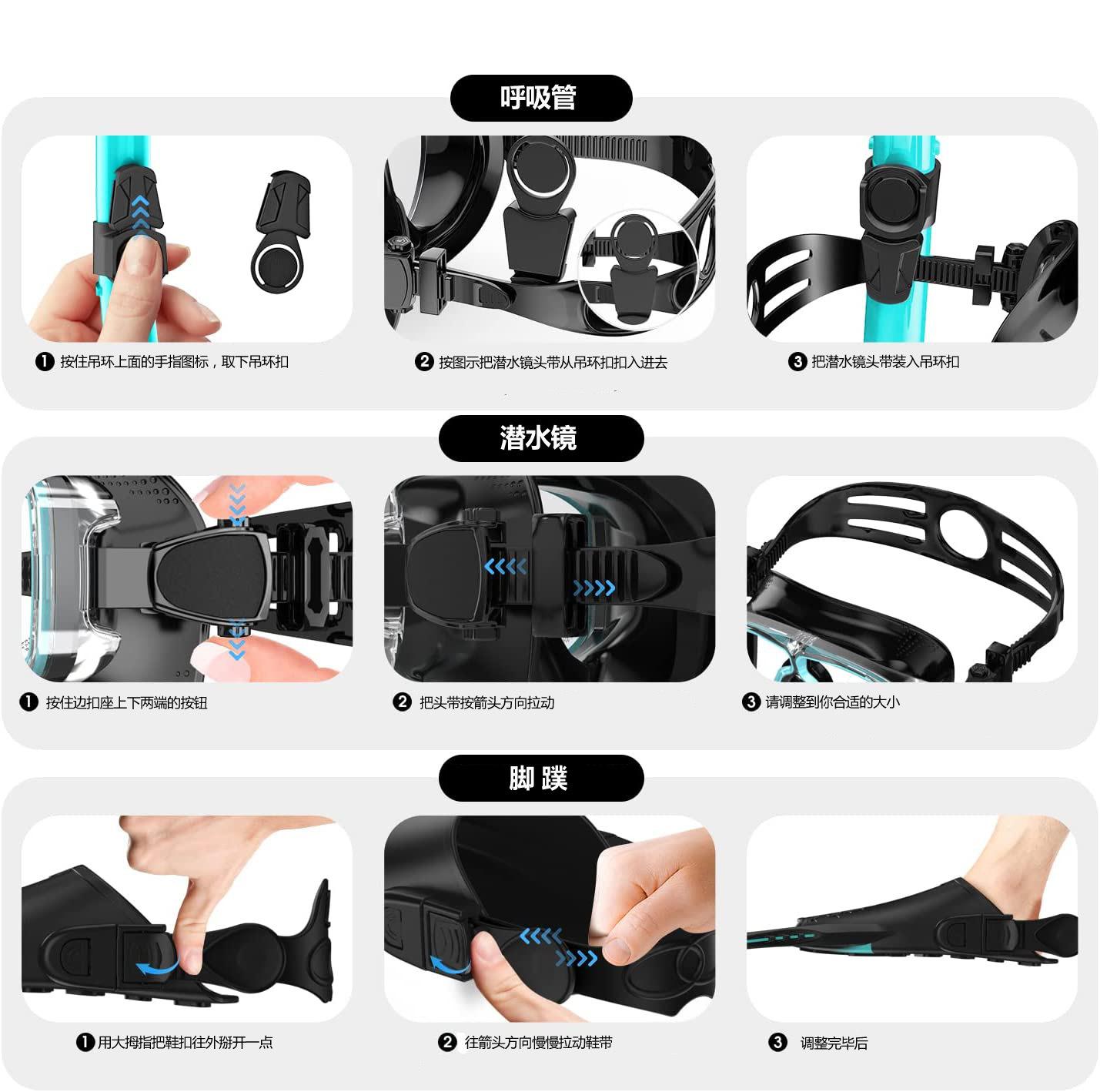 Set de Snorkel Adulto Gafas de Buceo de Vidrio Templado Aletas Máscara de Snorkel Snorkel Totalmente Seco Set de Snorkel de Tres Piezas