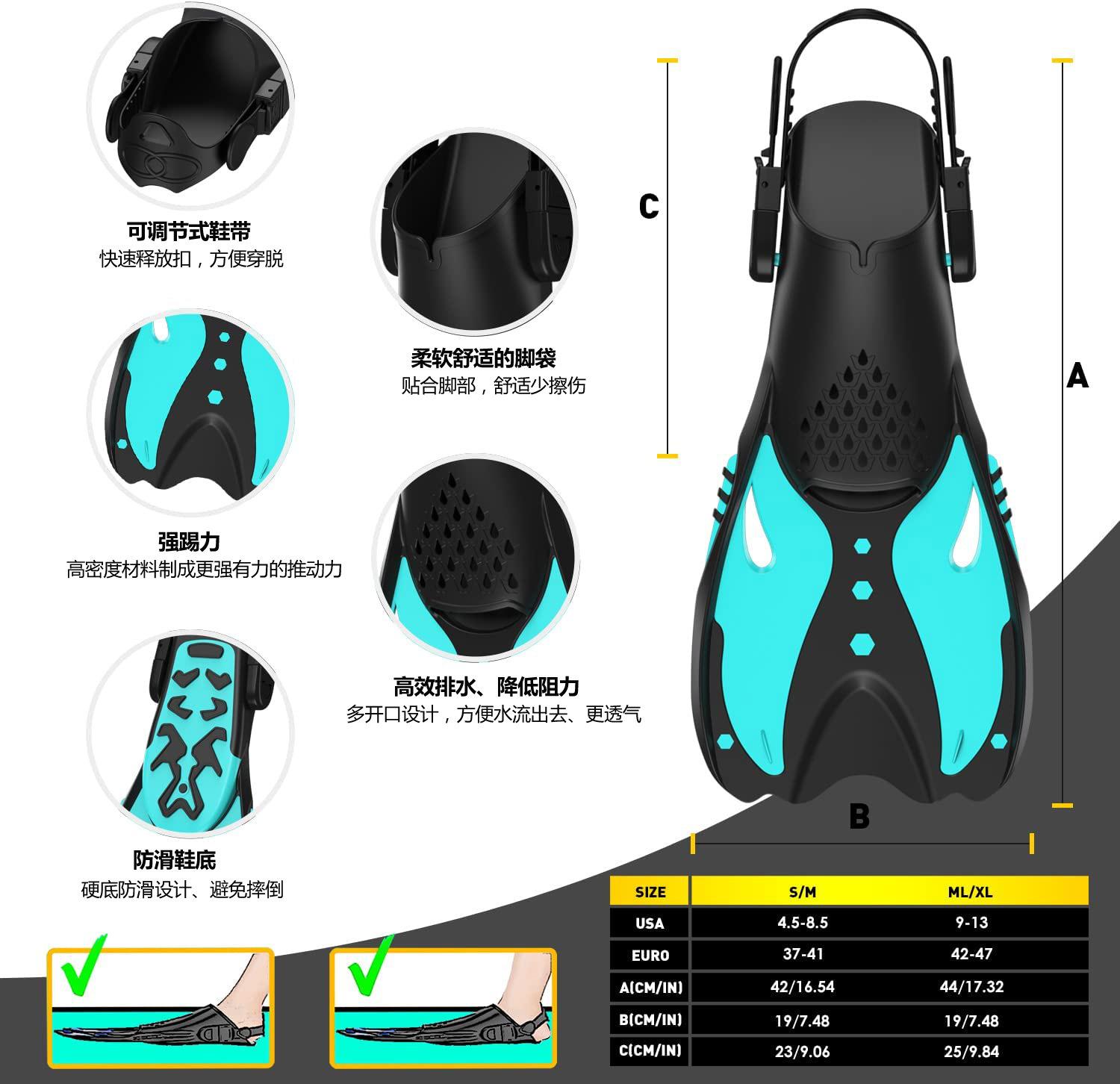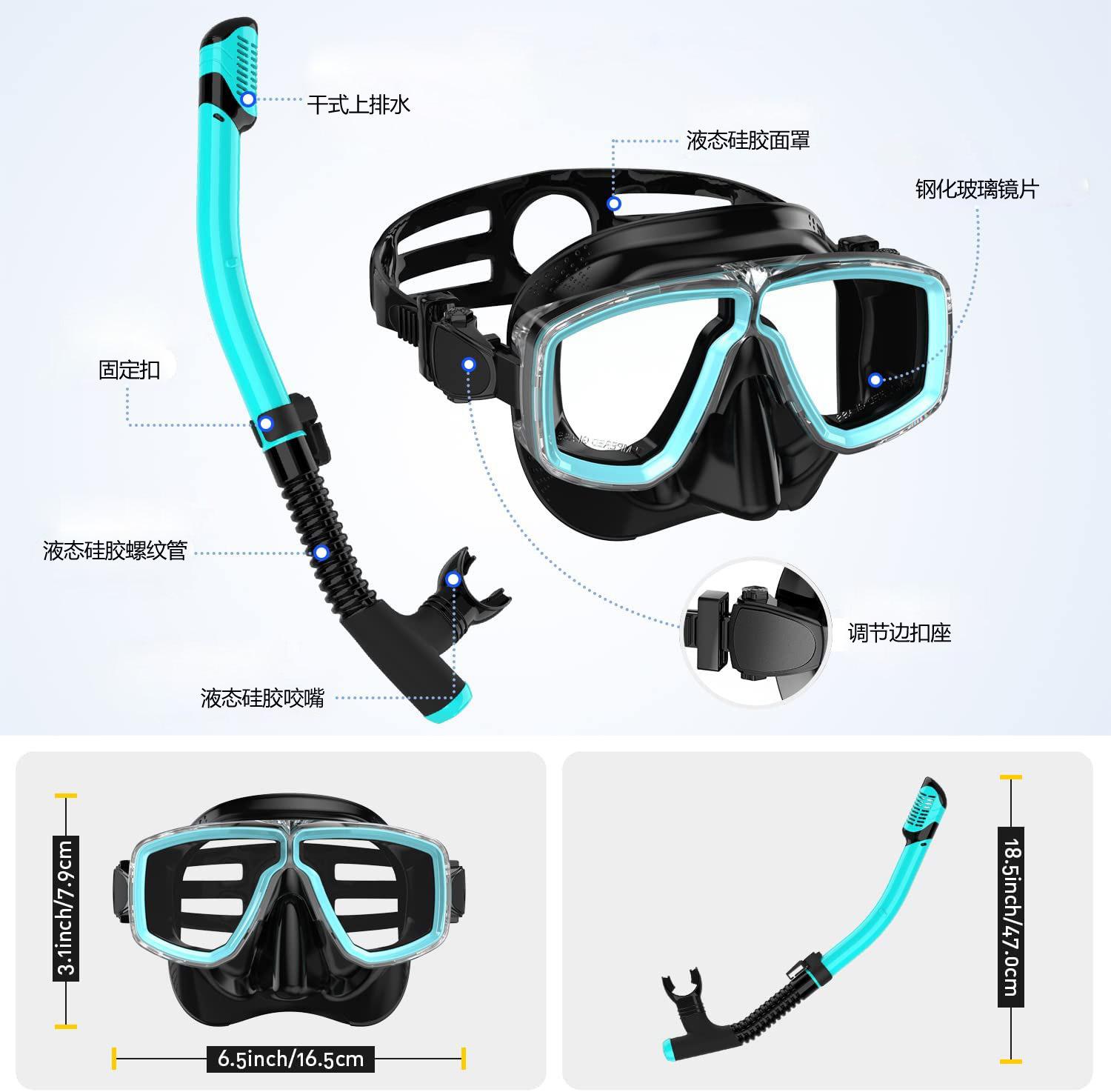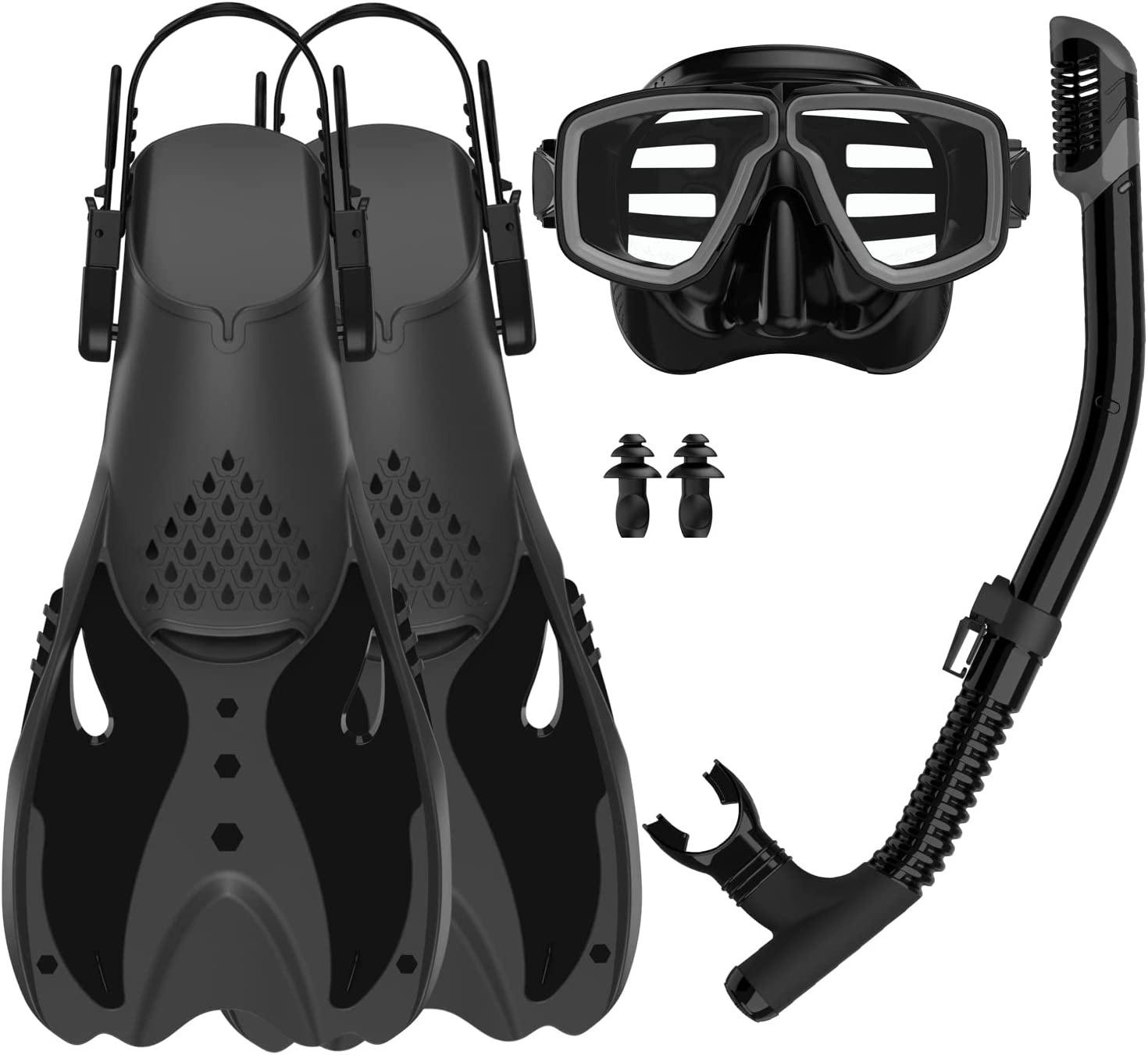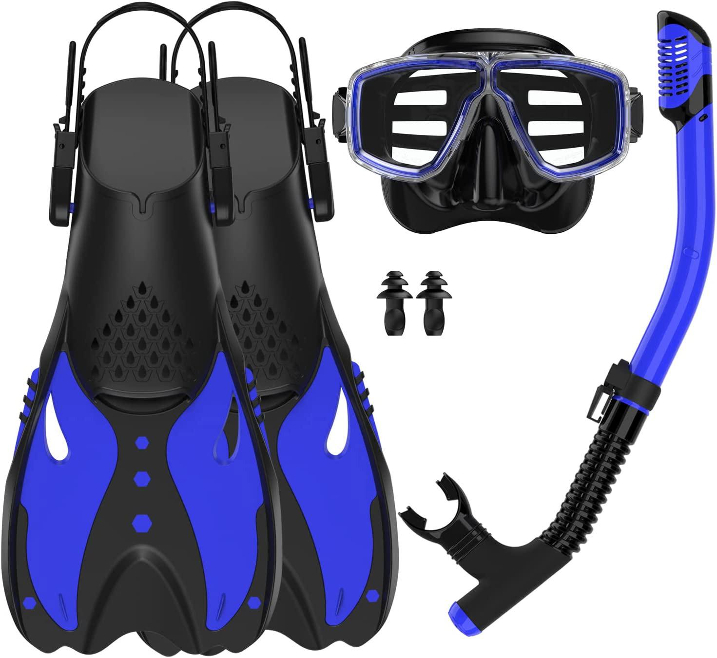 Set de Snorkel Adulto Gafas de Buceo de Vidrio Templado Aletas Máscara de Snorkel Snorkel Totalmente Seco Set de Snorkel de Tres Piezas