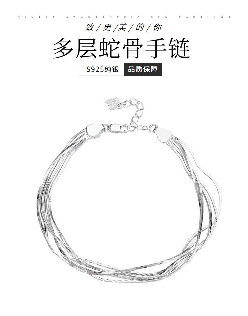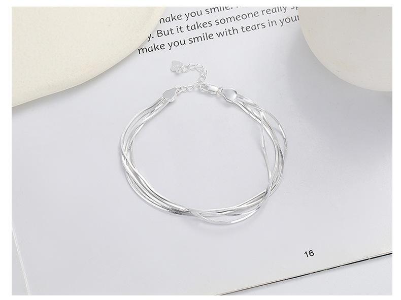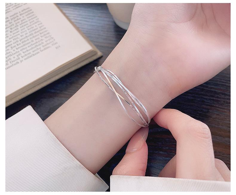 Yunchao Xuan Plata S925 Pulsera de Moda Elegante Multicapa Tridimensional de Hueso de Serpiente Simple Estilo Frío ins Distintivo Estilo Celebridad de Internet