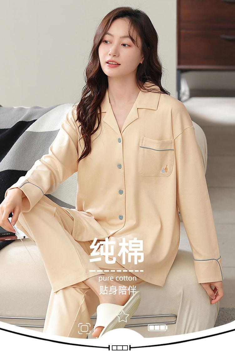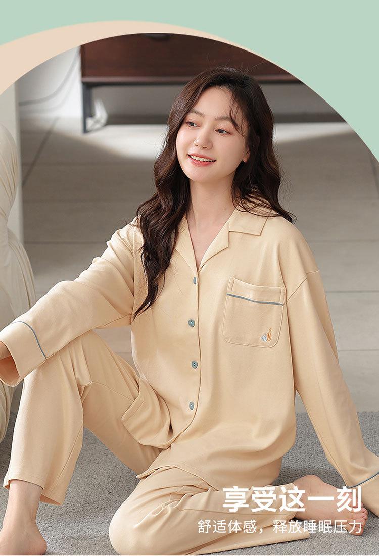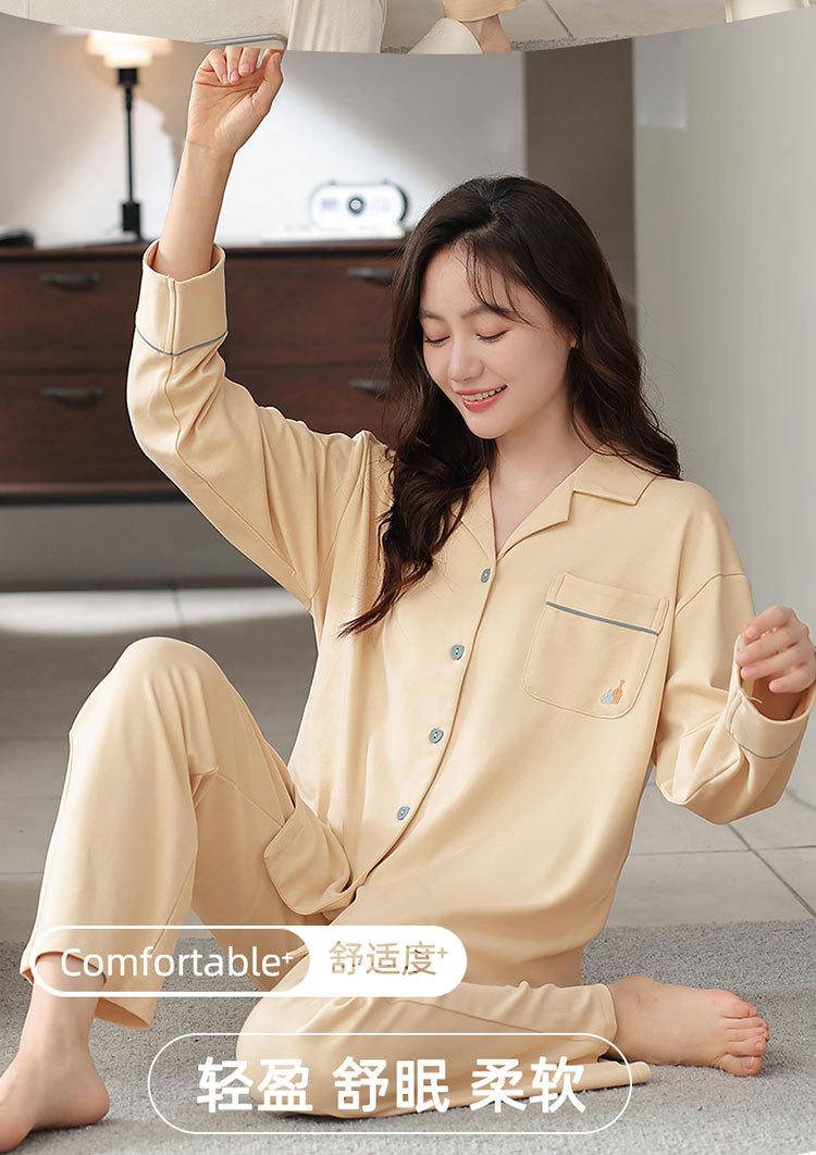 Pijama de otoño para mujer, cárdigan fino de manga larga de alta gama, de algodón de color liso, ropa para el hogar, ropa exterior de primavera y verano.
