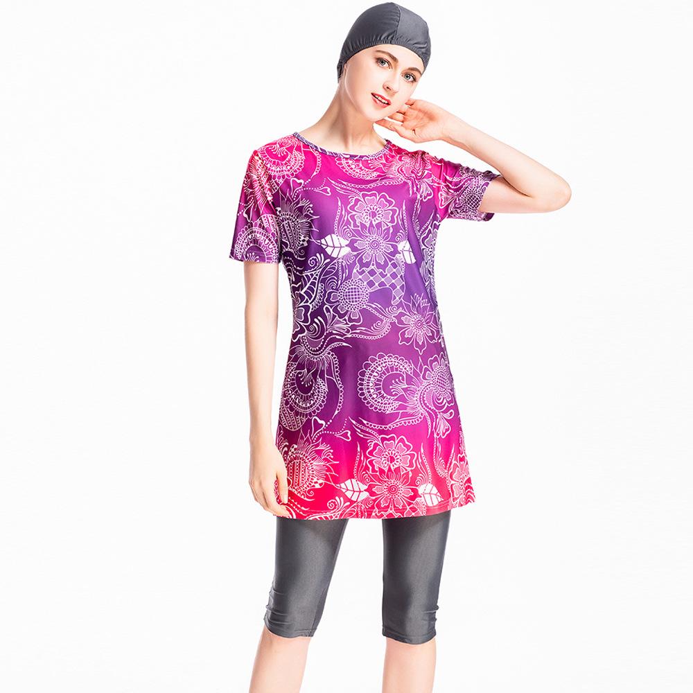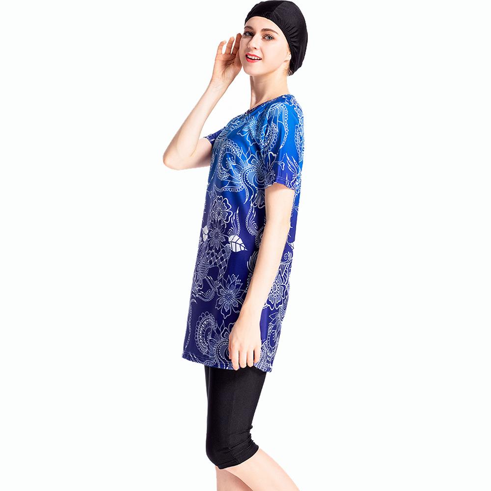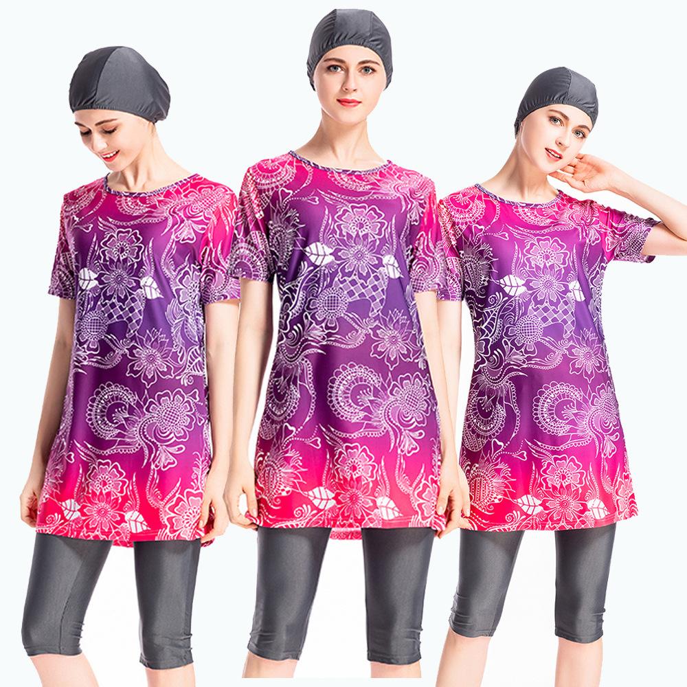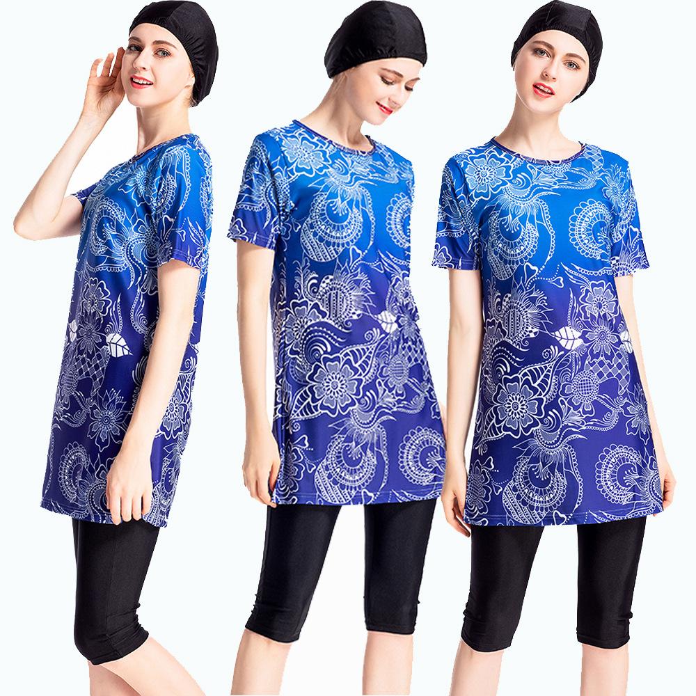 Traje de Baño Nuevo de Lunares Árabes Hui 2022 Traje de Baño de Tres Piezas de Manga Corta L083 Moderno Protección Solar Aspecto Adelgazante