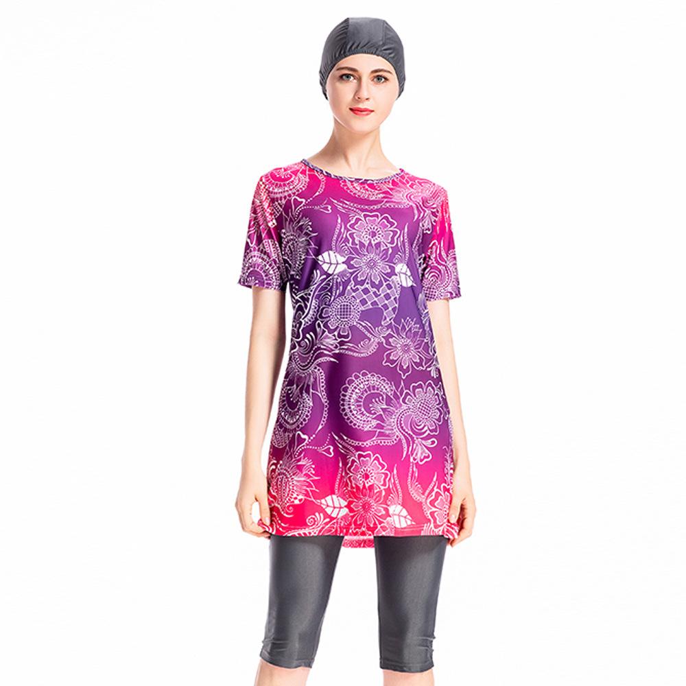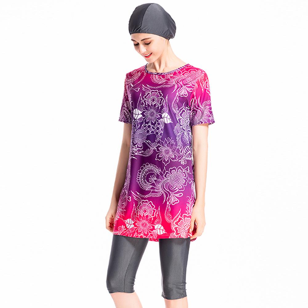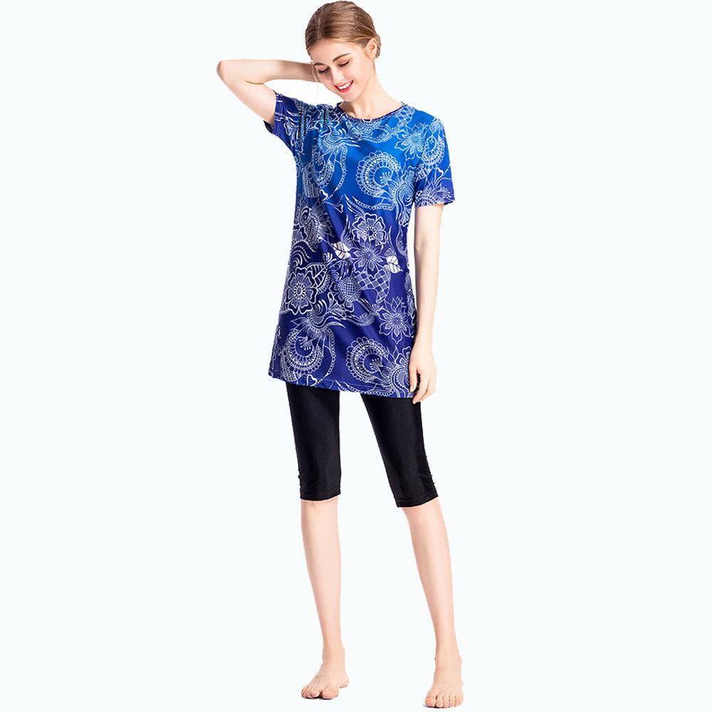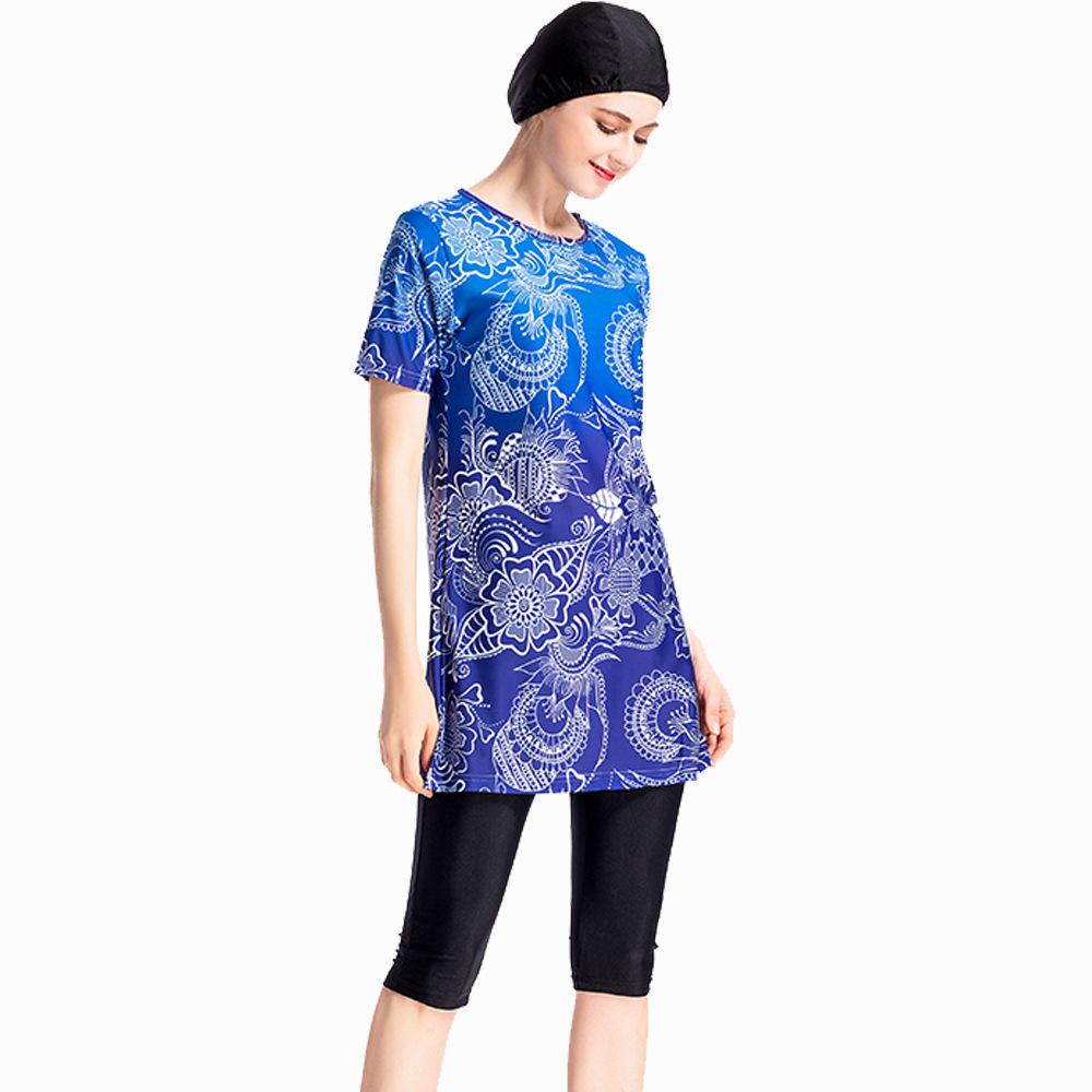 Traje de Baño Nuevo de Lunares Árabes Hui 2022 Traje de Baño de Tres Piezas de Manga Corta L083 Moderno Protección Solar Aspecto Adelgazante