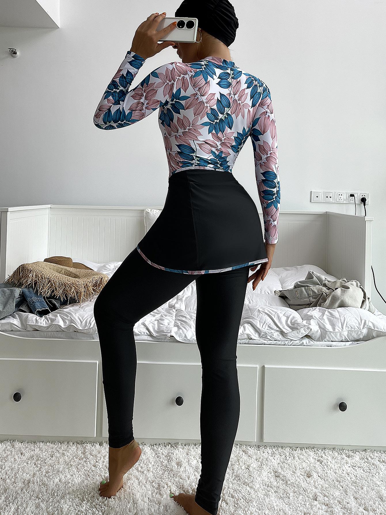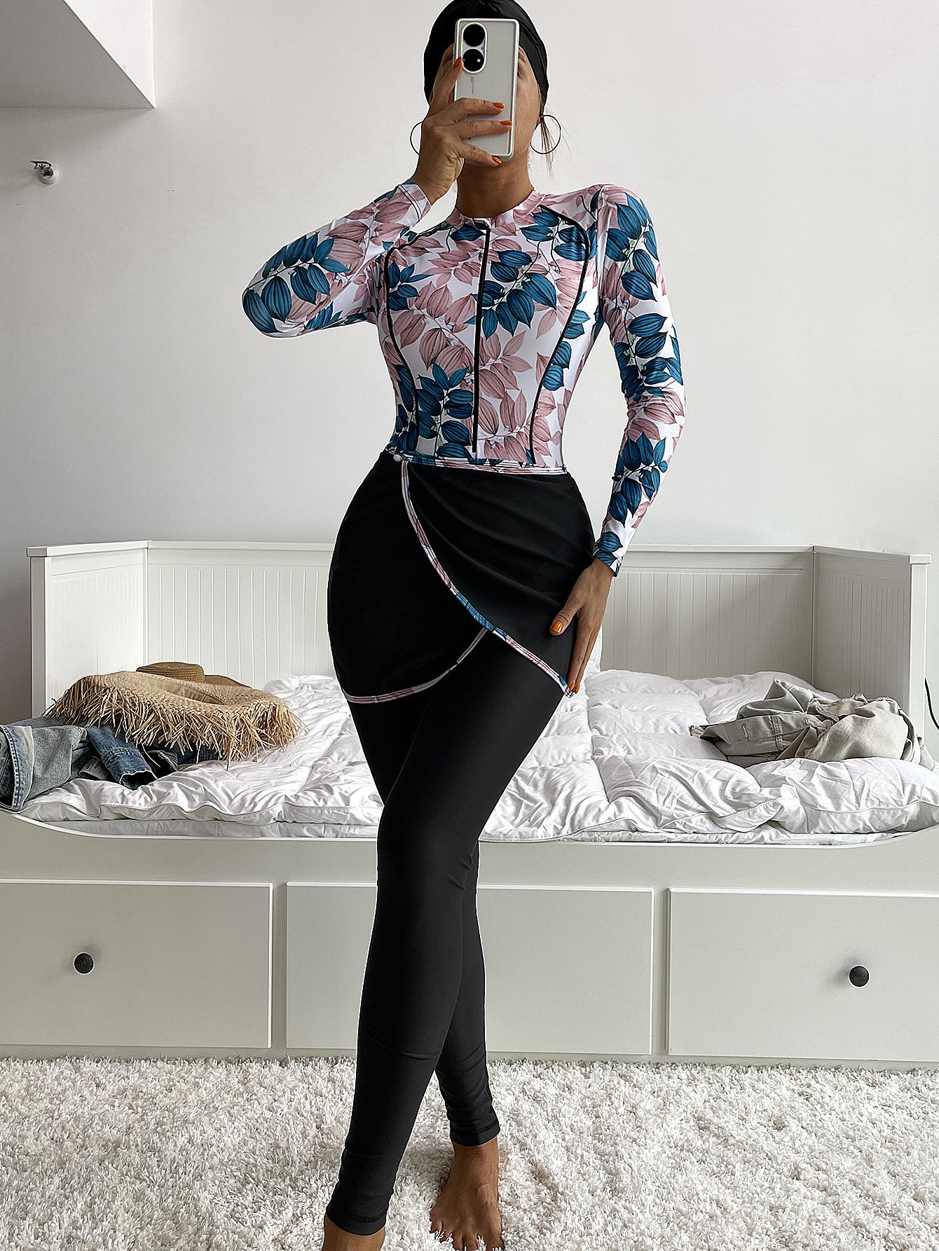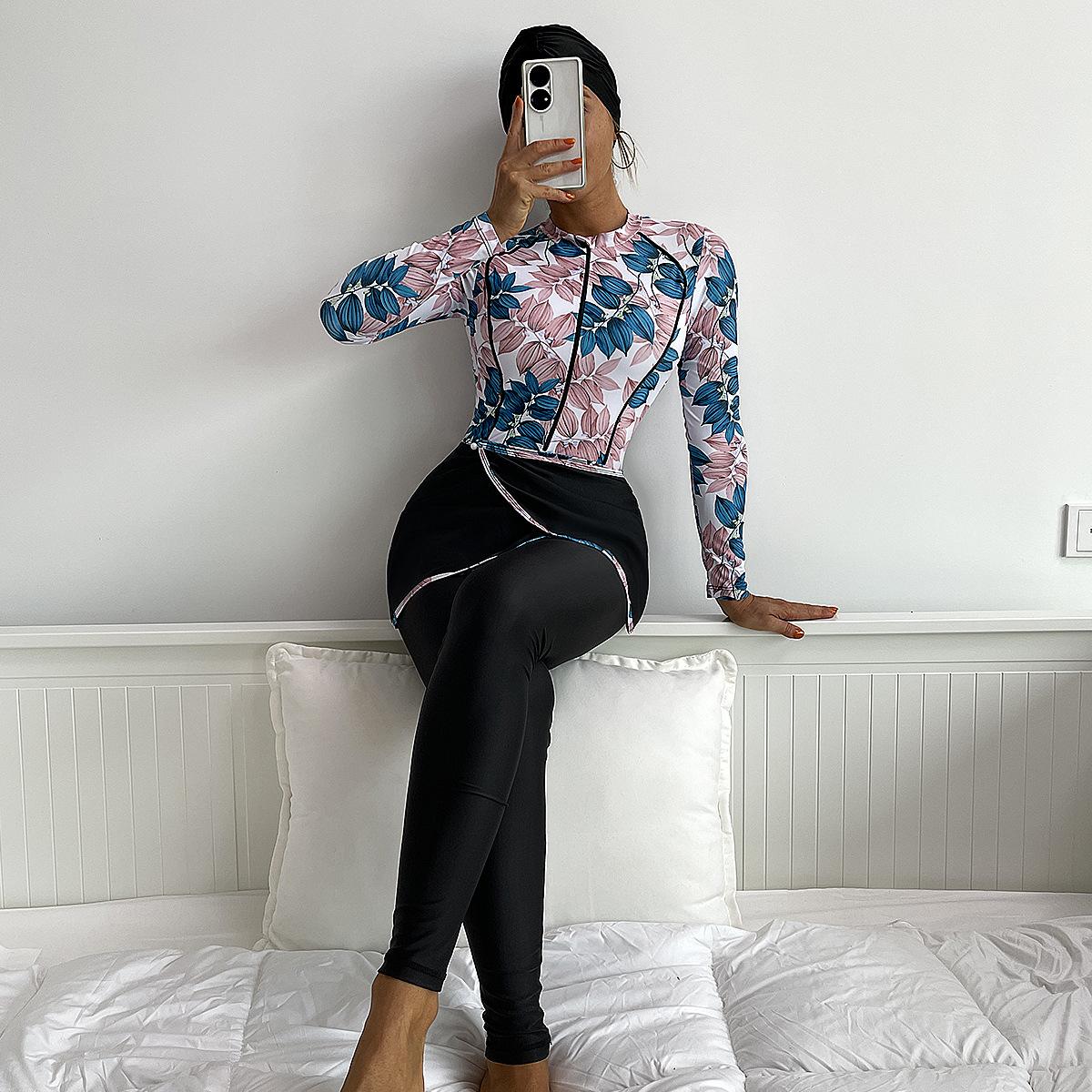 Traje de Baño Musulmán Nuevo Transfronterizo 2024 Traje de Protección Solar de Manga Larga Ajustado Sexy Vacaciones en la Playa Ropa de Baño Casual