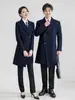 Abrigo de lana nuevo de otoño e invierno para hombre, abrigo de lana cruzado de longitud media, abrigo de lana, gabardina