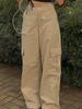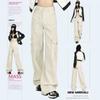 Pantalones vaqueros de trabajo multibolsillos color albaricoque para mujer, primavera y otoño, nuevos, de cintura alta, sueltos, de pierna ancha, ajustados, combinables, casuales, a la moda