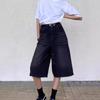 Pantalones cortos negros de trabajo de pierna ancha para mujer, pantalones de verano finos, pequeños, casuales, de longitud media, holgados, de línea A, pantalones deportivos de cinco puntos