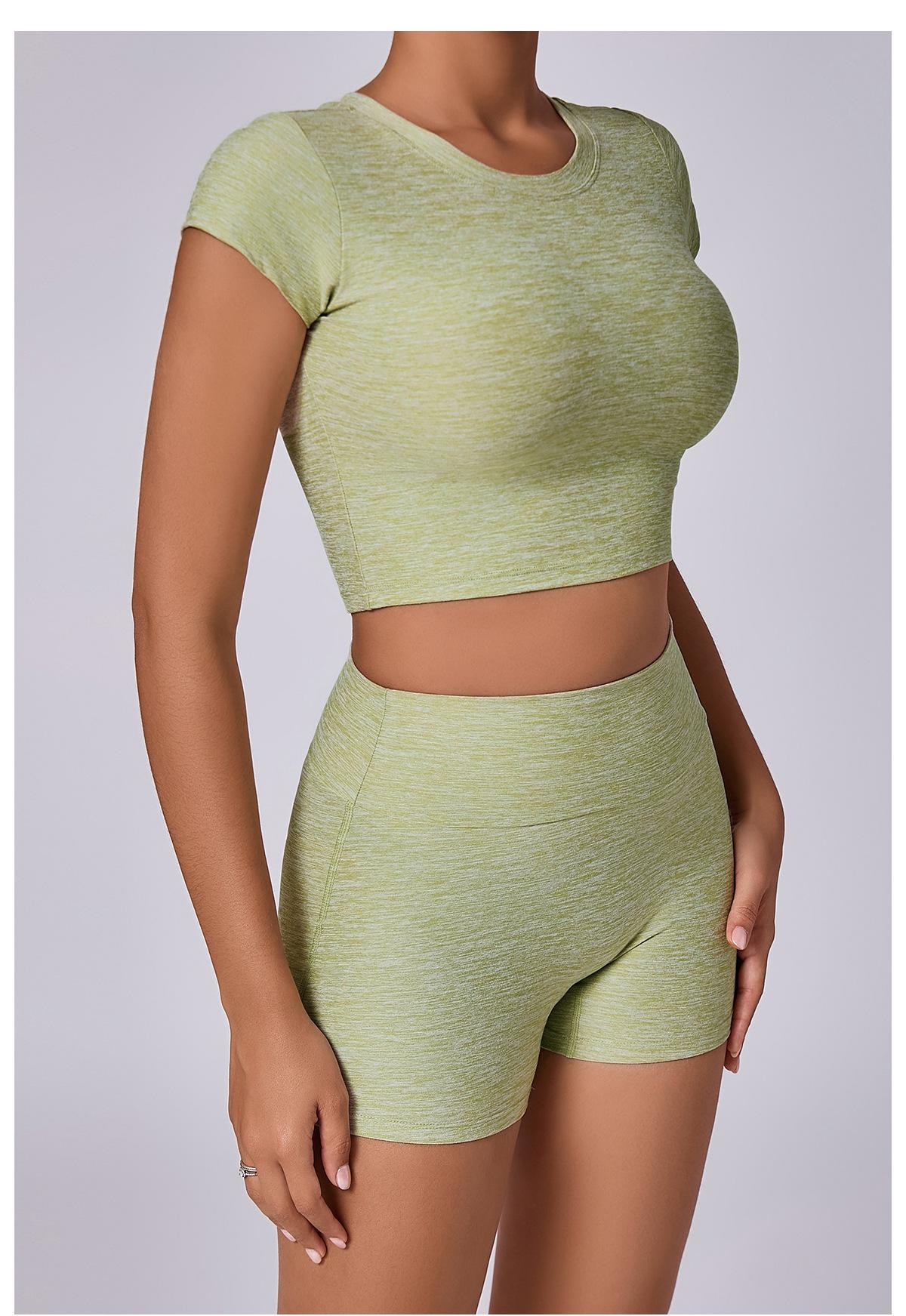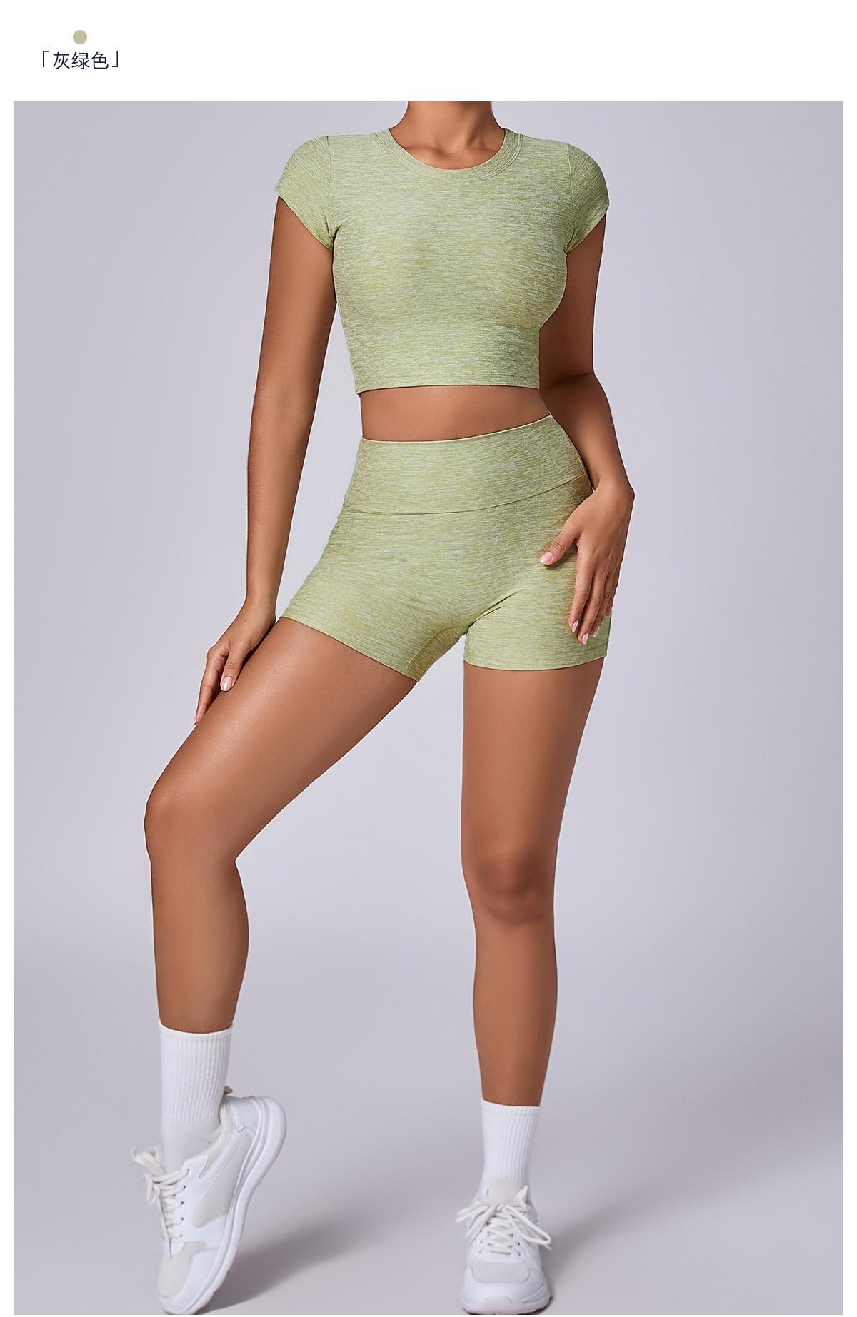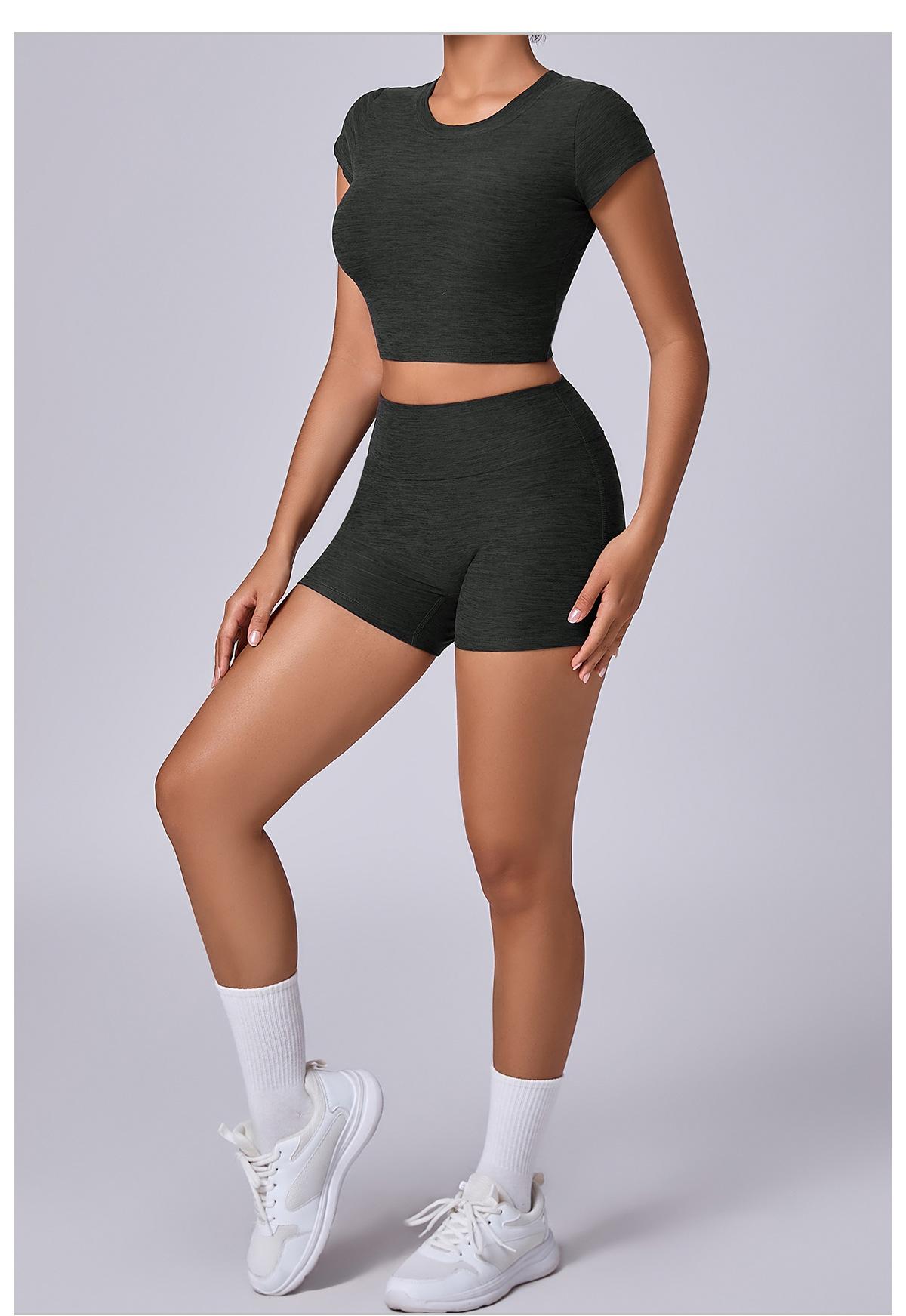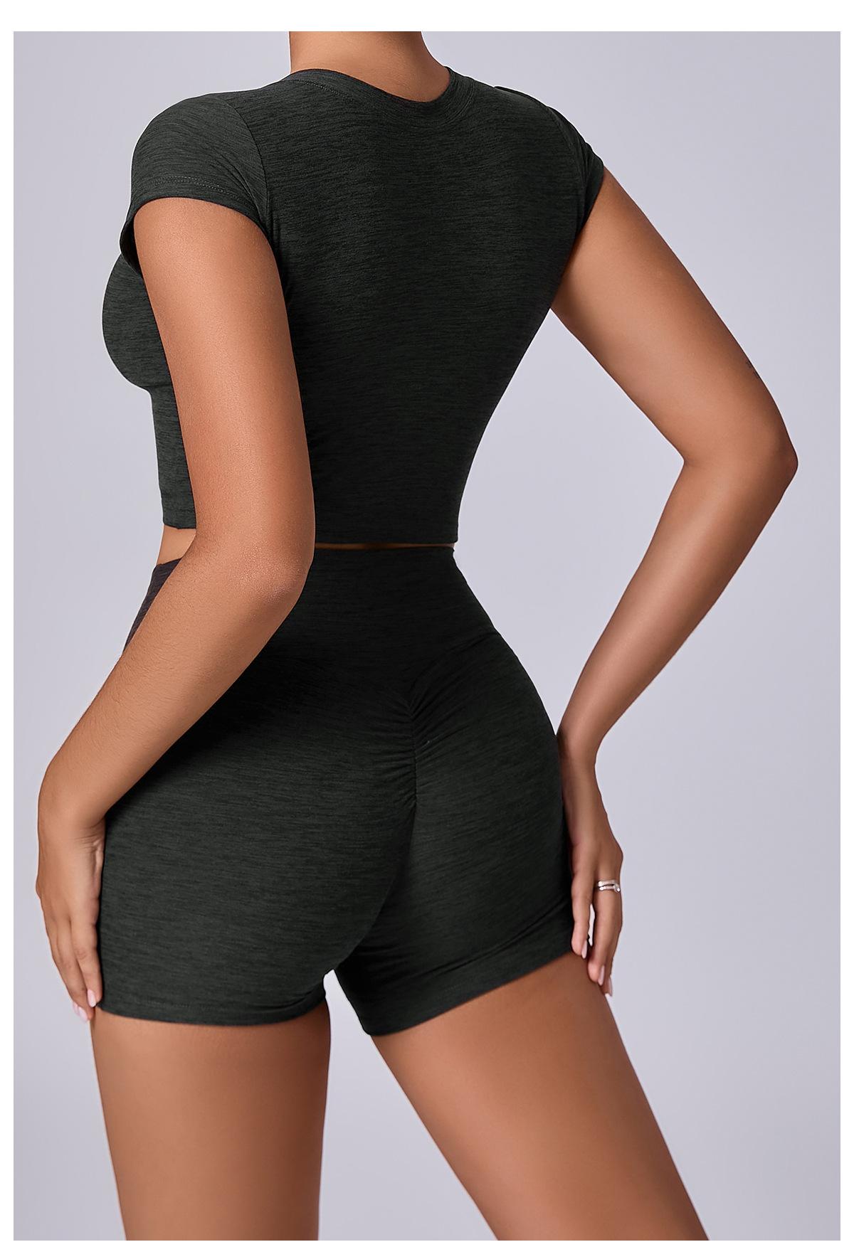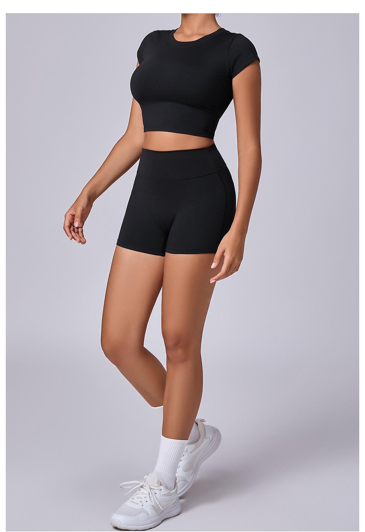 Pantalones cortos Qiusha de manga corta, ajustados, para yoga, cintura alta elástica, ropa deportiva para correr y fitness para mujer.
