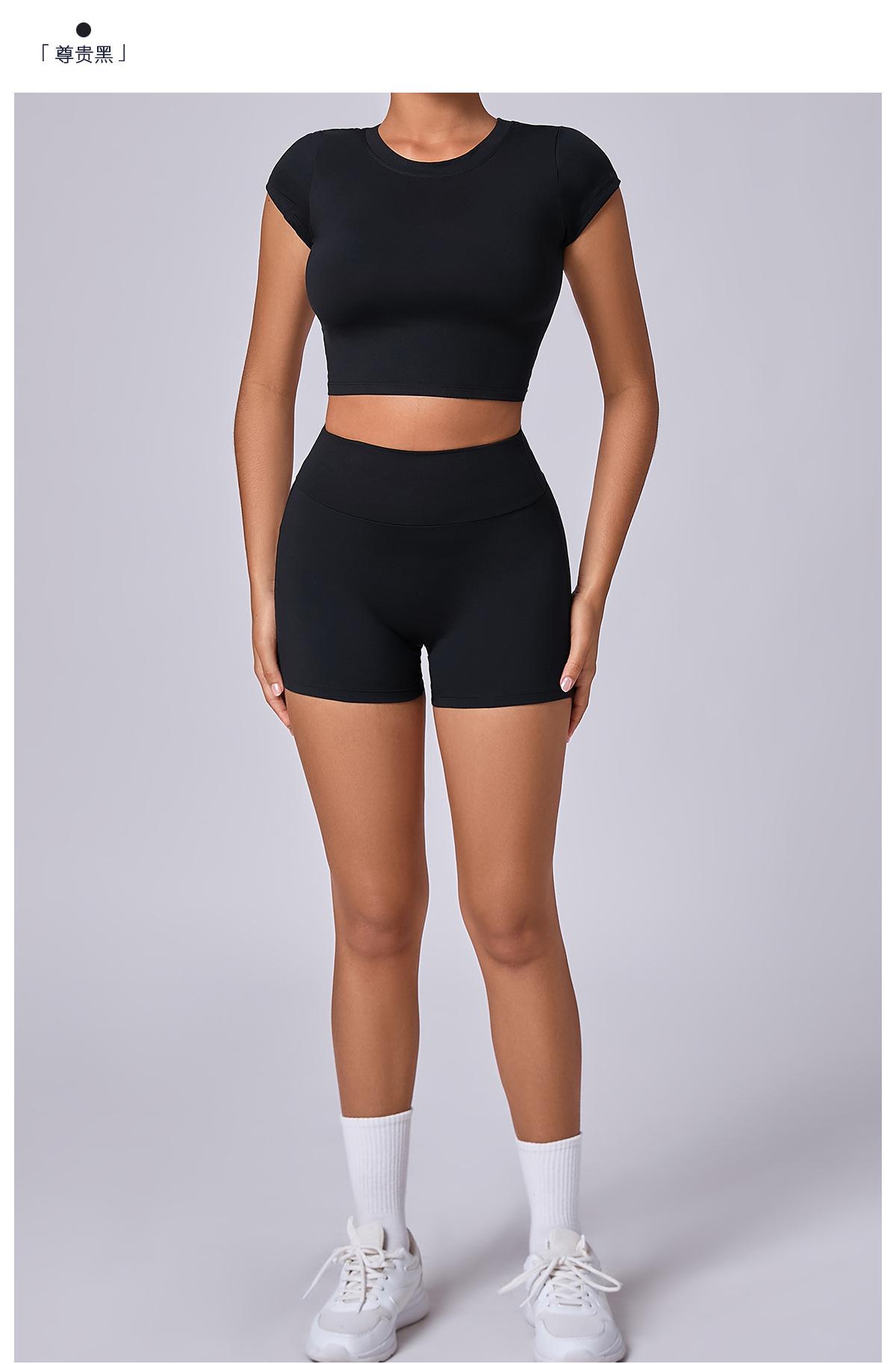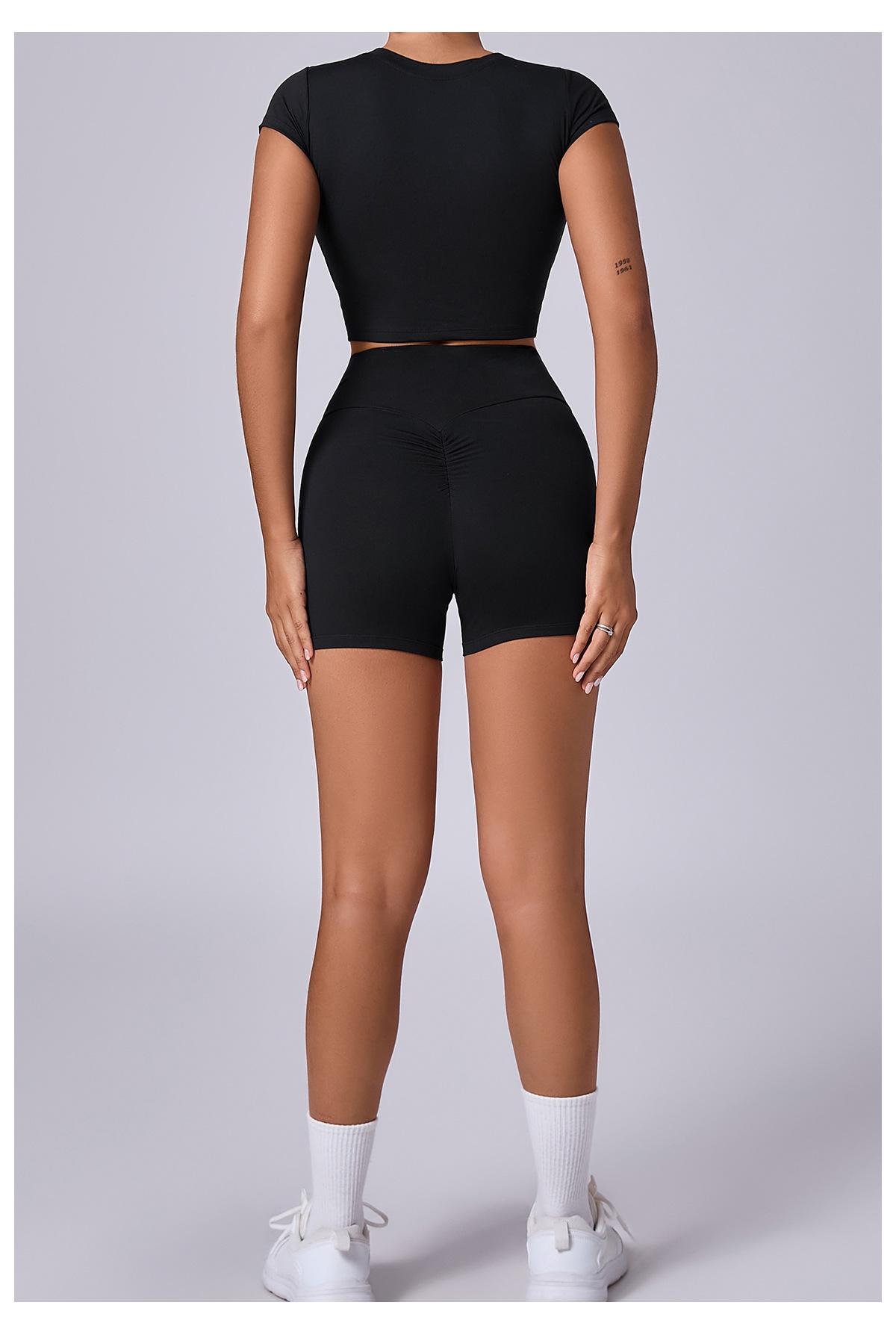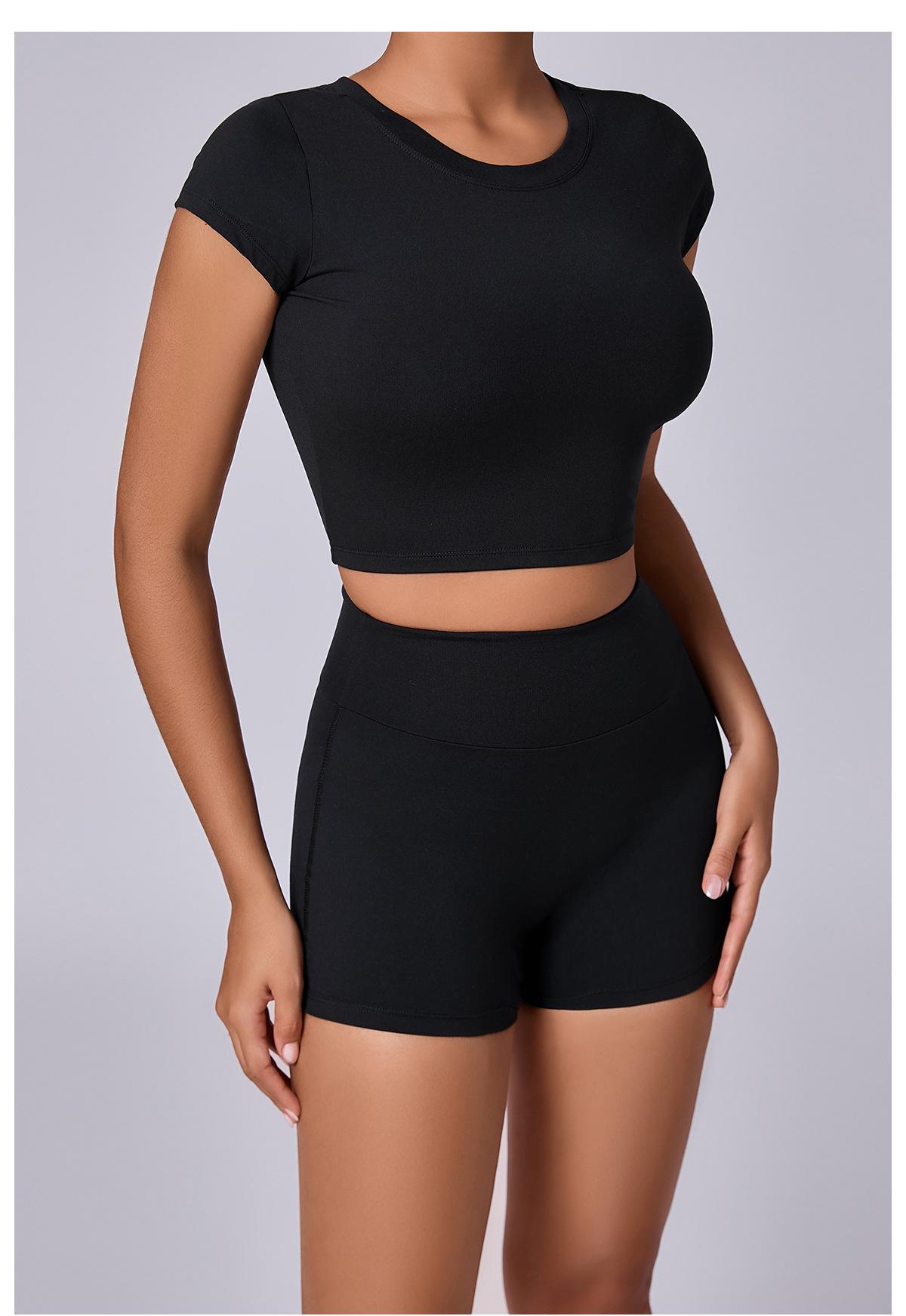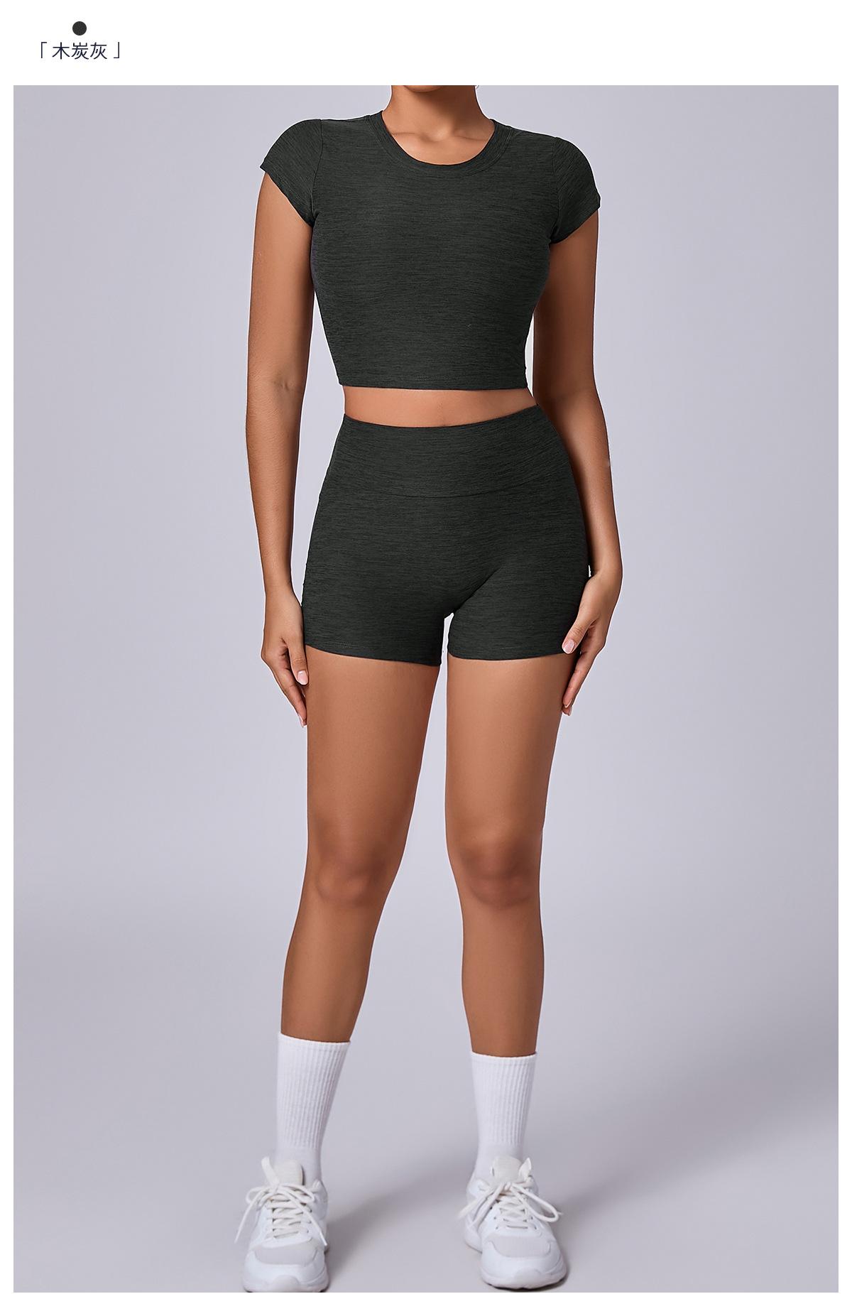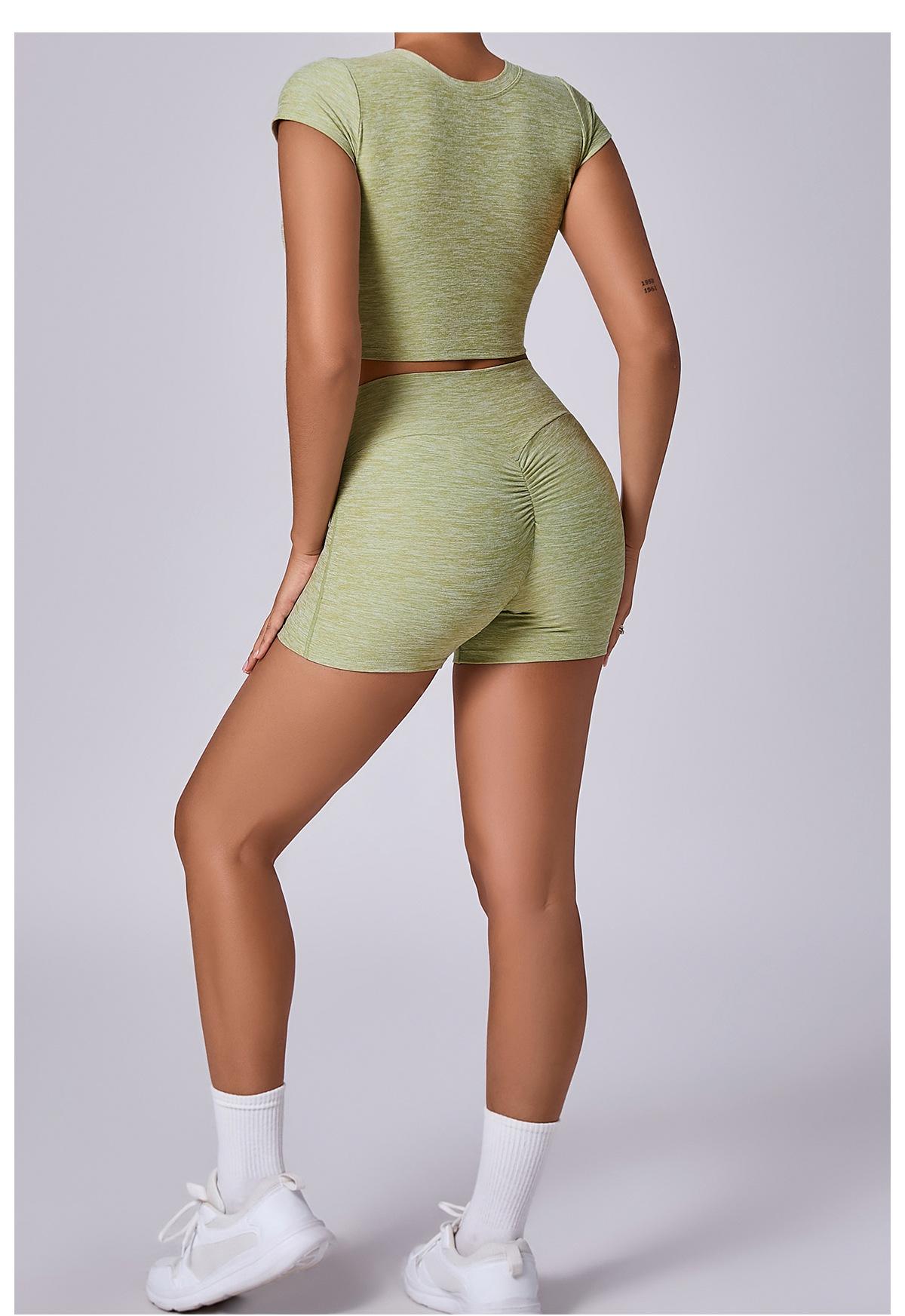 Pantalones cortos Qiusha de manga corta, ajustados, para yoga, cintura alta elástica, ropa deportiva para correr y fitness para mujer.