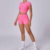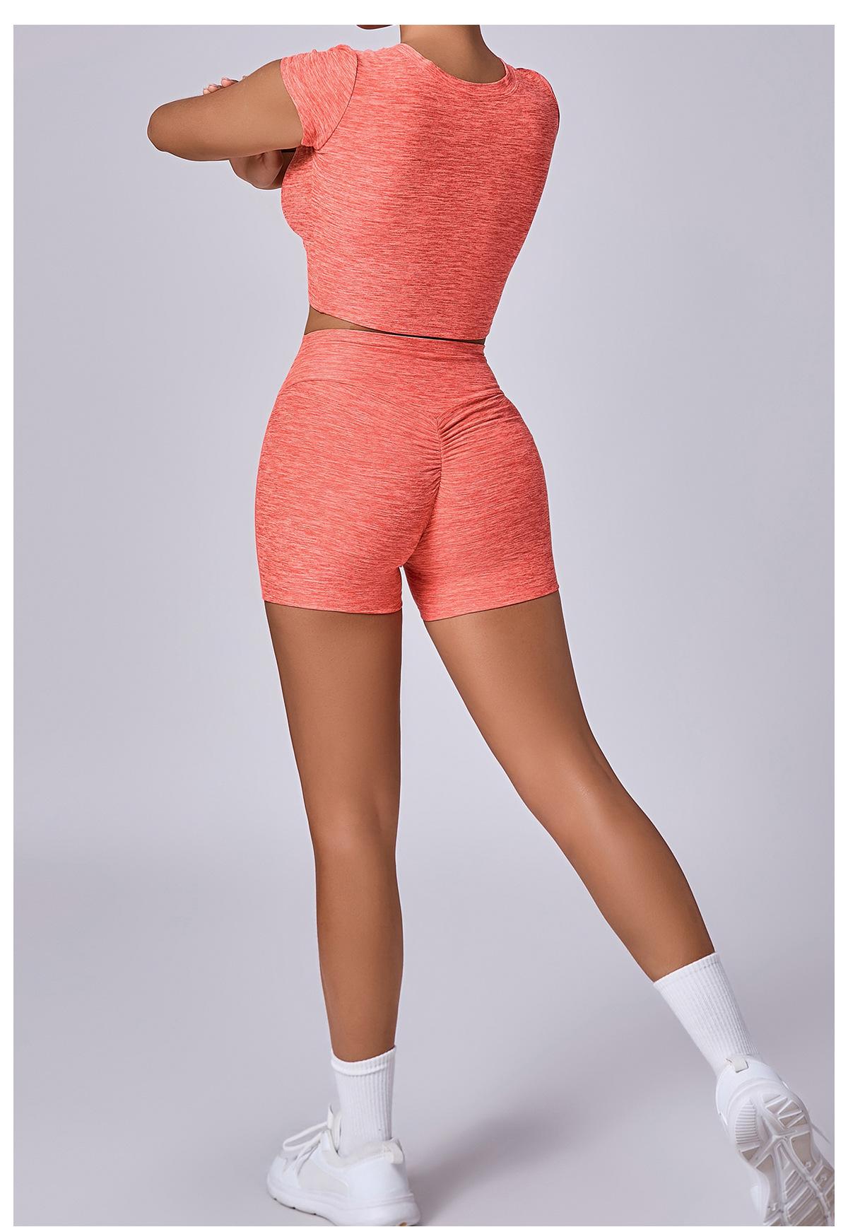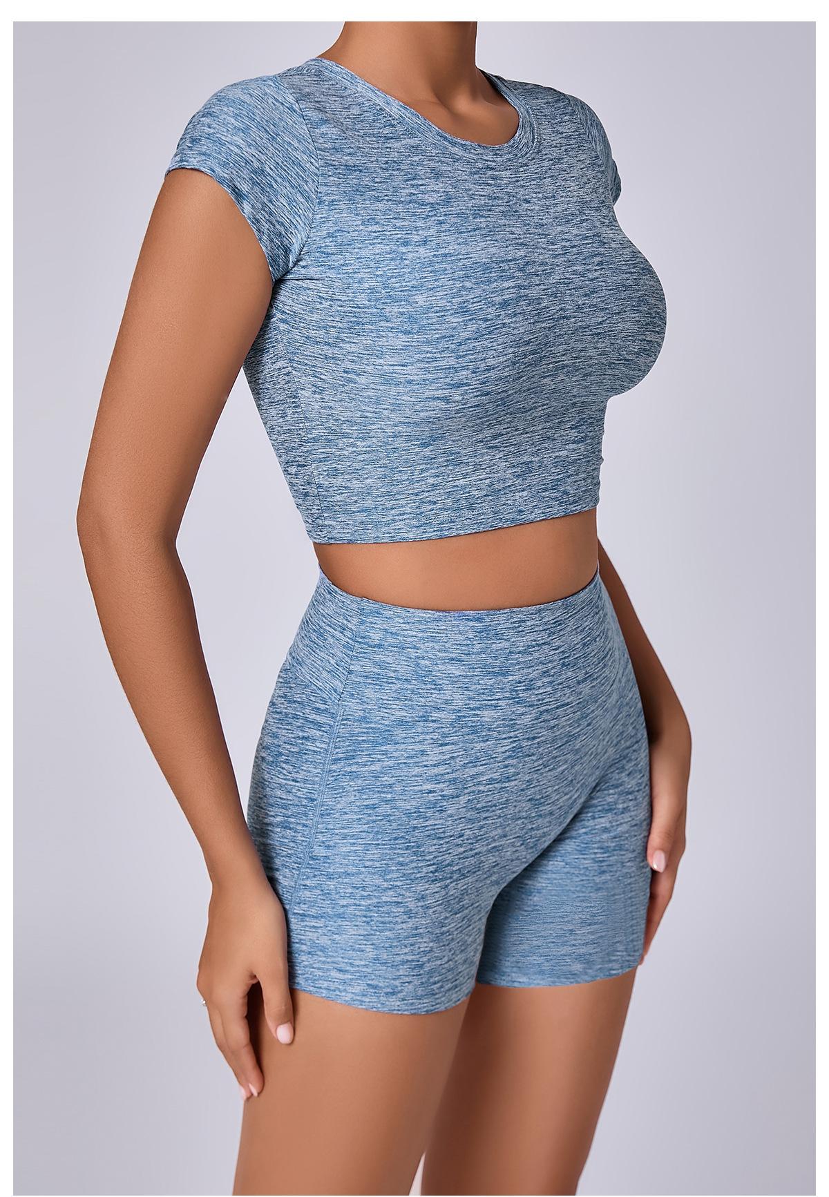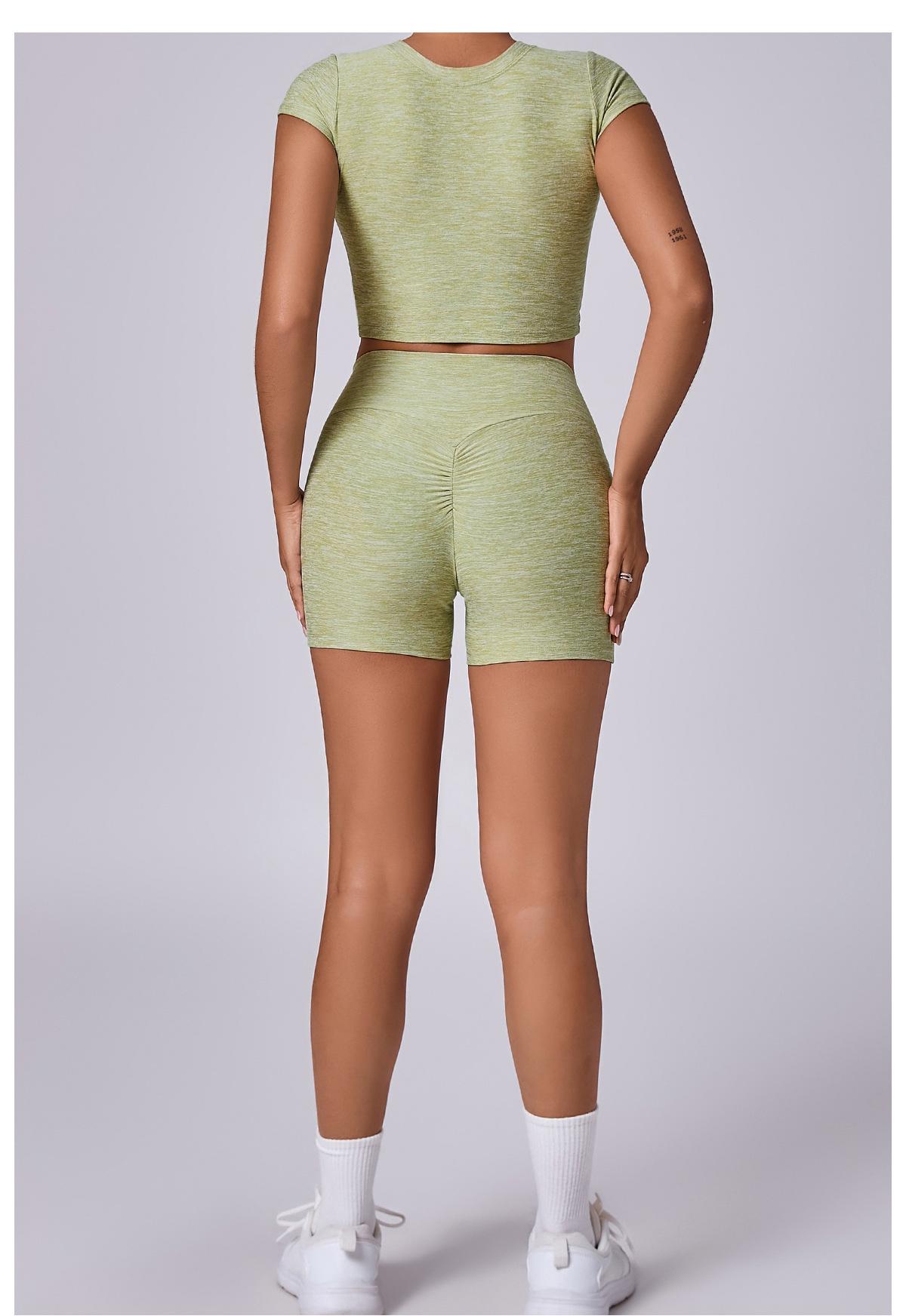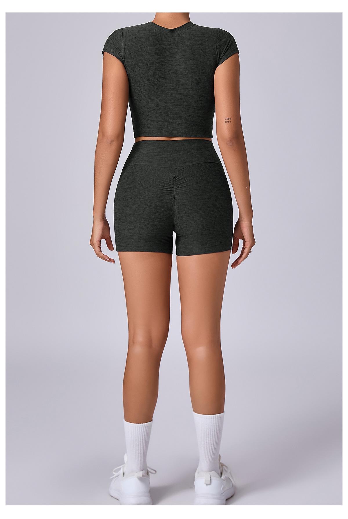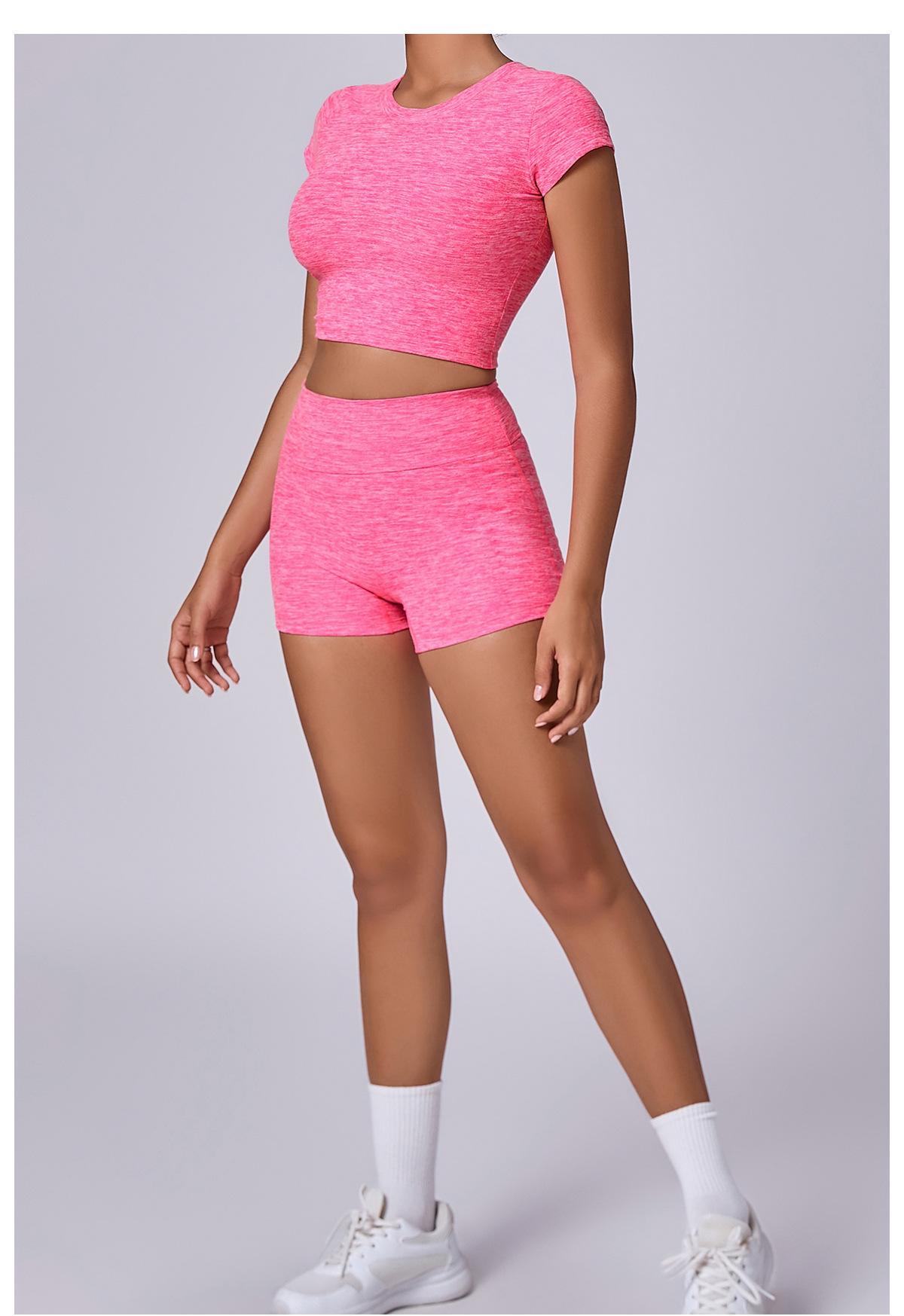 Pantalones cortos Qiusha de manga corta, ajustados, para yoga, cintura alta elástica, ropa deportiva para correr y fitness para mujer.