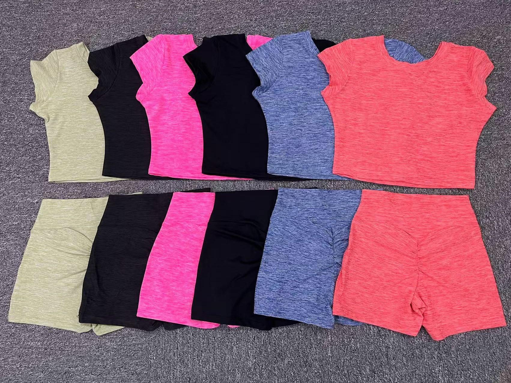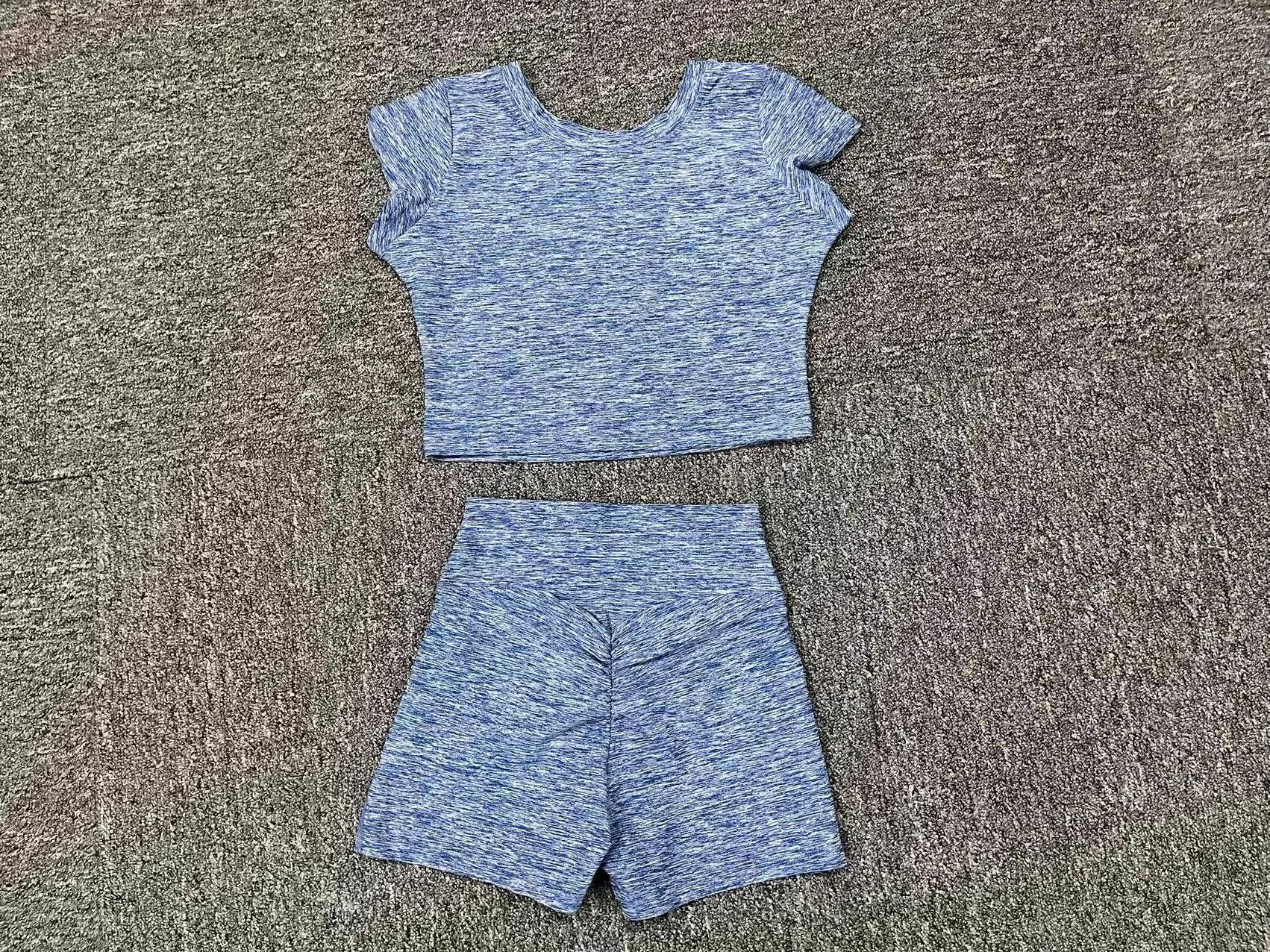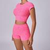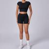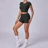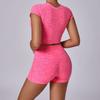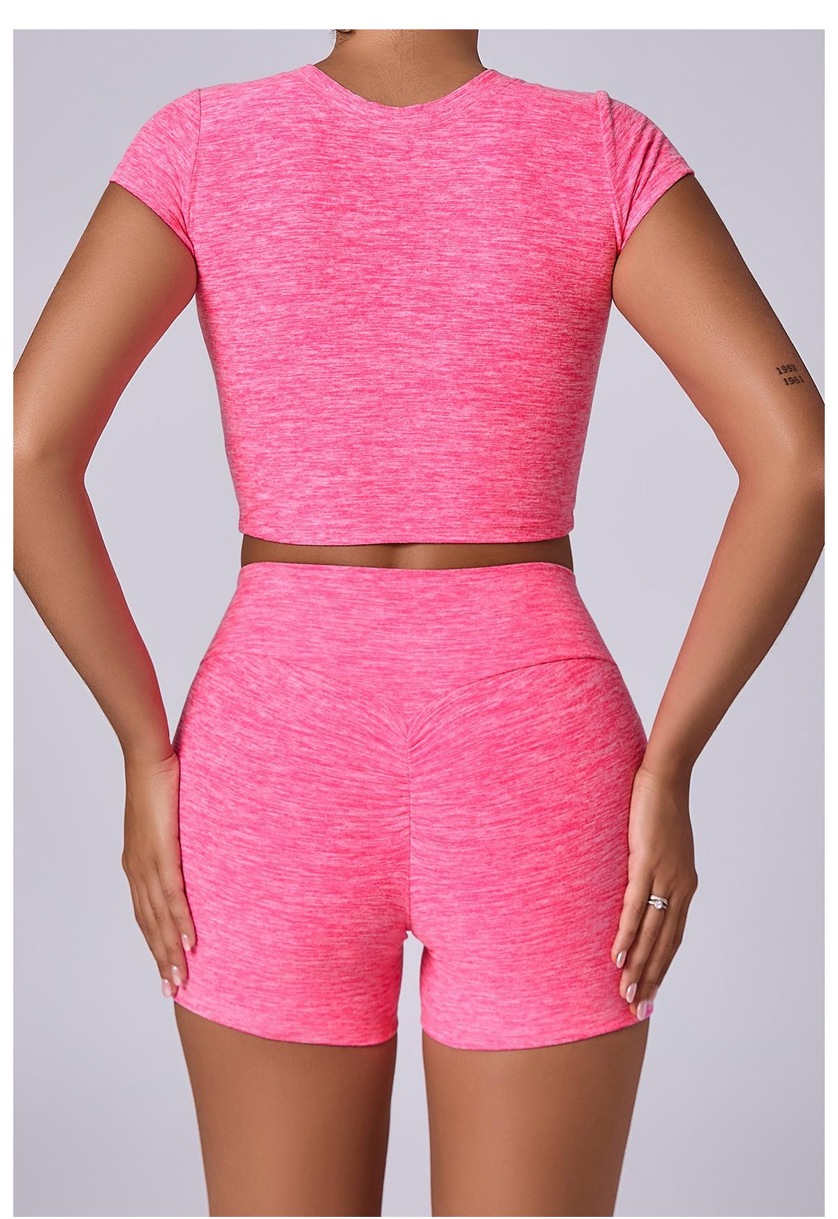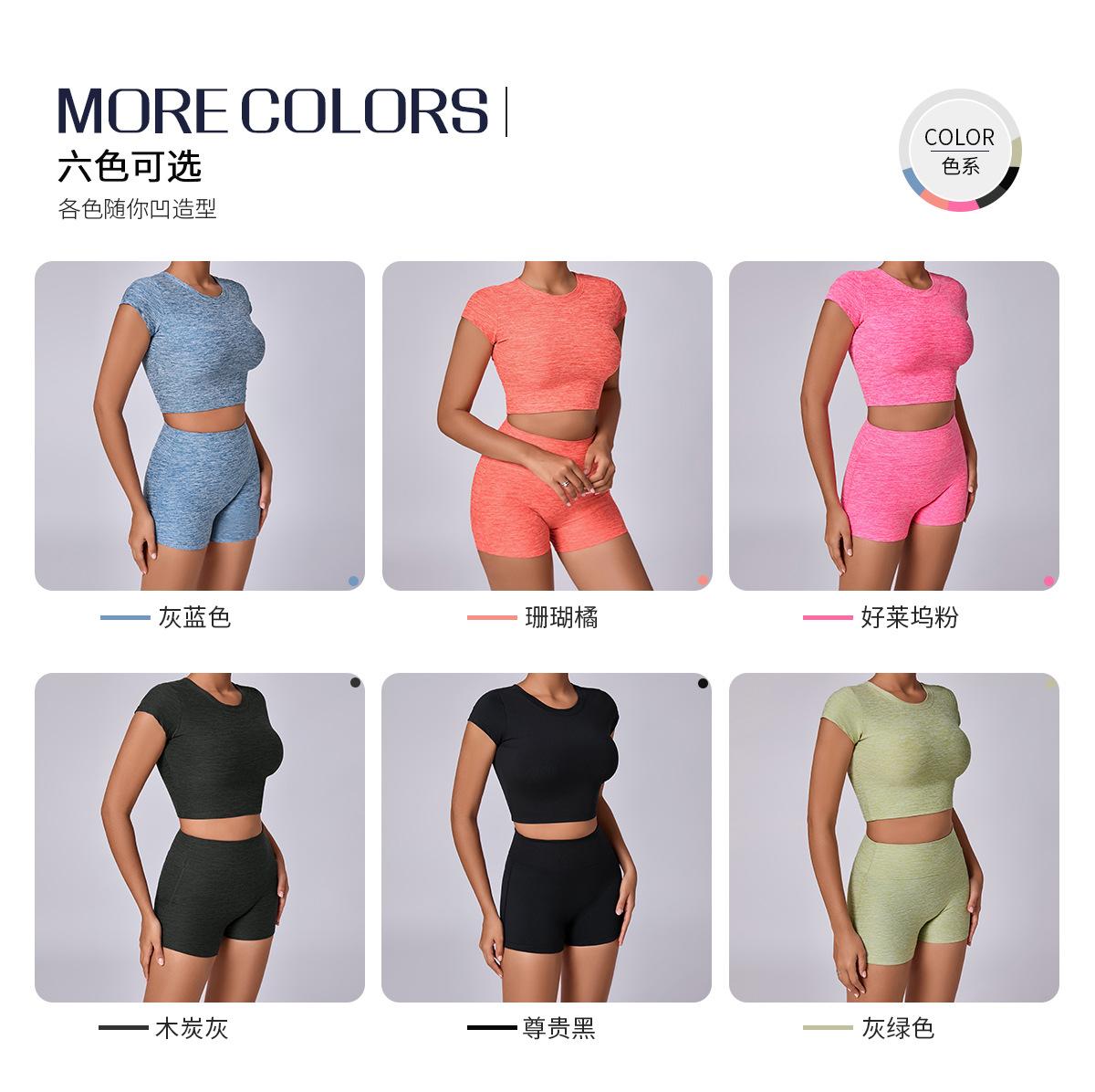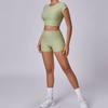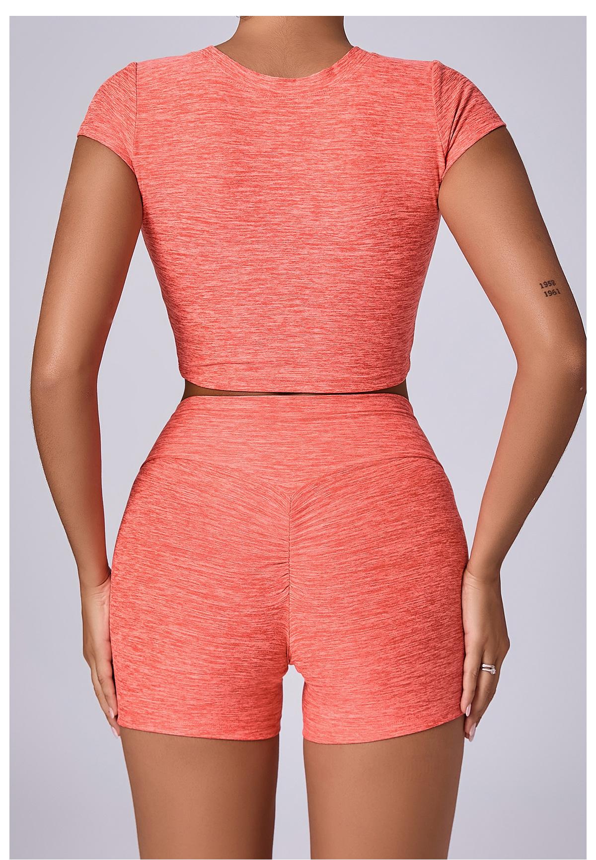 Pantalones cortos Qiusha de manga corta, ajustados, para yoga, cintura alta elástica, ropa deportiva para correr y fitness para mujer.