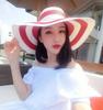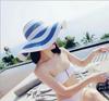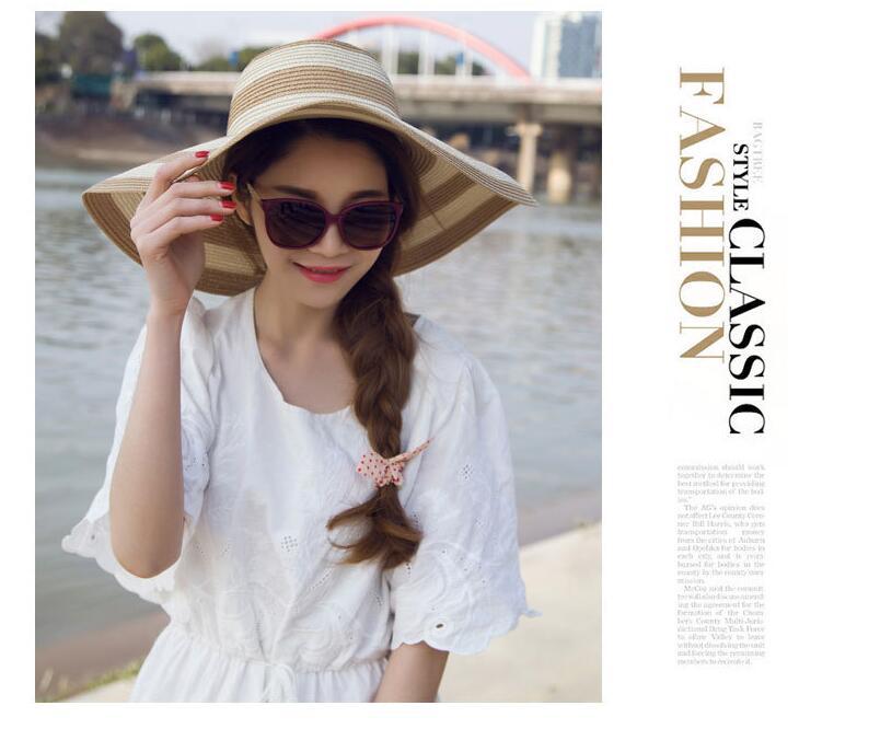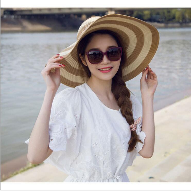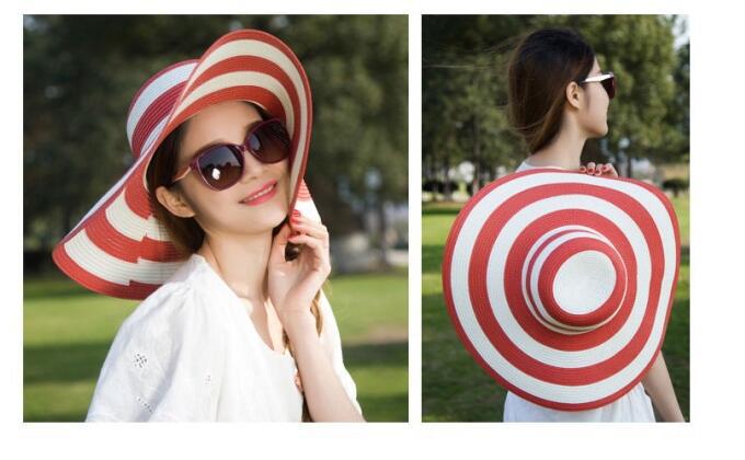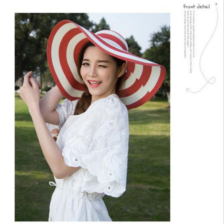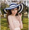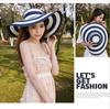 Sombrero de Paja para Mujer para Verano, Viaje, Protección Solar, con Raya Blanca y Negra, para Playa, Ala Grande, Sombrero para Sol de Playa