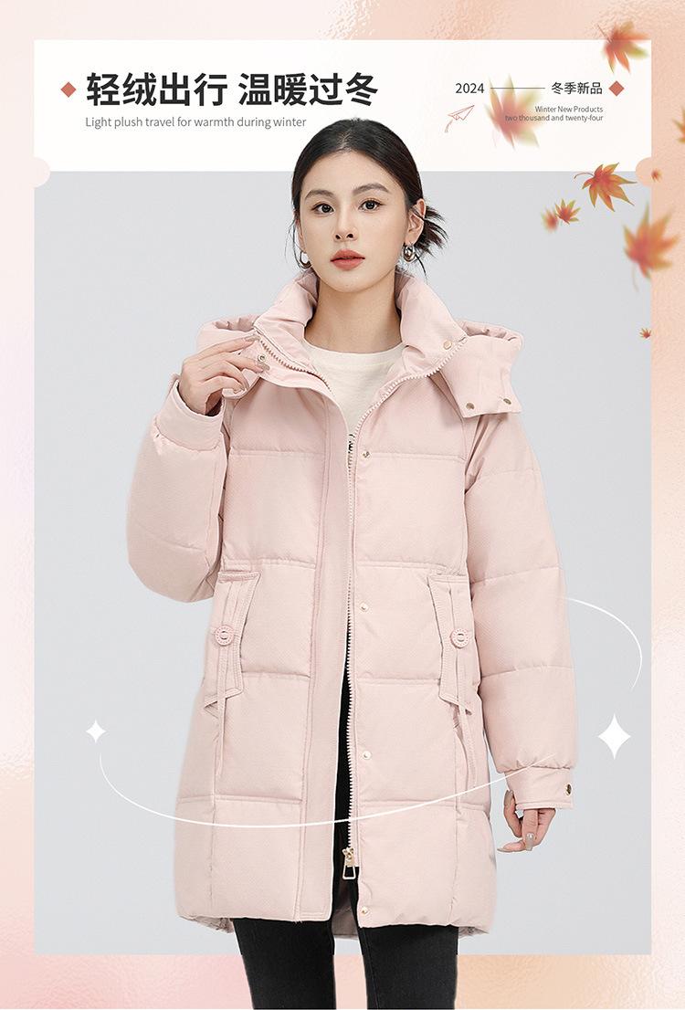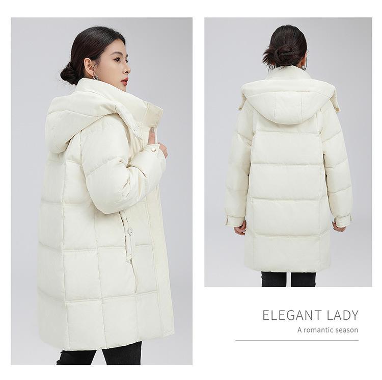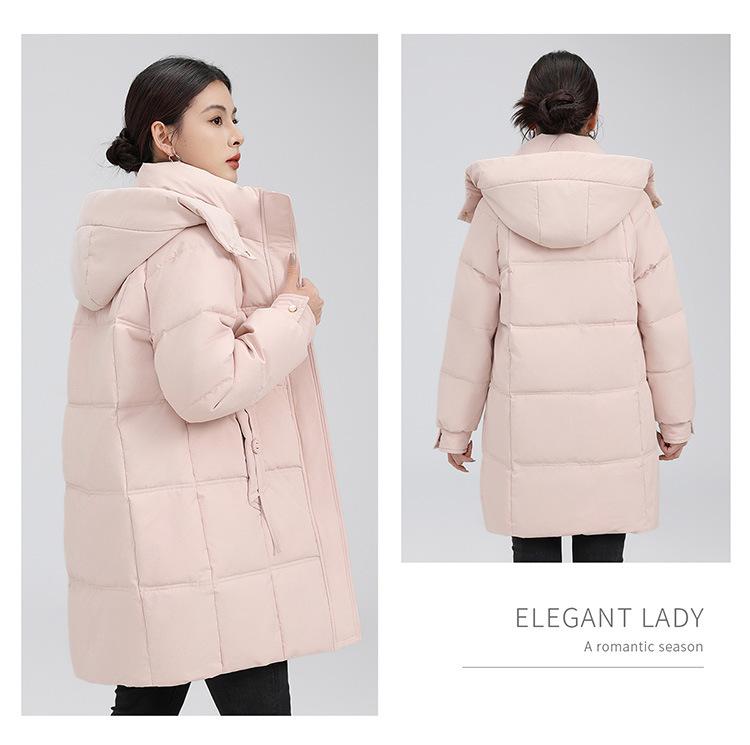 Chaqueta cálida 2024 de plumón con capucha de longitud media, informal, de invierno, para mujer, nueva, combinable y gruesa.